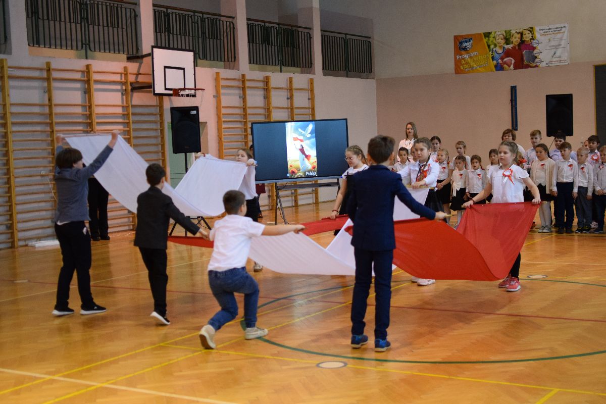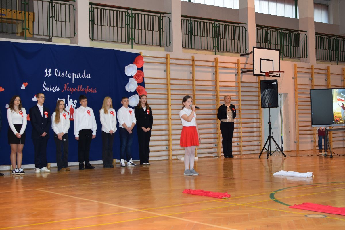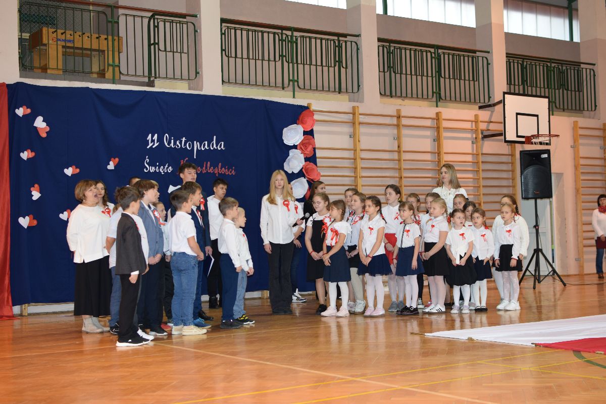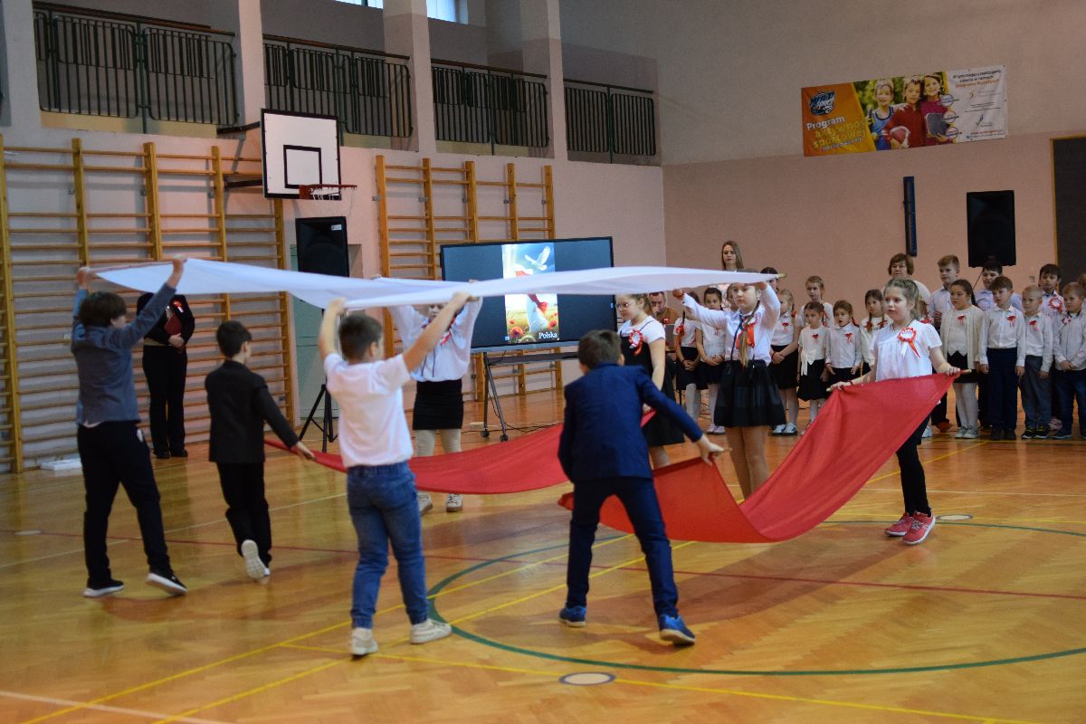 Podczas apelu społeczność szkolna oddała hołd wszystkim, którzy przyczynili się do przywrócenia wolności Ojczyzny. Uroczystość rozpoczęła się wspólnym odśpiewaniem hymnu państwowego. Następnie uczniowie klasy 8a zaprezentowali najważniejsze wydarzenia prowadzące do odzyskania niepodległości. Młodsze klasy przygotowały patriotyczne pieśni oraz zaprezentowały wzruszający taniec z biało-czerwoną flagą.
