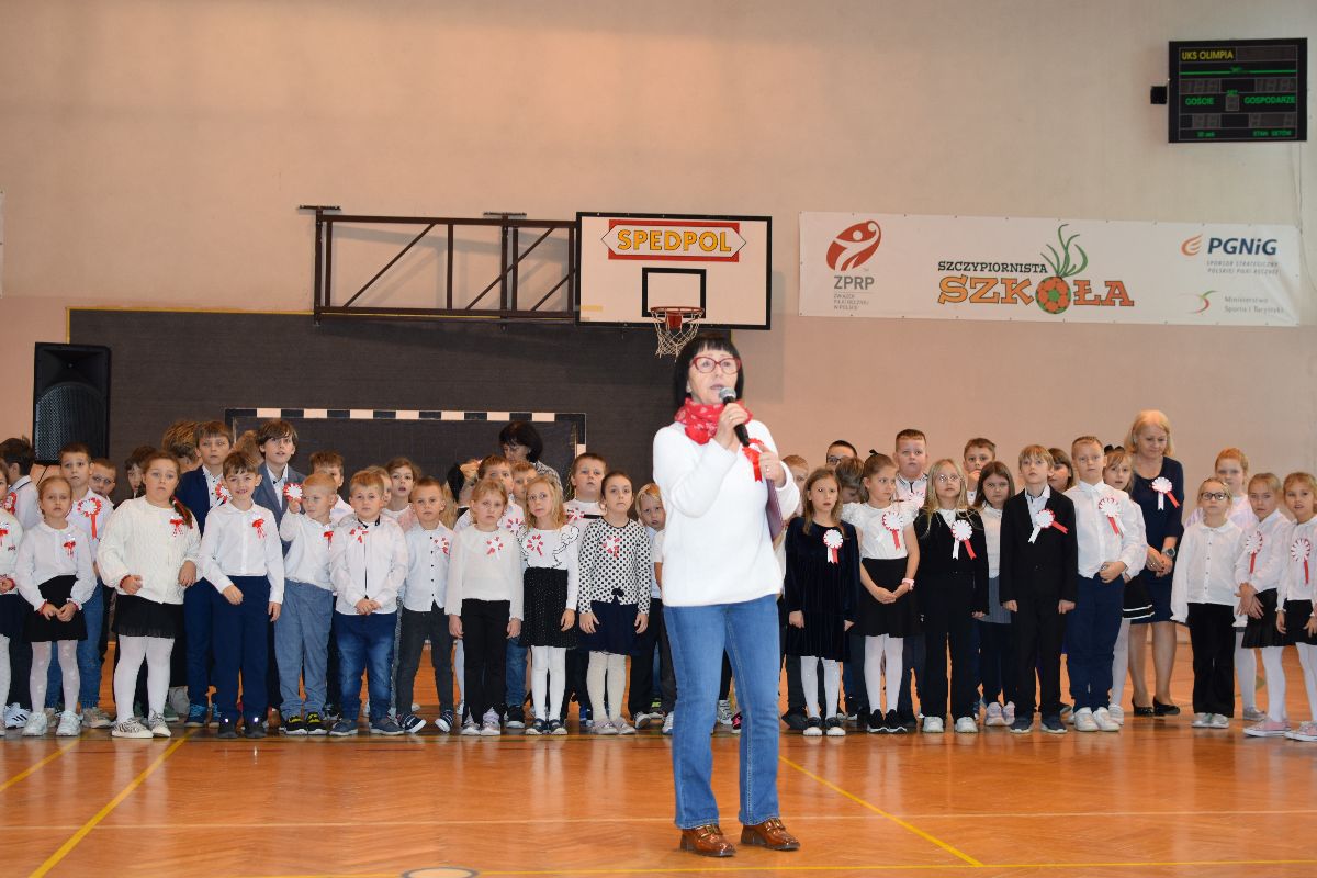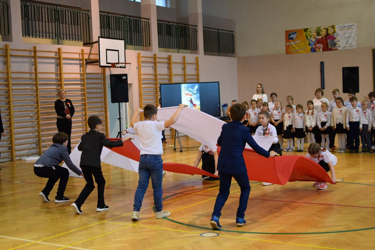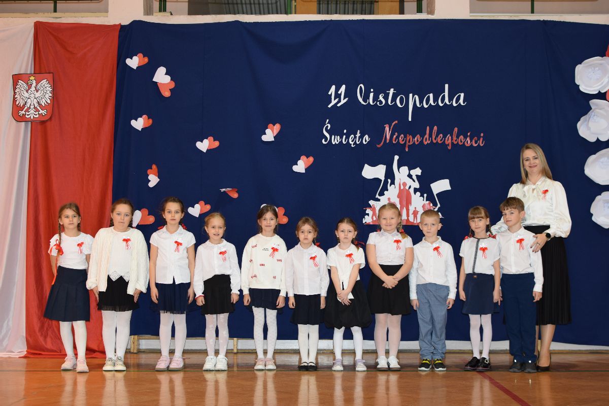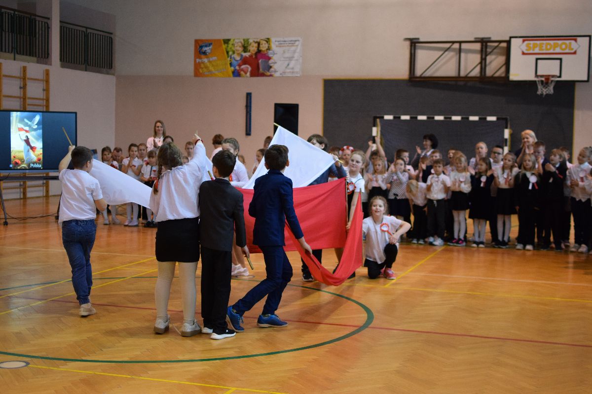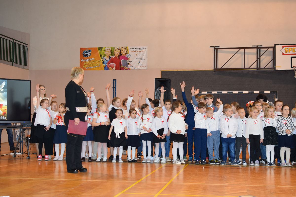 Podczas apelu społeczność szkolna oddała hołd wszystkim, którzy przyczynili się do przywrócenia wolności Ojczyzny. Uroczystość rozpoczęła się wspólnym odśpiewaniem hymnu państwowego. Następnie uczniowie klasy 8a zaprezentowali najważniejsze wydarzenia prowadzące do odzyskania niepodległości. Młodsze klasy przygotowały patriotyczne pieśni oraz zaprezentowały wzruszający taniec z biało-czerwoną flagą.