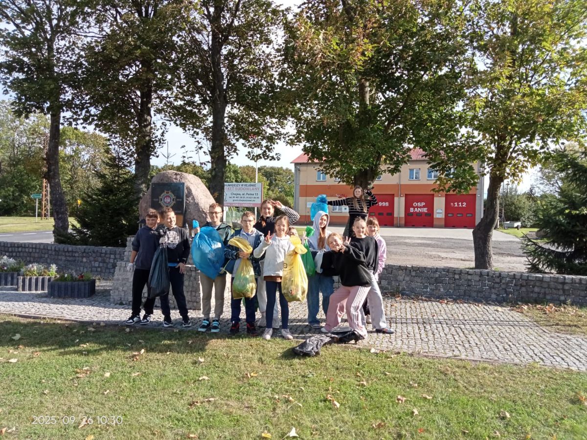 26 września uczniowie wzięli udział w akcji sprzątania świata. Wraz z opiekunami wybrali się w różne rejony miejscowości Banie aby zebrać wszystkie śmieci. Posegregowane worki zostawili w miejscach zbiórki, które odbiorą odpowiednie służby. Młodsi uczniowie dowiedzieli się jak segregować śmieci podczas zajęć plastycznych.