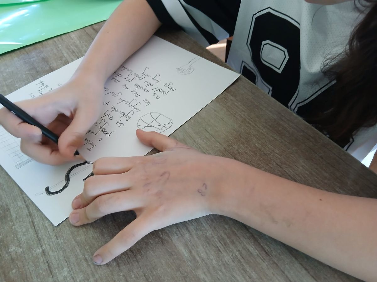 Podczas pracy uczniowie przekonali się też, ile cierpliwości wymagała „benedyktyńska praca” średniowiecznych skrybów, którzy ręcznie przepisywali i ozdabiali księgi. Gotowe inicjały zaprezentowano w klasie – a niektóre wyglądały tak dobrze, że spokojnie mogłyby trafić do średniowiecznego bestsellera.