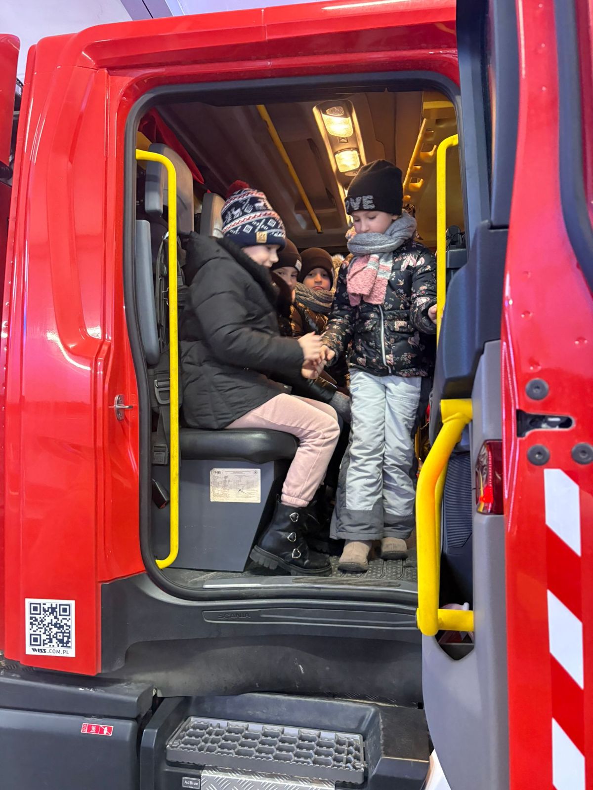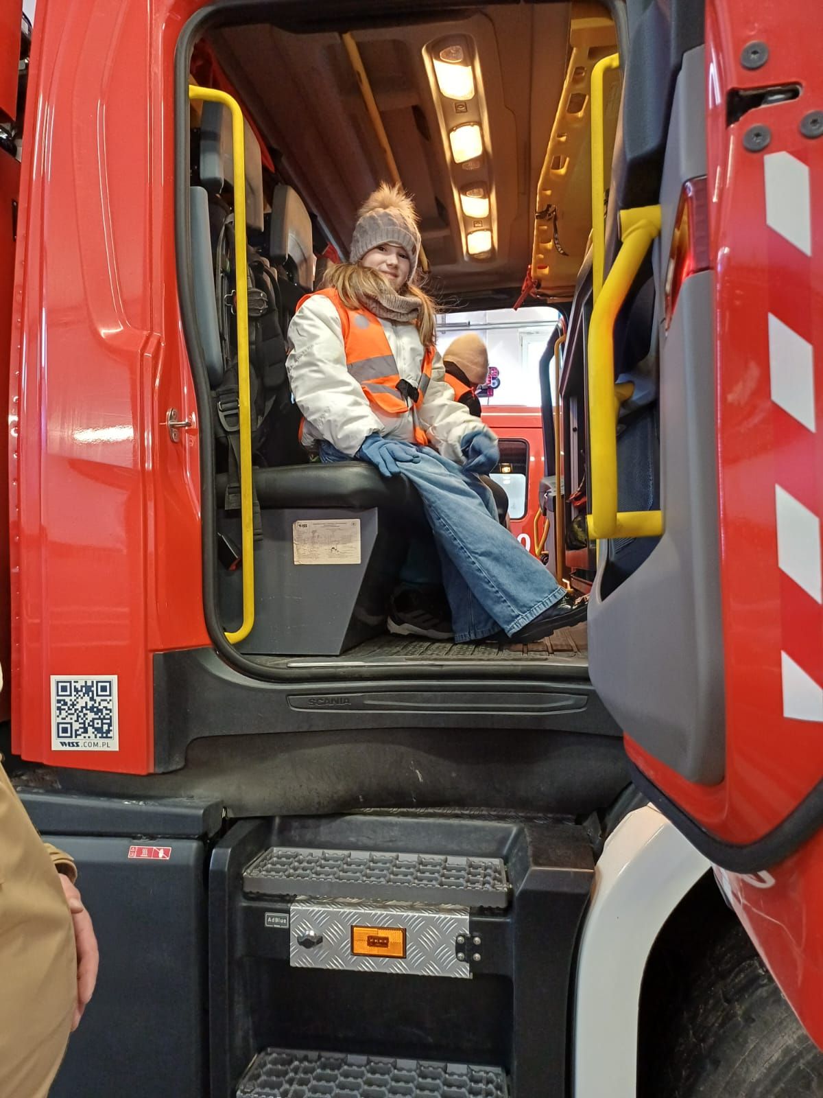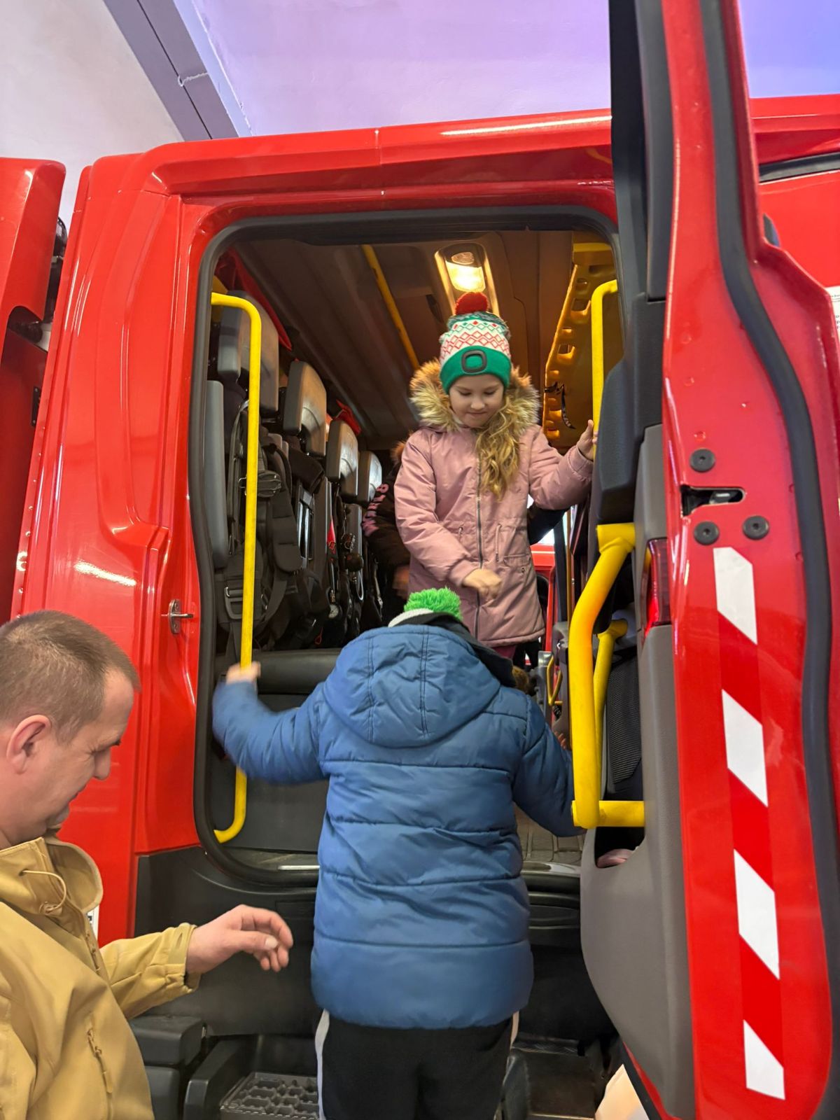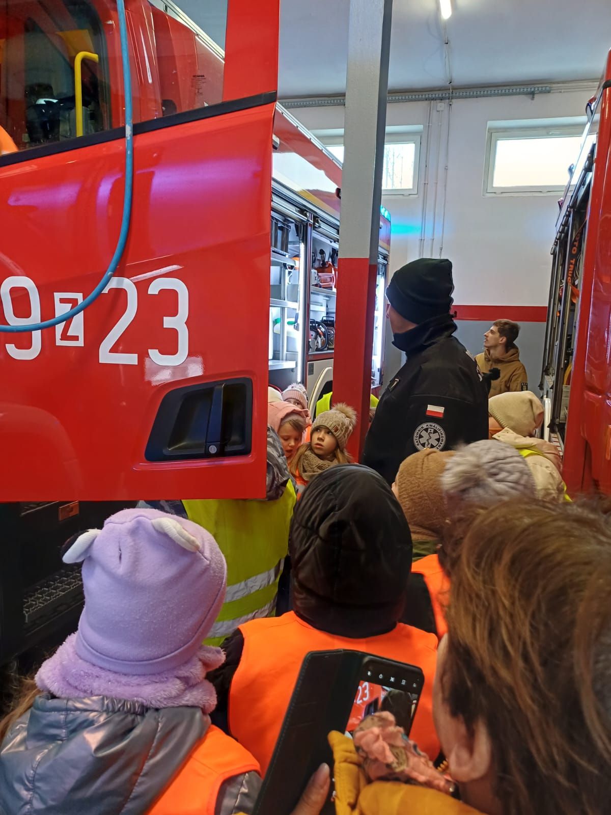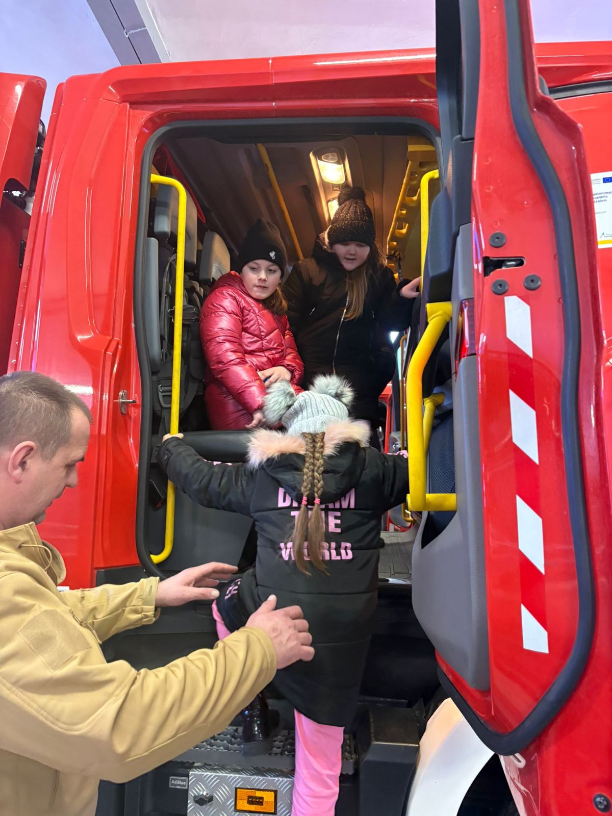 Uczniowie klas 1–3 odwiedzili straż pożarną, aby dowiedzieć się, jak bezpiecznie spędzić ferie zimowe.
