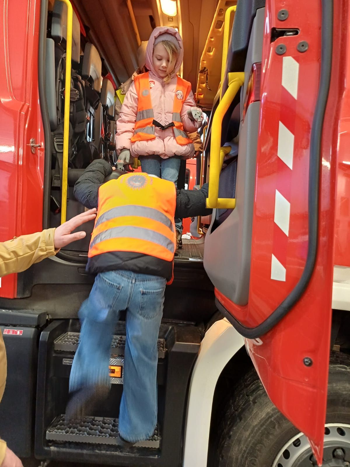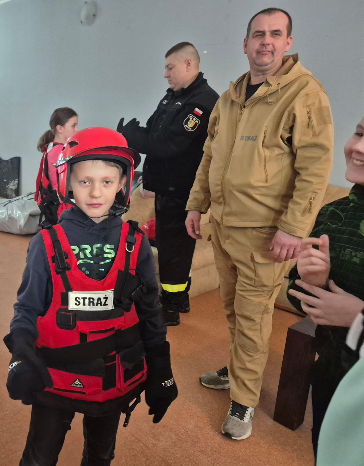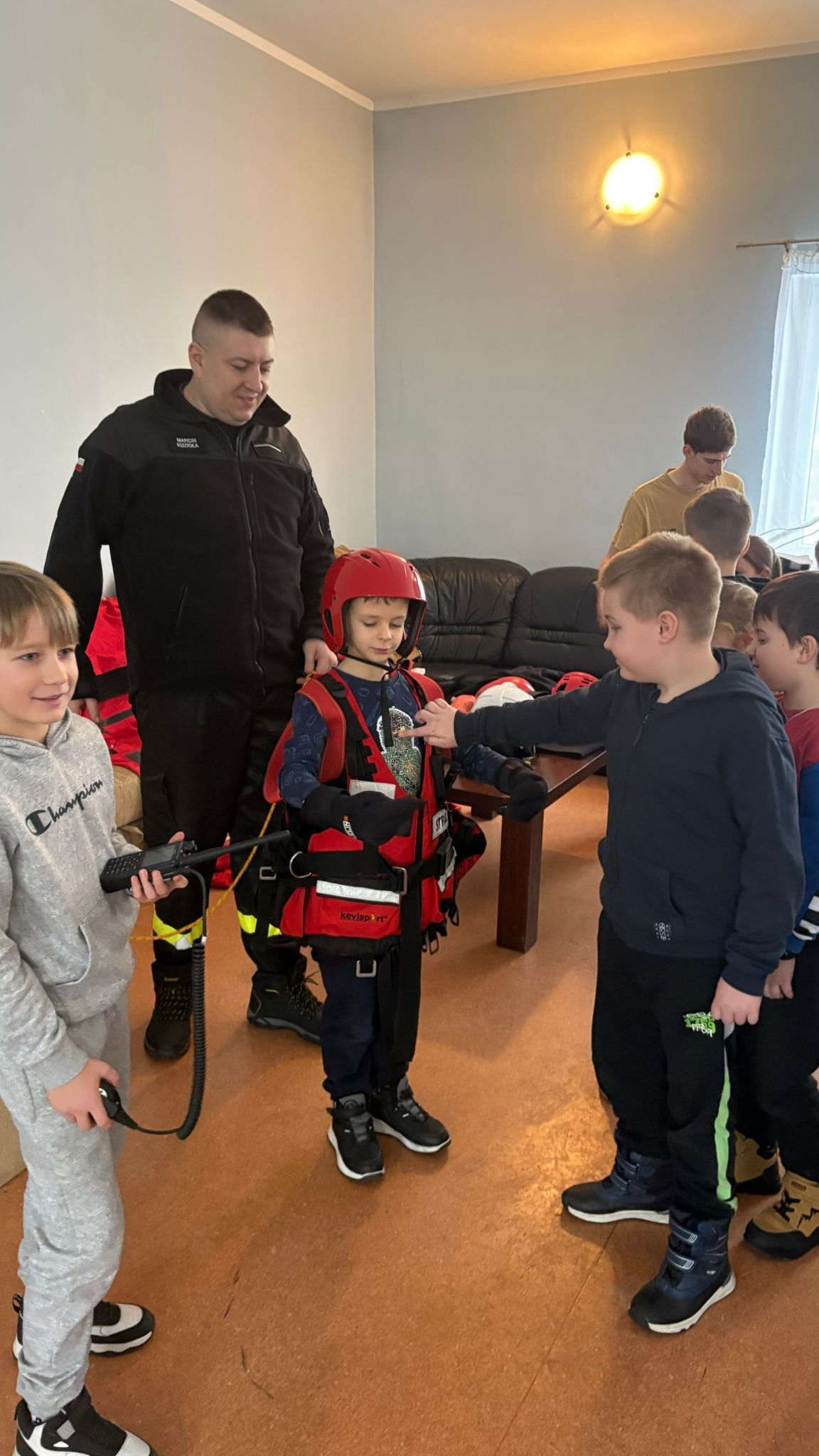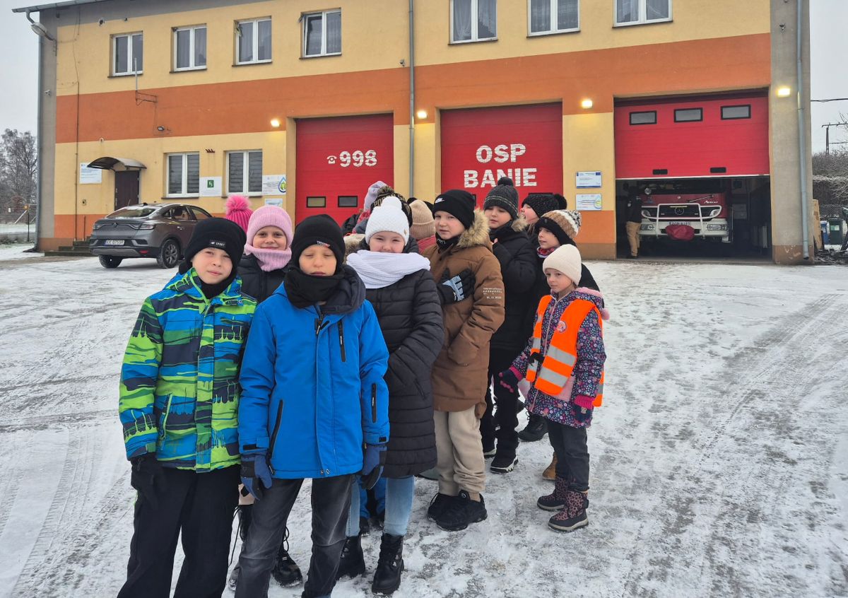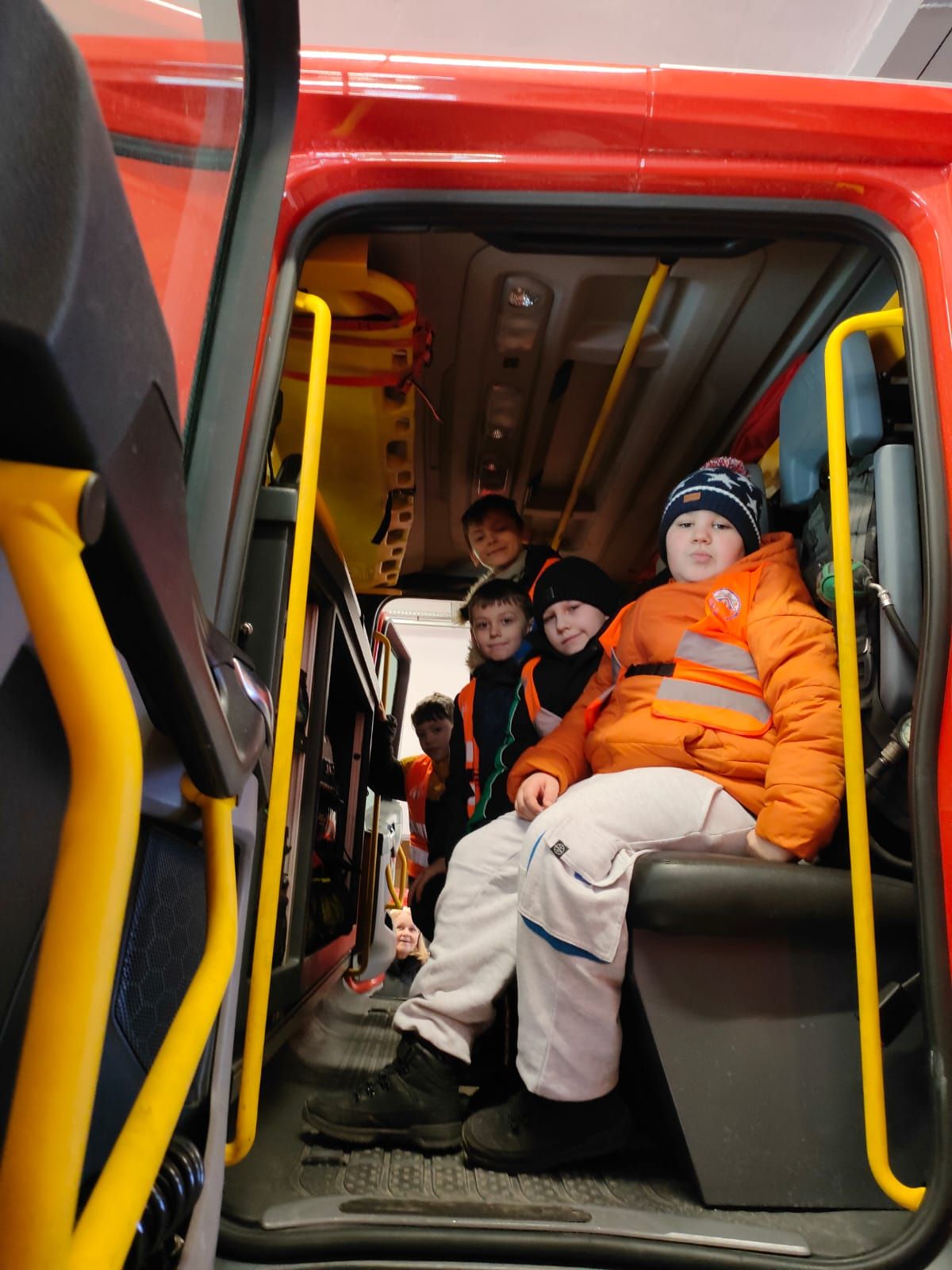 Uczniowie klas 1–3 odwiedzili straż pożarną, aby dowiedzieć się, jak bezpiecznie spędzić ferie zimowe.