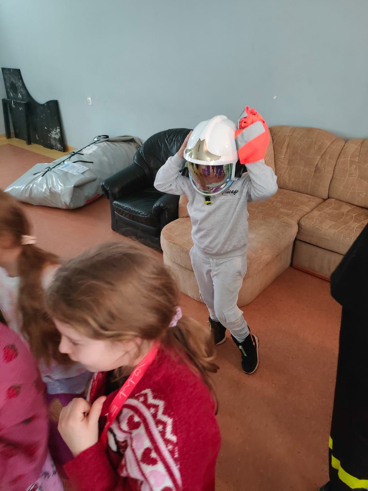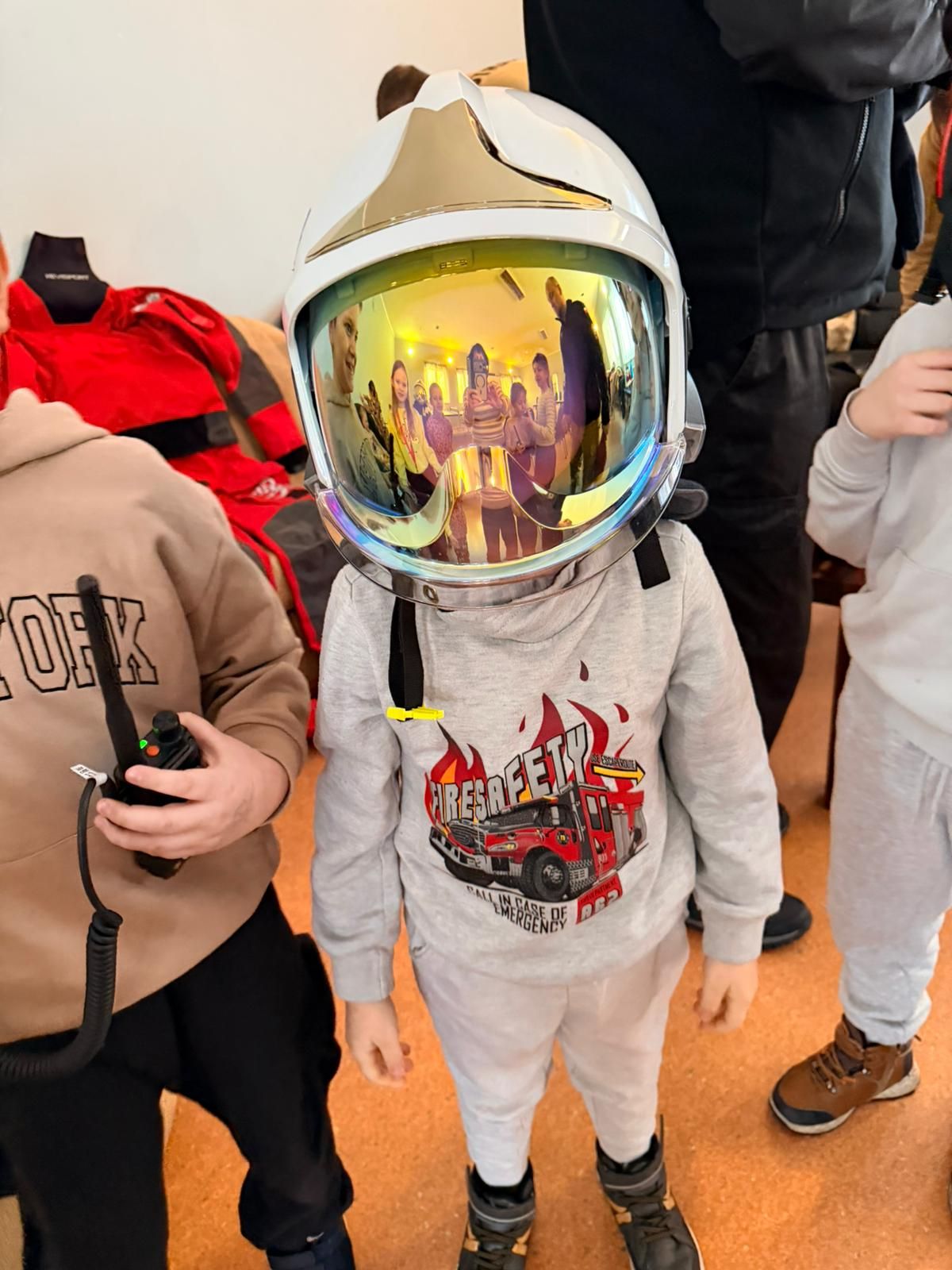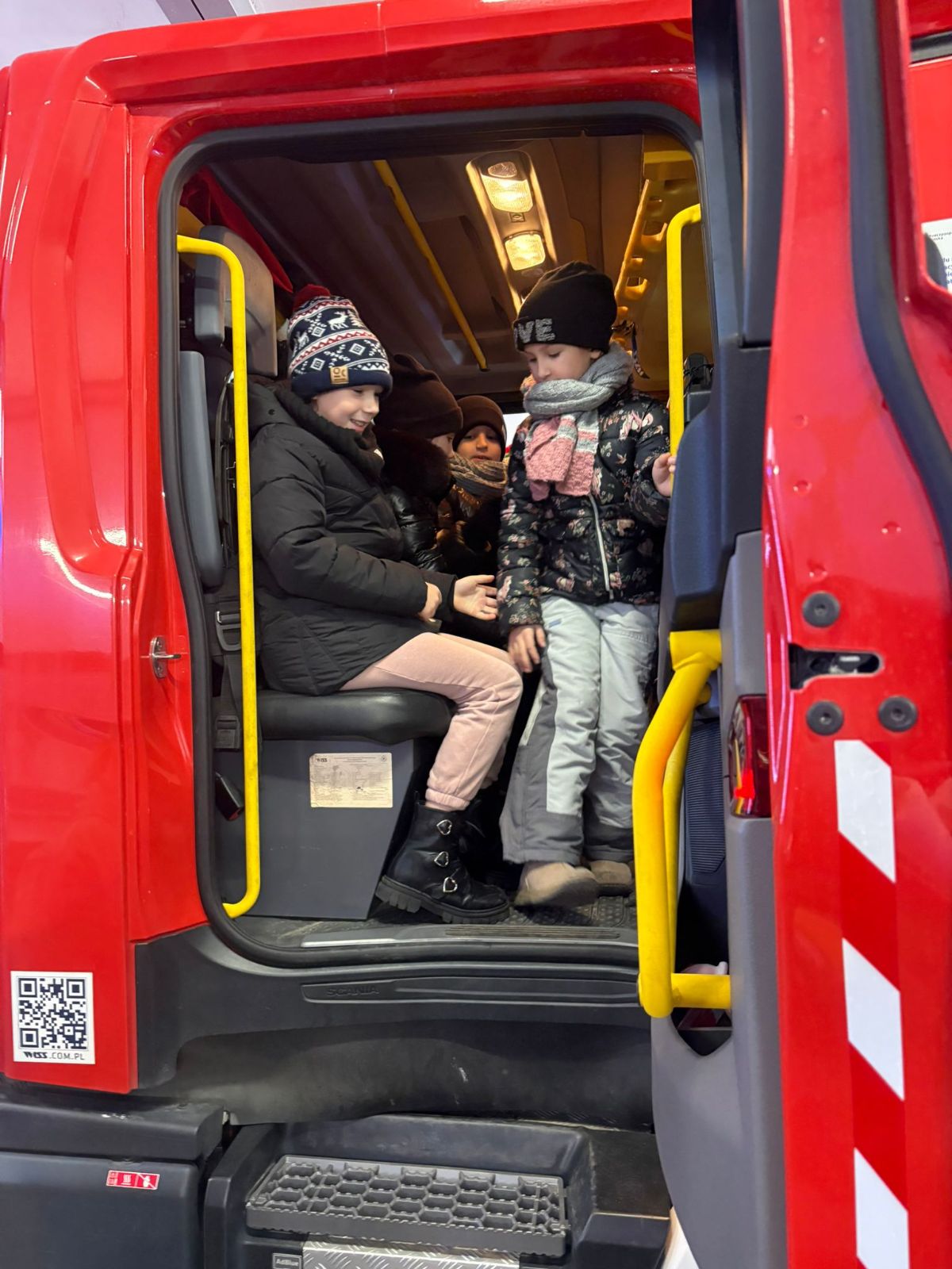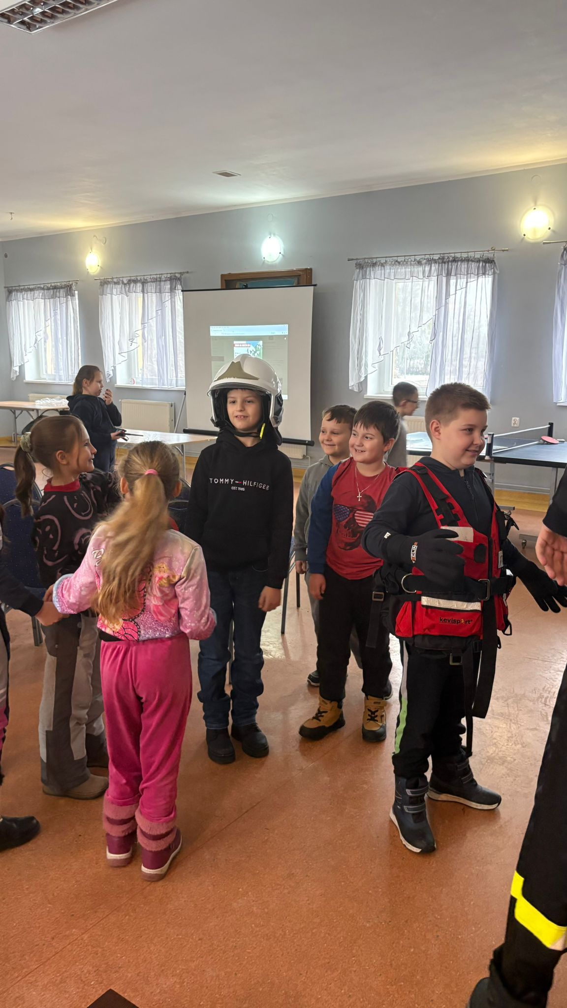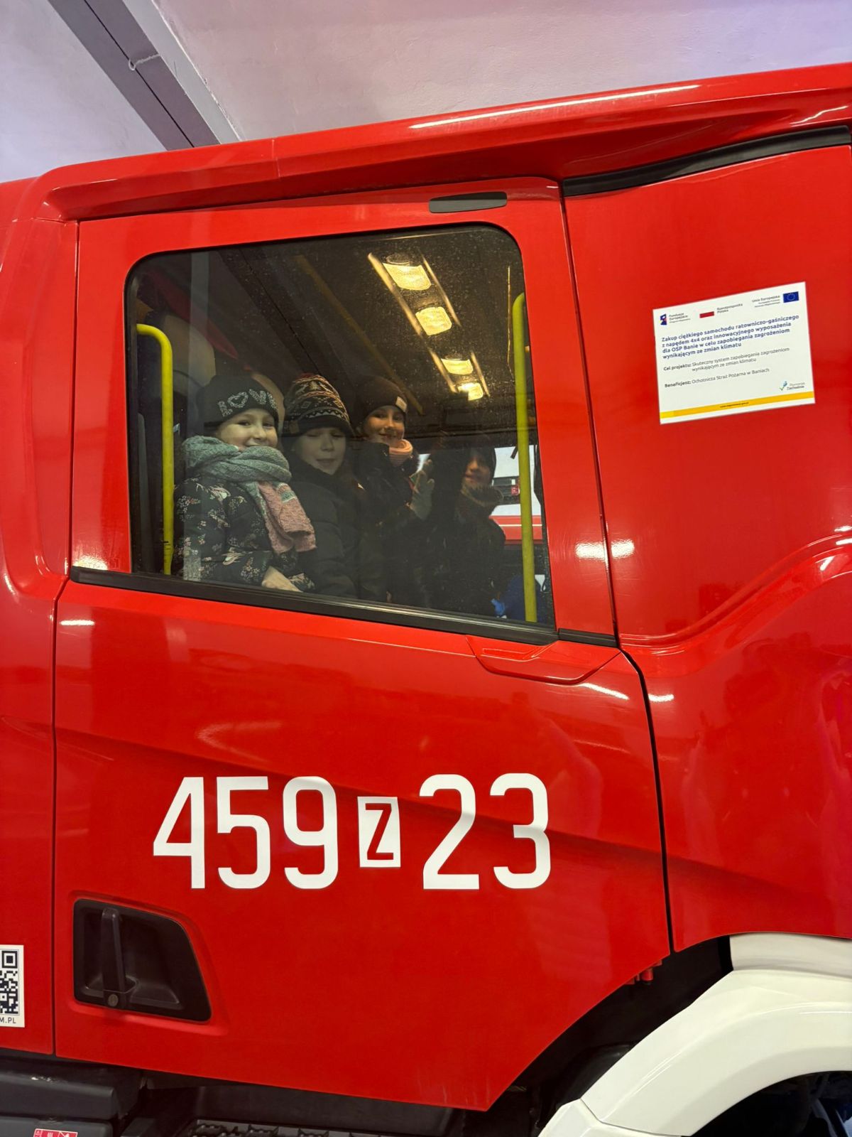 Uczniowie klas 1–3 odwiedzili straż pożarną, aby dowiedzieć się, jak bezpiecznie spędzić ferie zimowe.