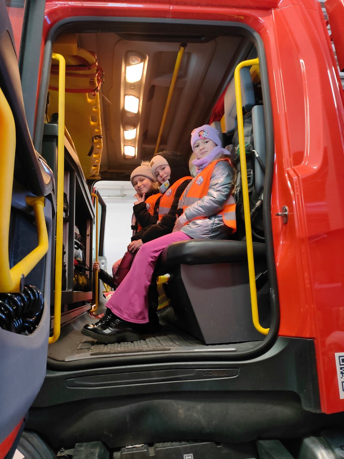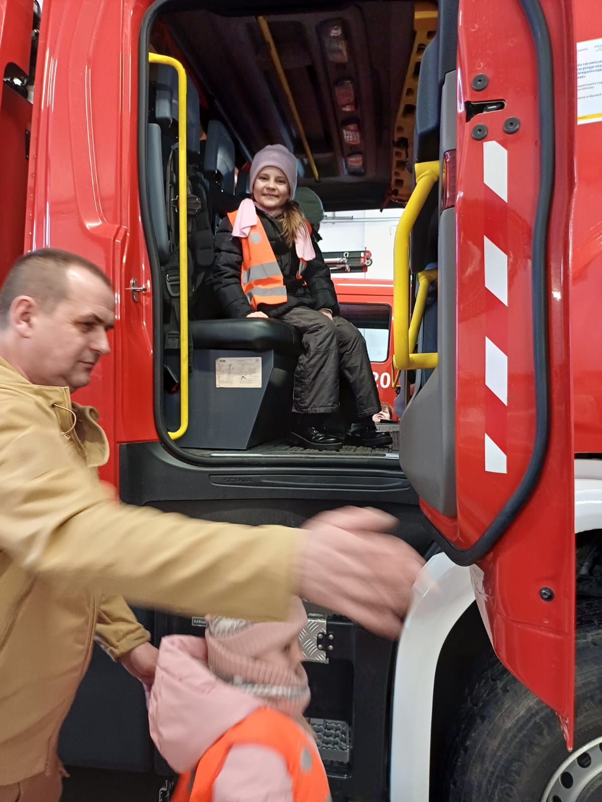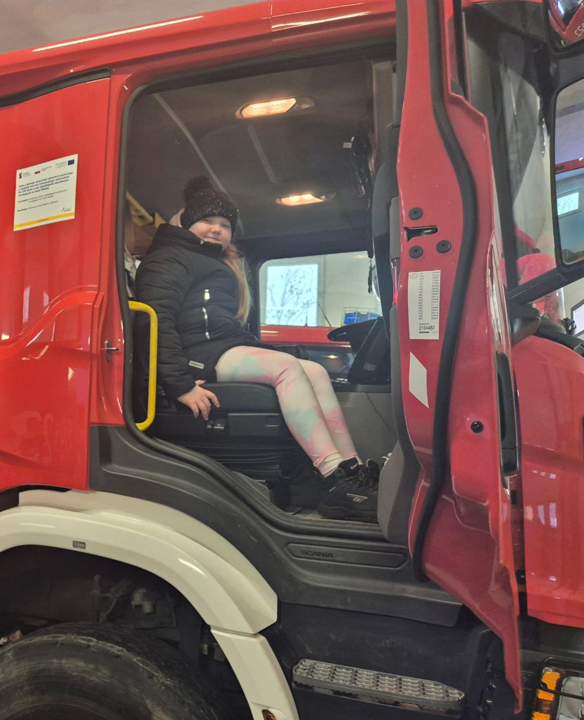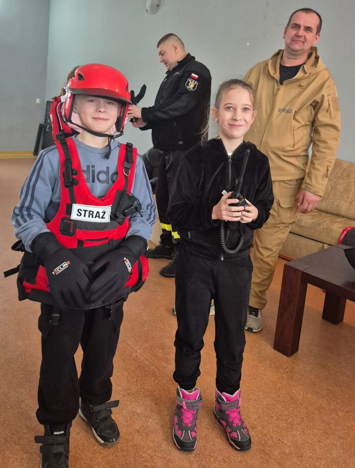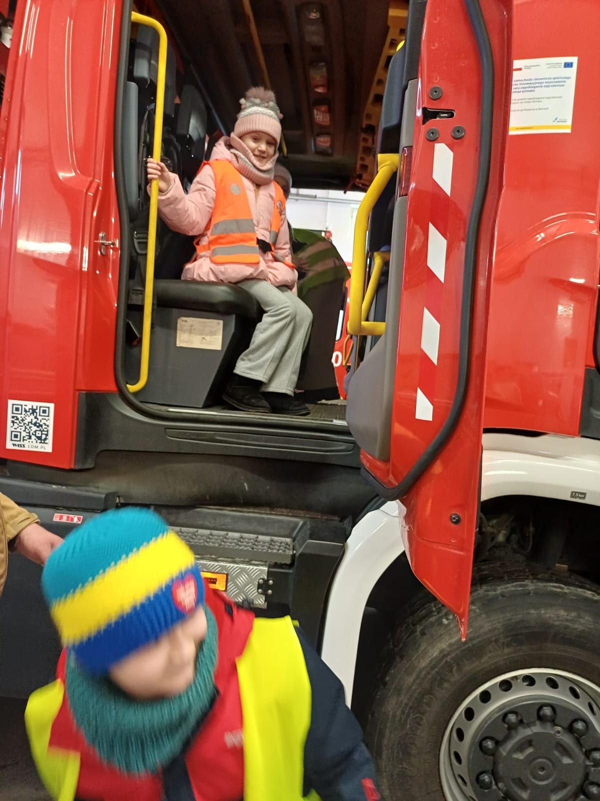 Uczniowie klas 1–3 odwiedzili straż pożarną, aby dowiedzieć się, jak bezpiecznie spędzić ferie zimowe.