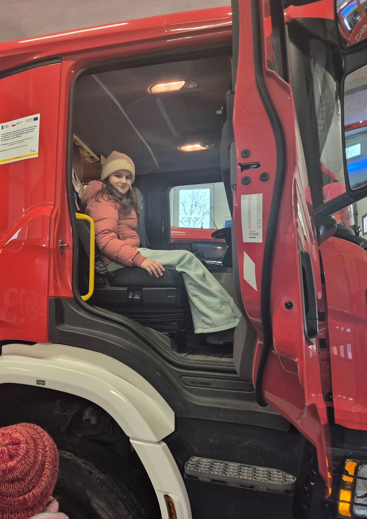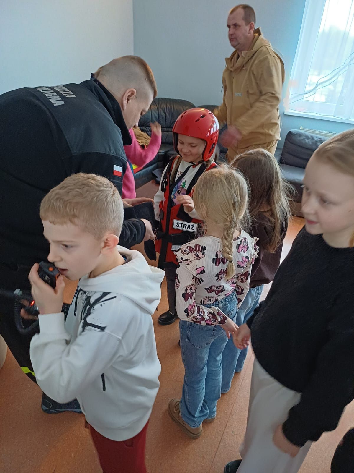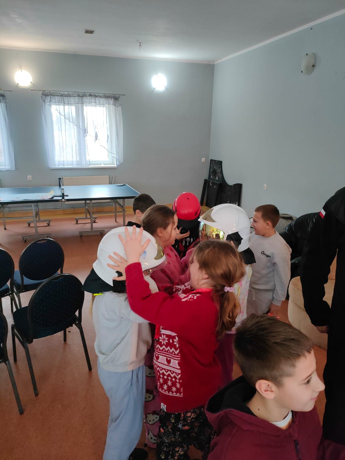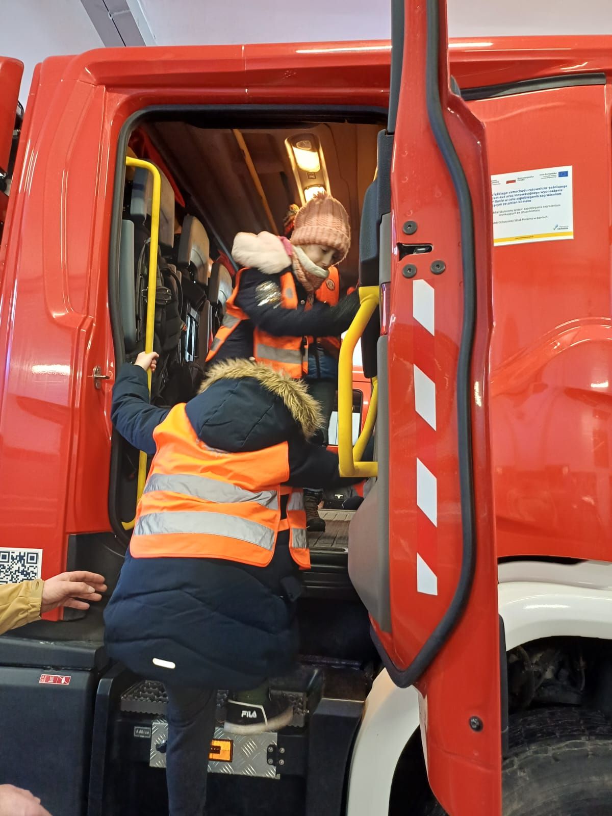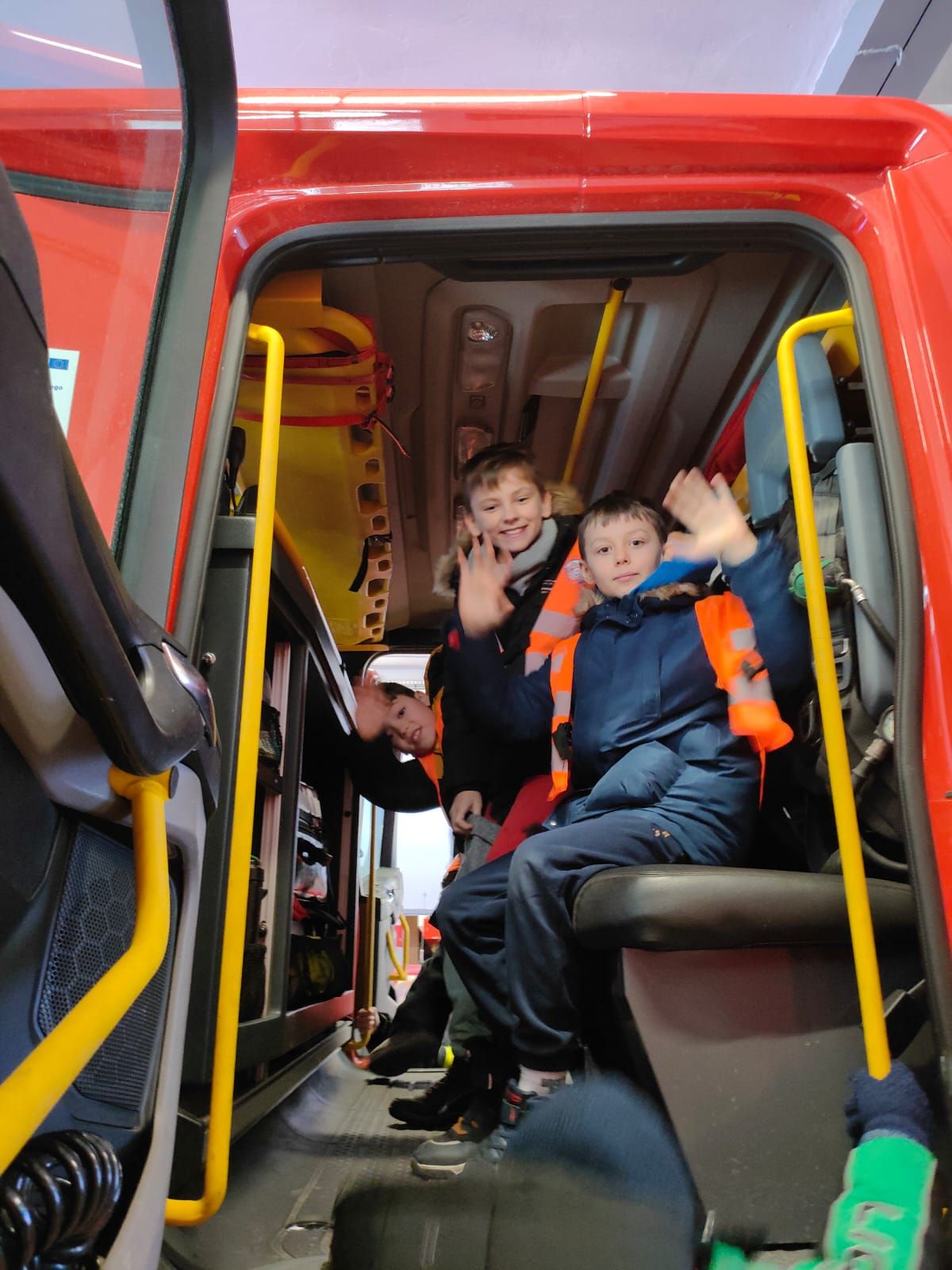 Uczniowie klas 1–3 odwiedzili straż pożarną, aby dowiedzieć się, jak bezpiecznie spędzić ferie zimowe.