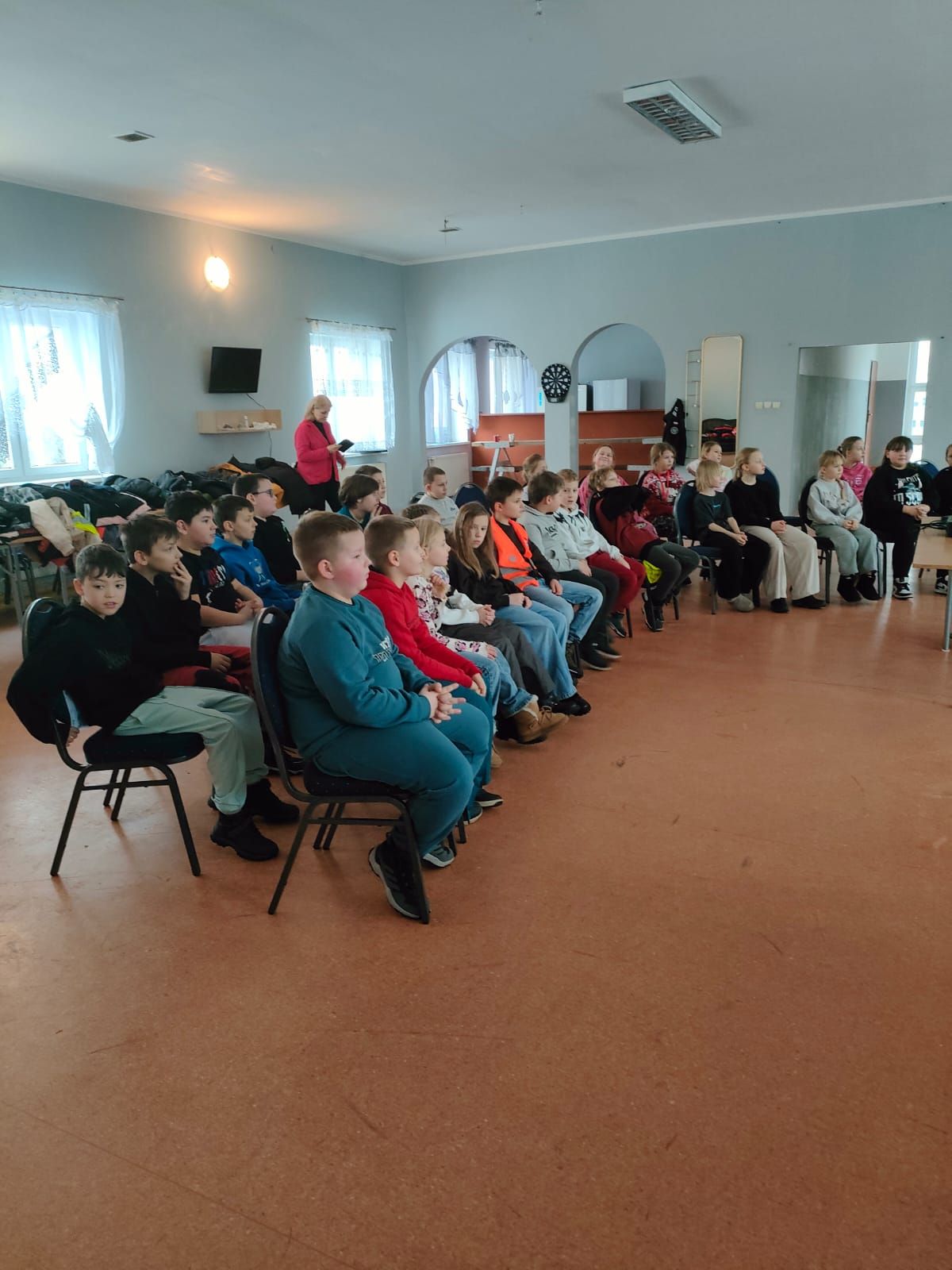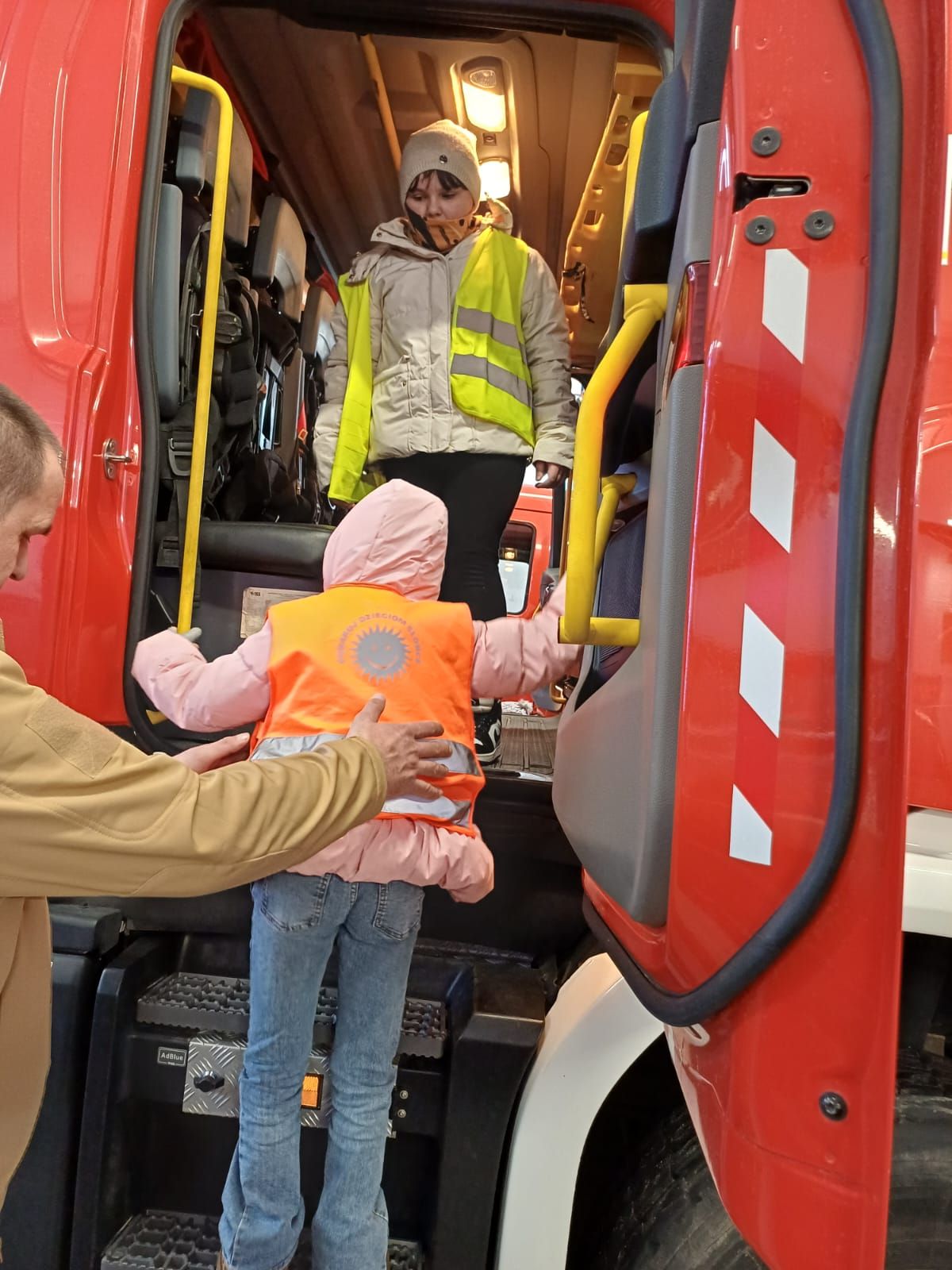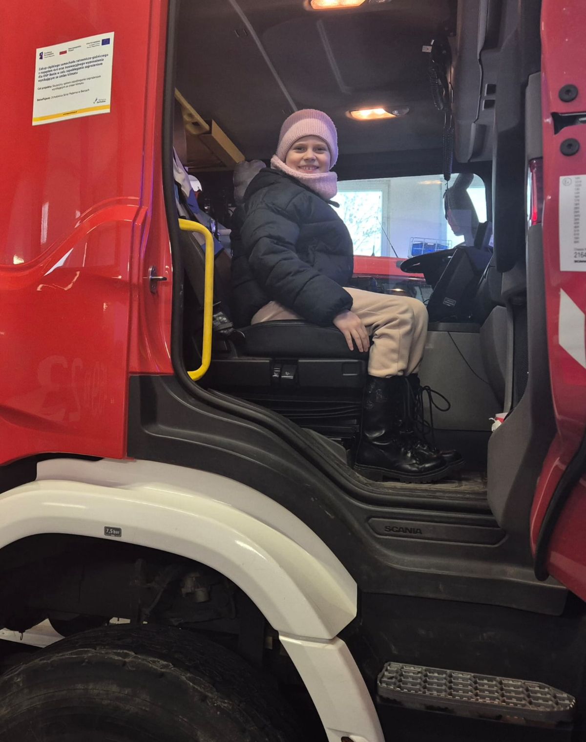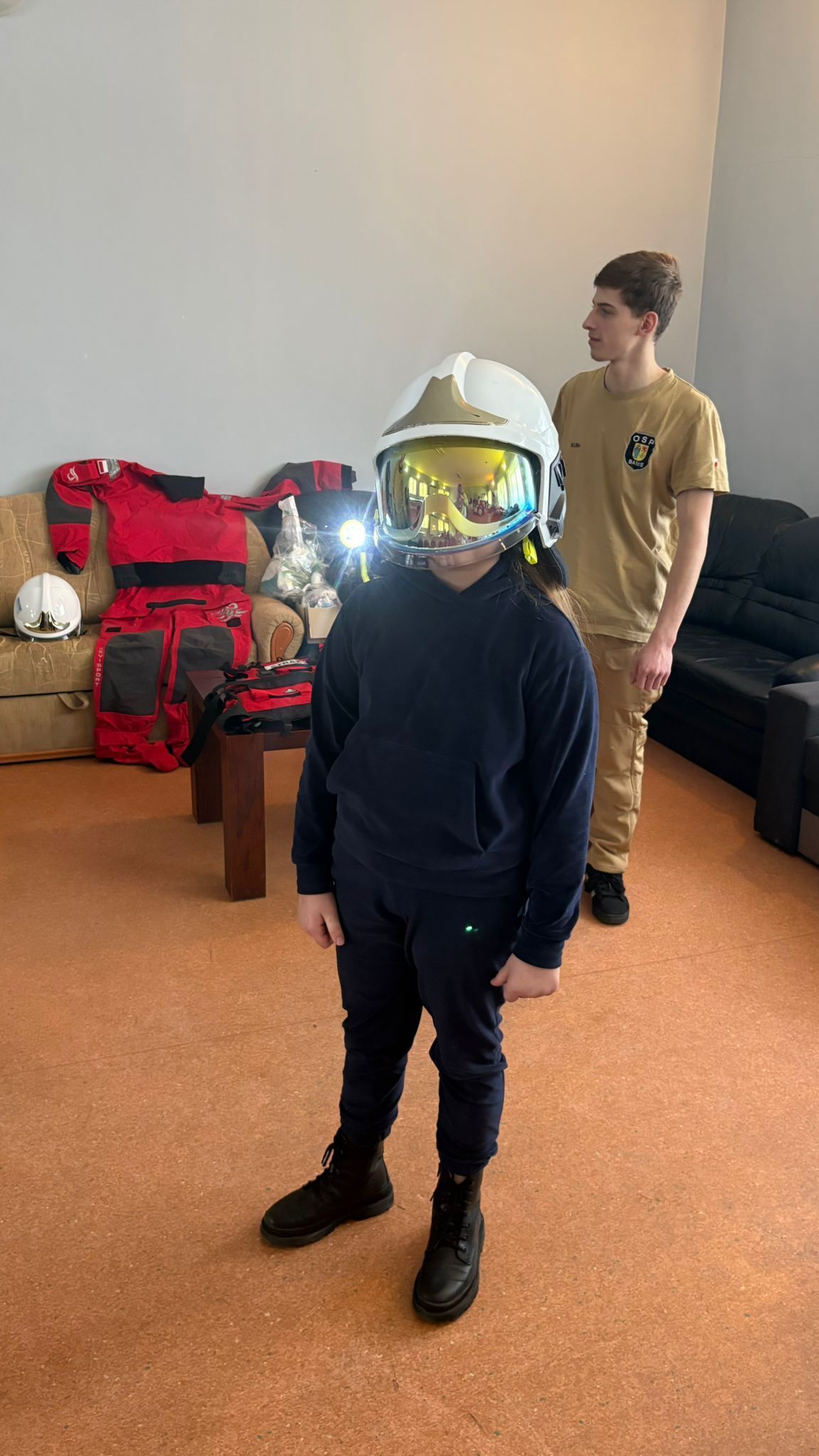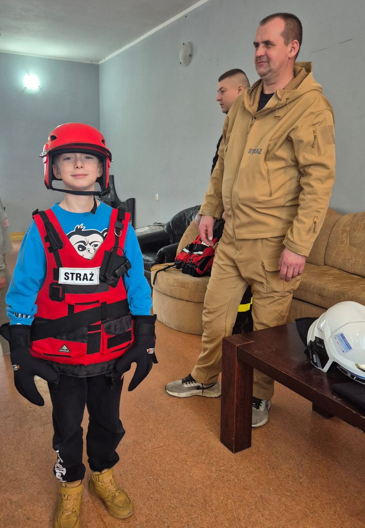 Uczniowie klas 1–3 odwiedzili straż pożarną, aby dowiedzieć się, jak bezpiecznie spędzić ferie zimowe.