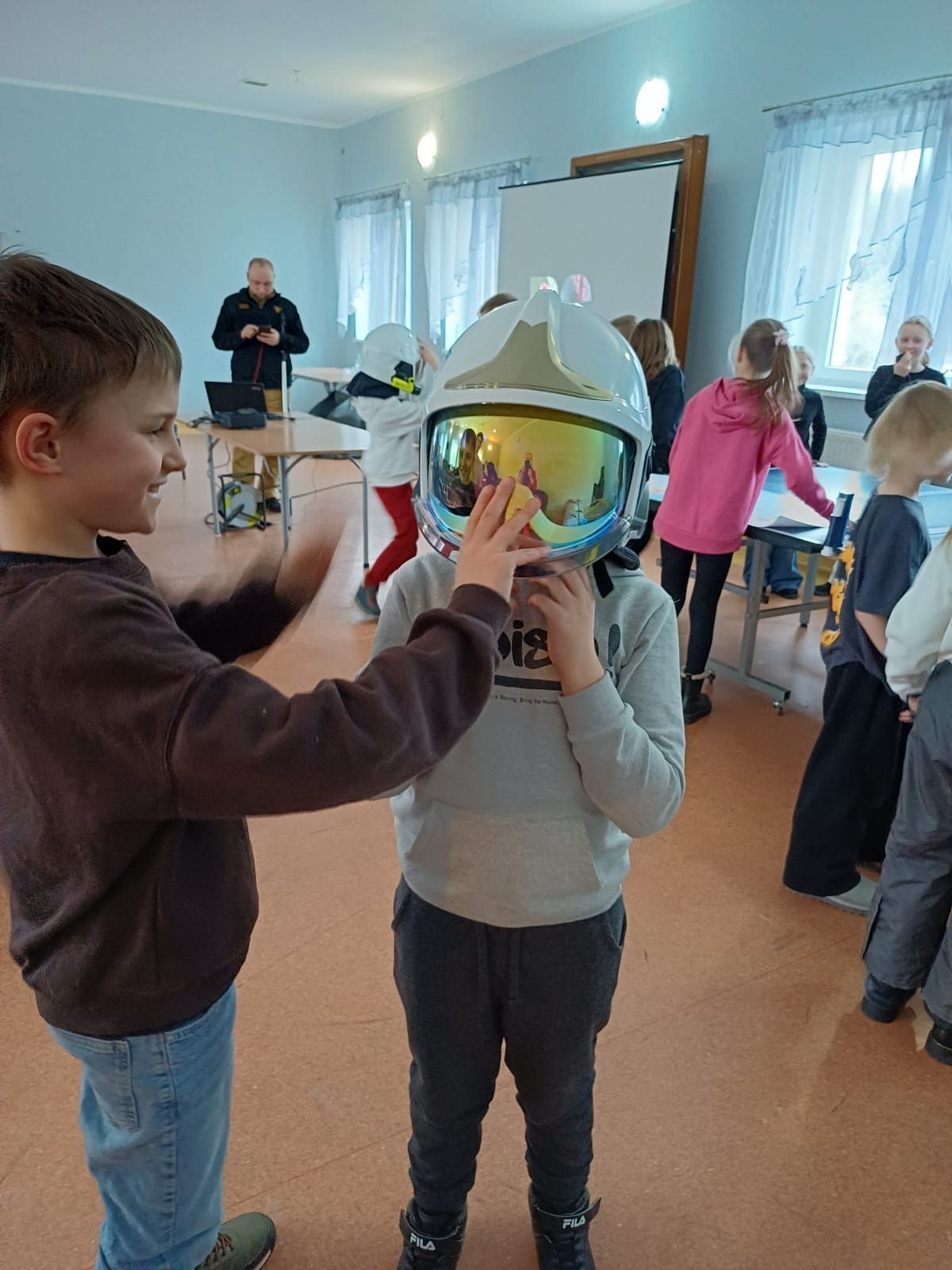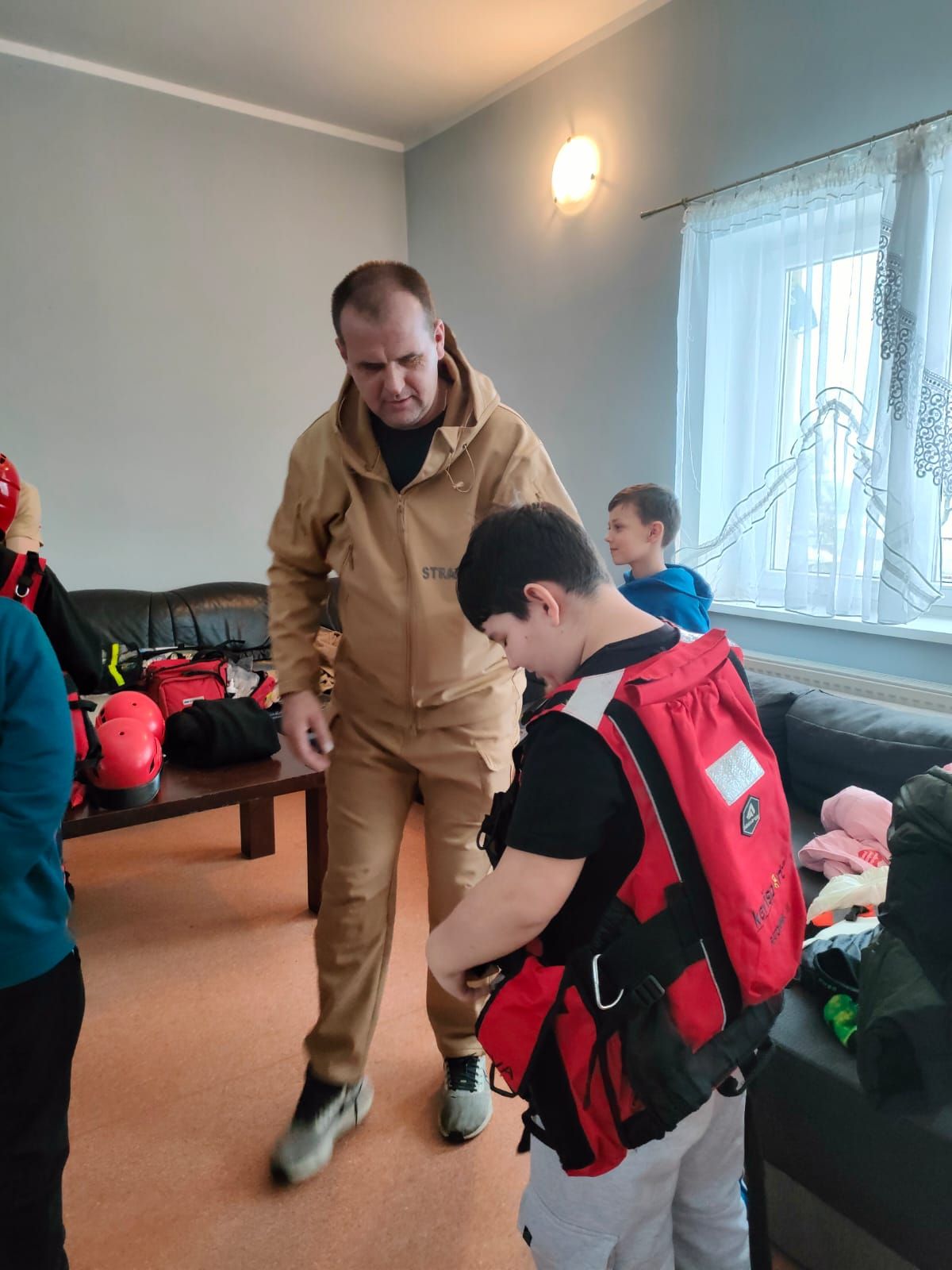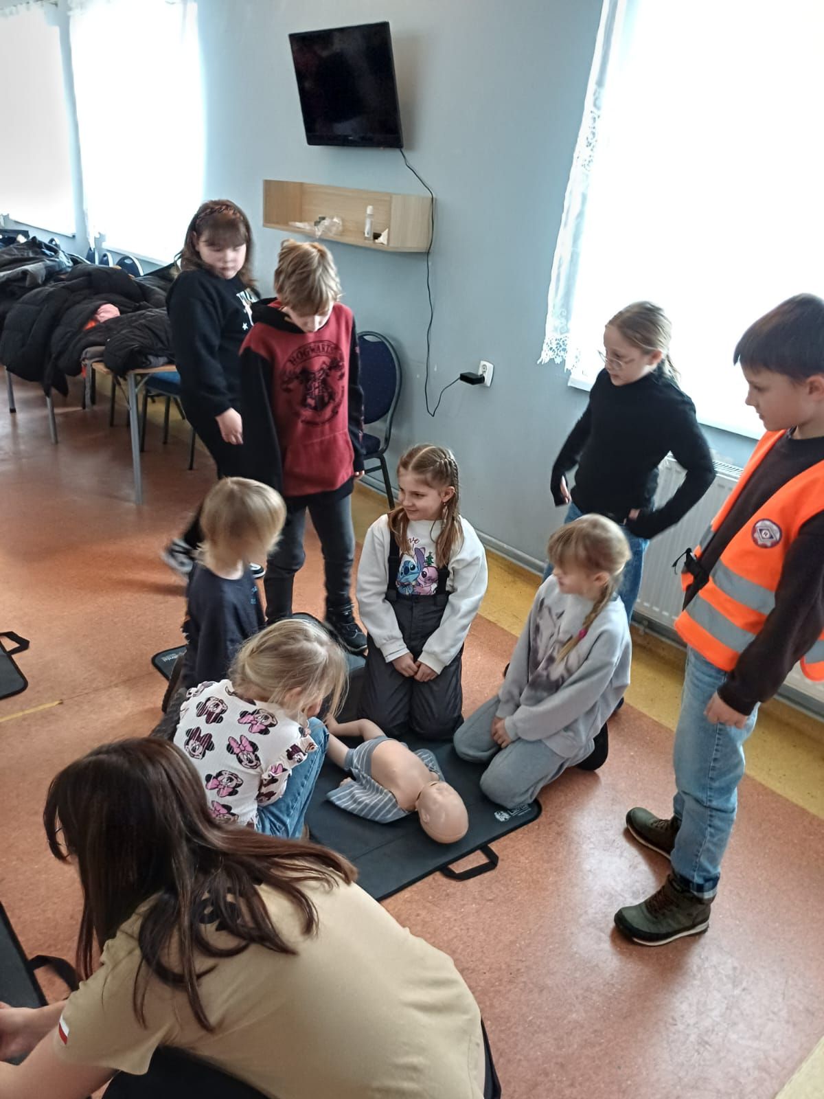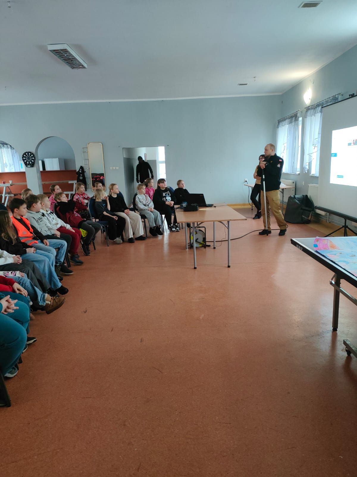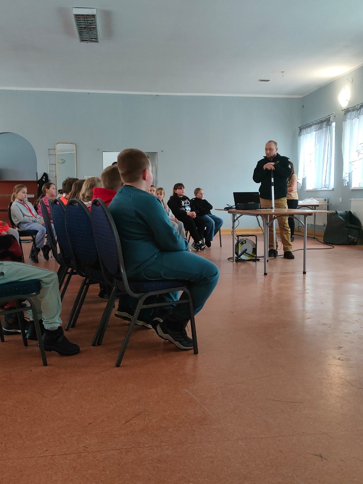 Uczniowie klas 1–3 odwiedzili straż pożarną, aby dowiedzieć się, jak bezpiecznie spędzić ferie zimowe.