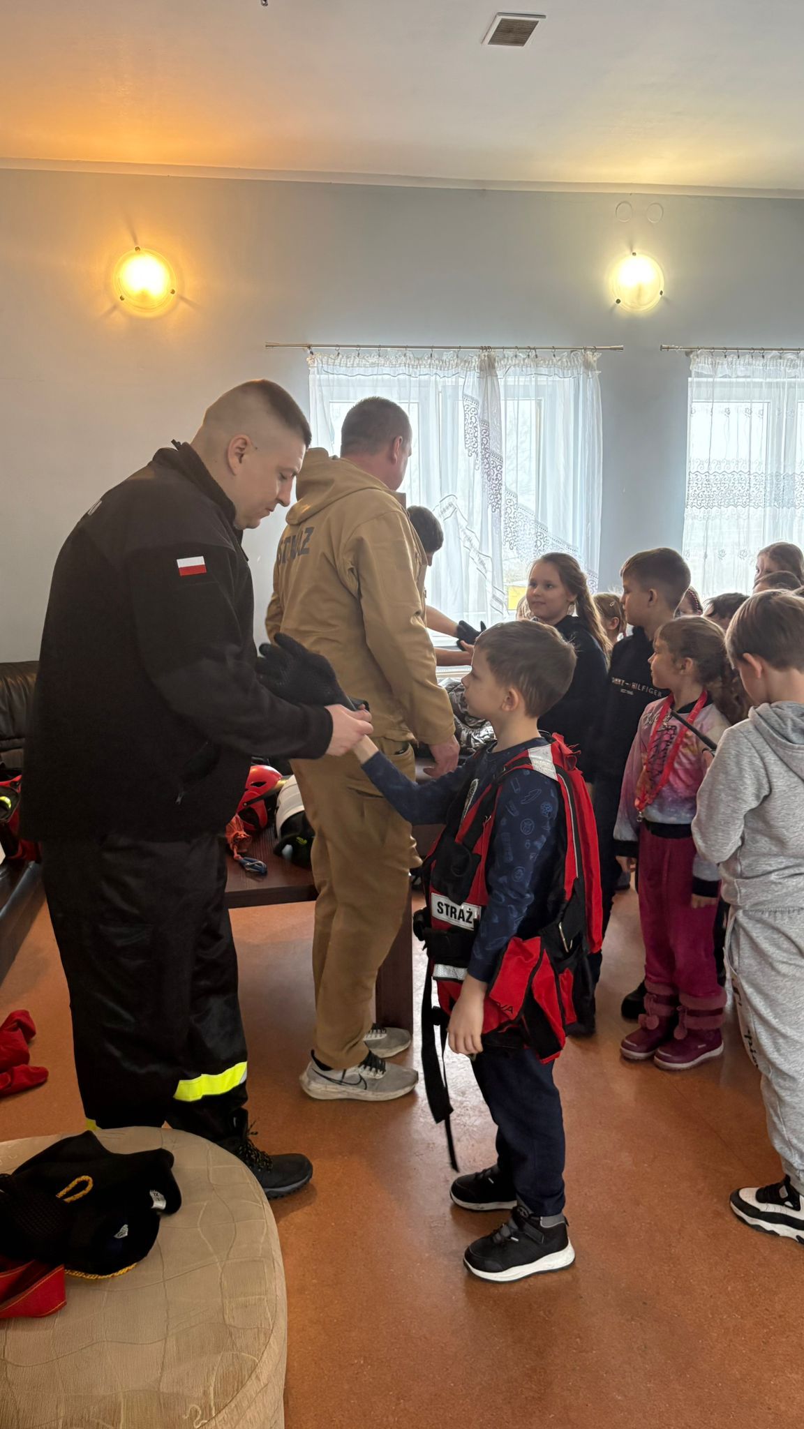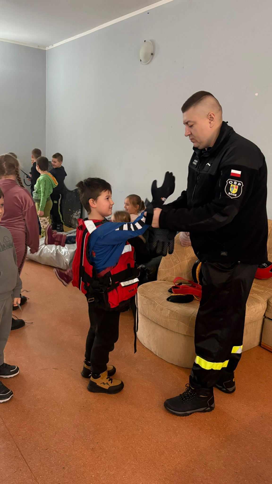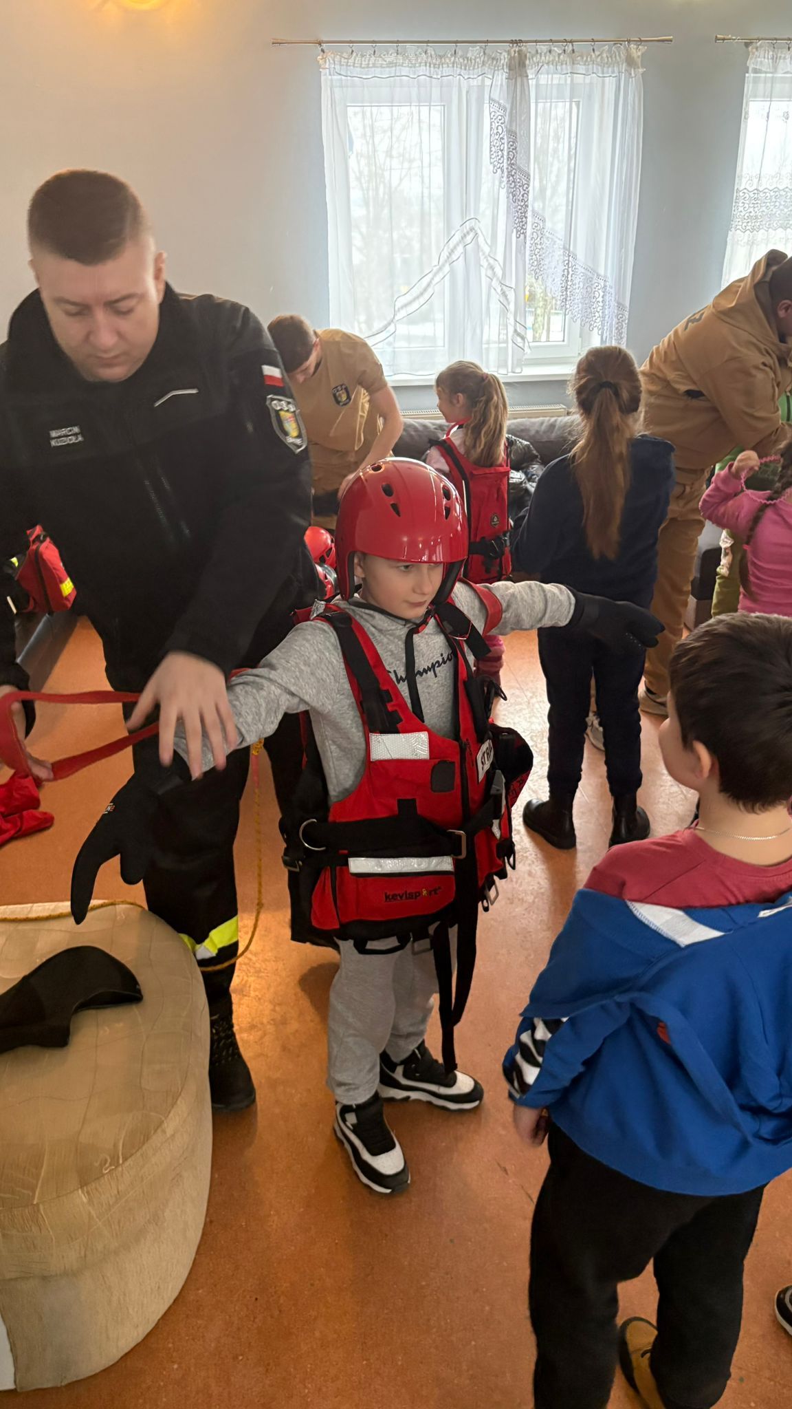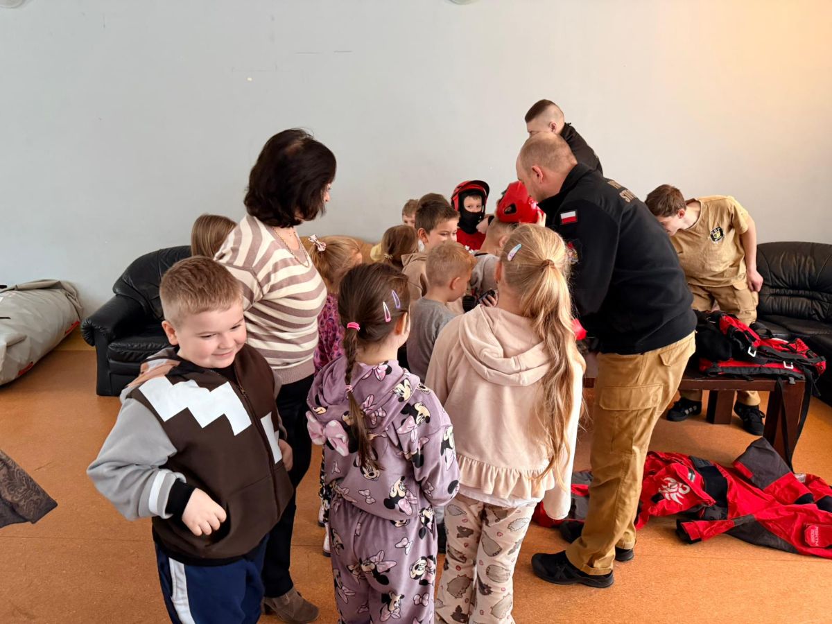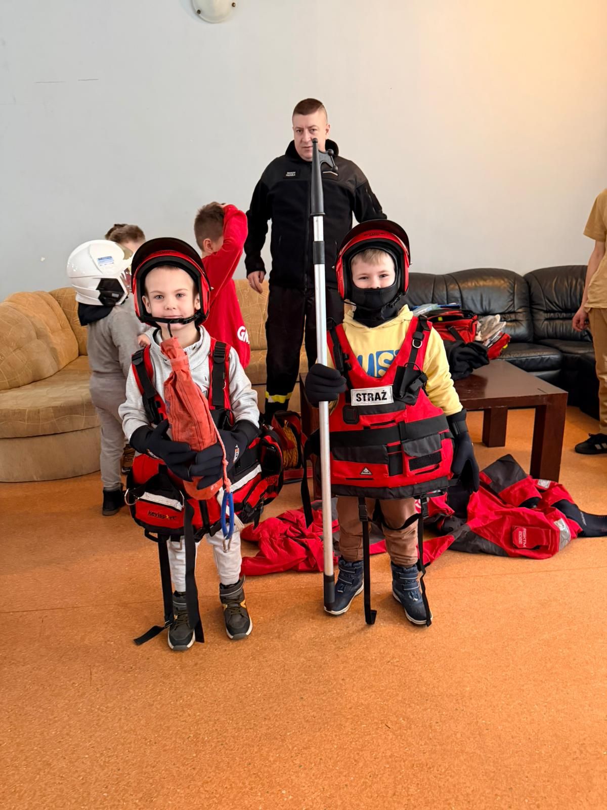Podczas spotkania dzieci poznały zasady bezpiecznej zabawy na śniegu i lodzie, utrwaliły numery alarmowe oraz dowiedziały się, jak zachować się w sytuacjach zagrożenia. Strażacy zaprezentowali również sprzęt ratowniczy i opowiedzieli o swojej odpowiedzialnej pracy.