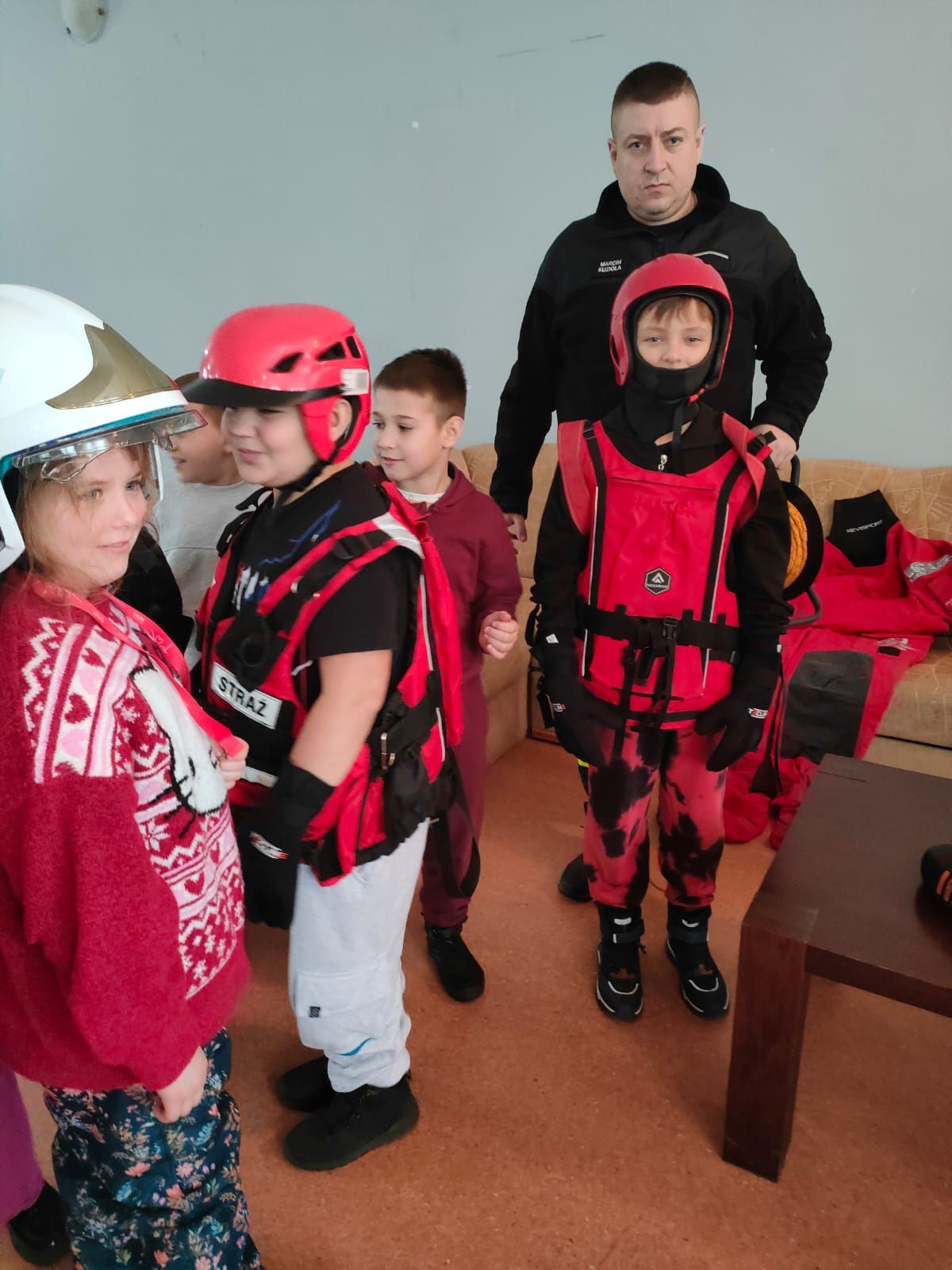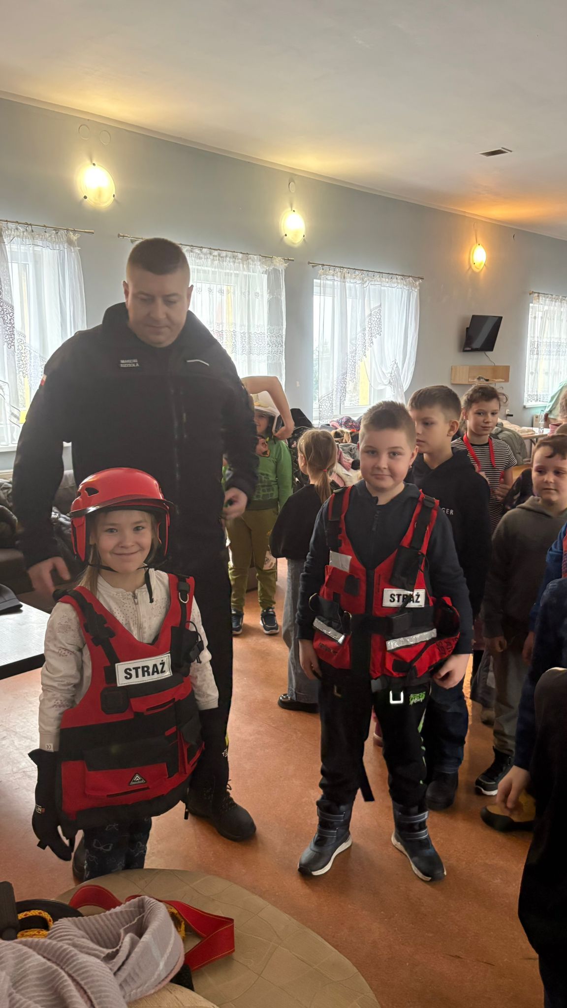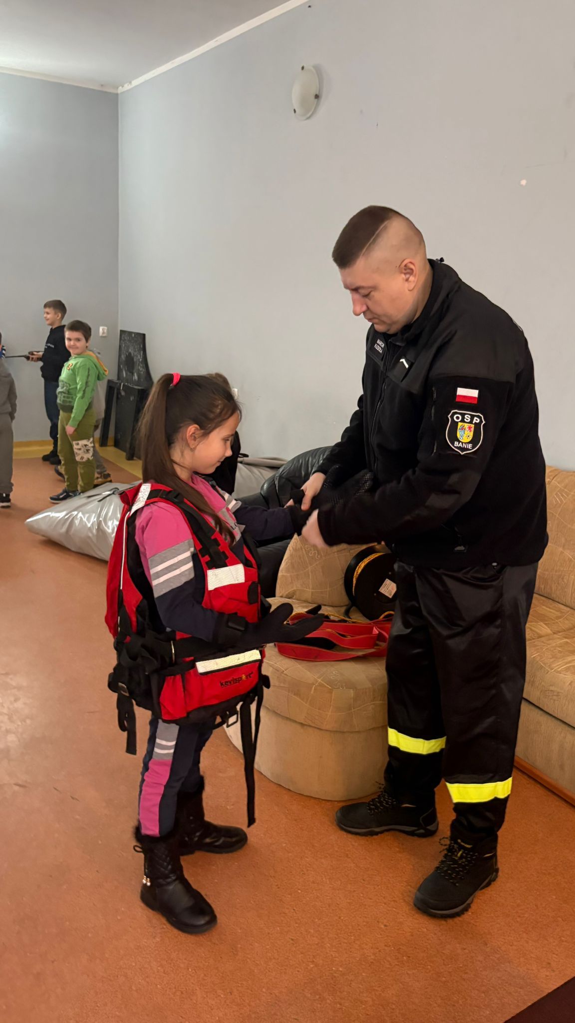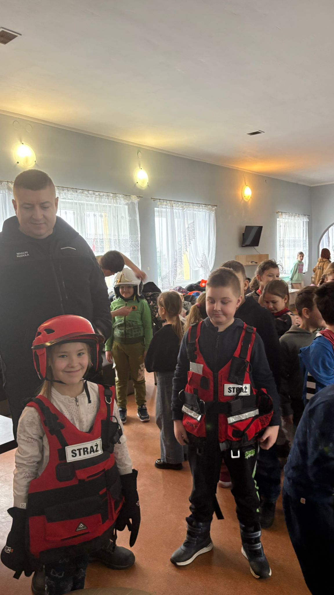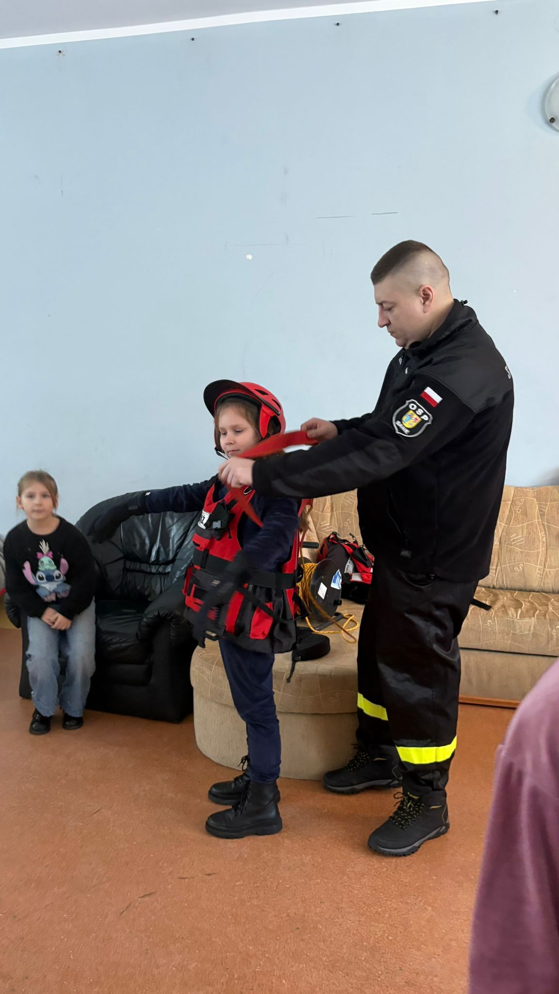 Podczas spotkania dzieci poznały zasady bezpiecznej zabawy na śniegu i lodzie, utrwaliły numery alarmowe oraz dowiedziały się, jak zachować się w sytuacjach zagrożenia. Strażacy zaprezentowali również sprzęt ratowniczy i opowiedzieli o swojej odpowiedzialnej pracy.