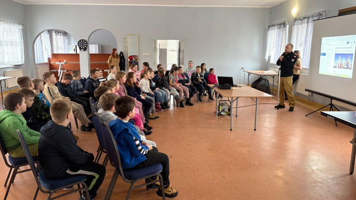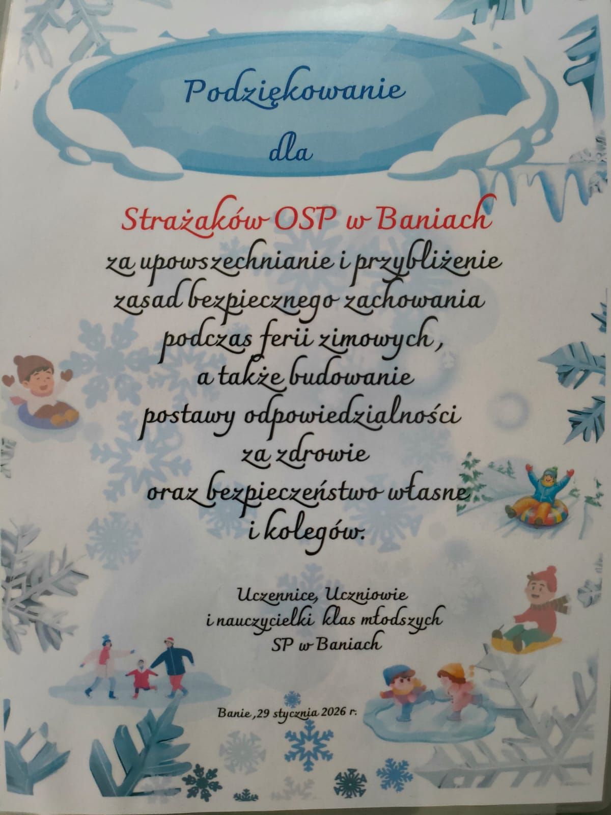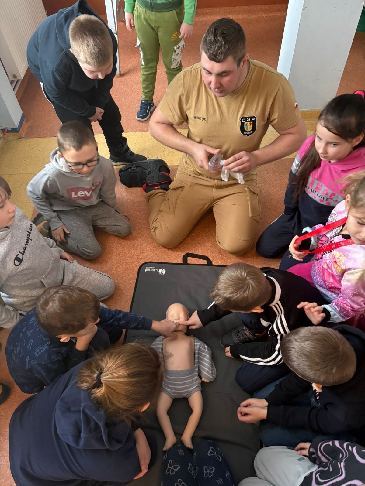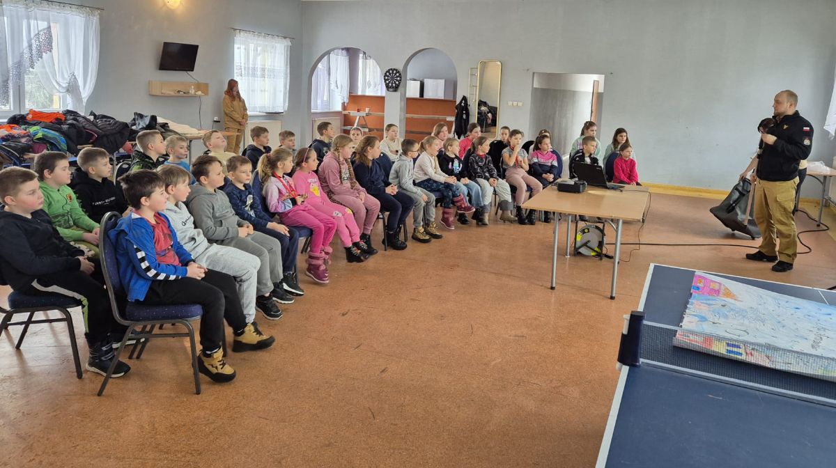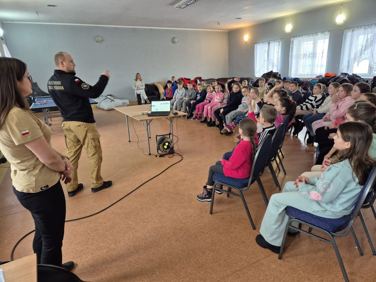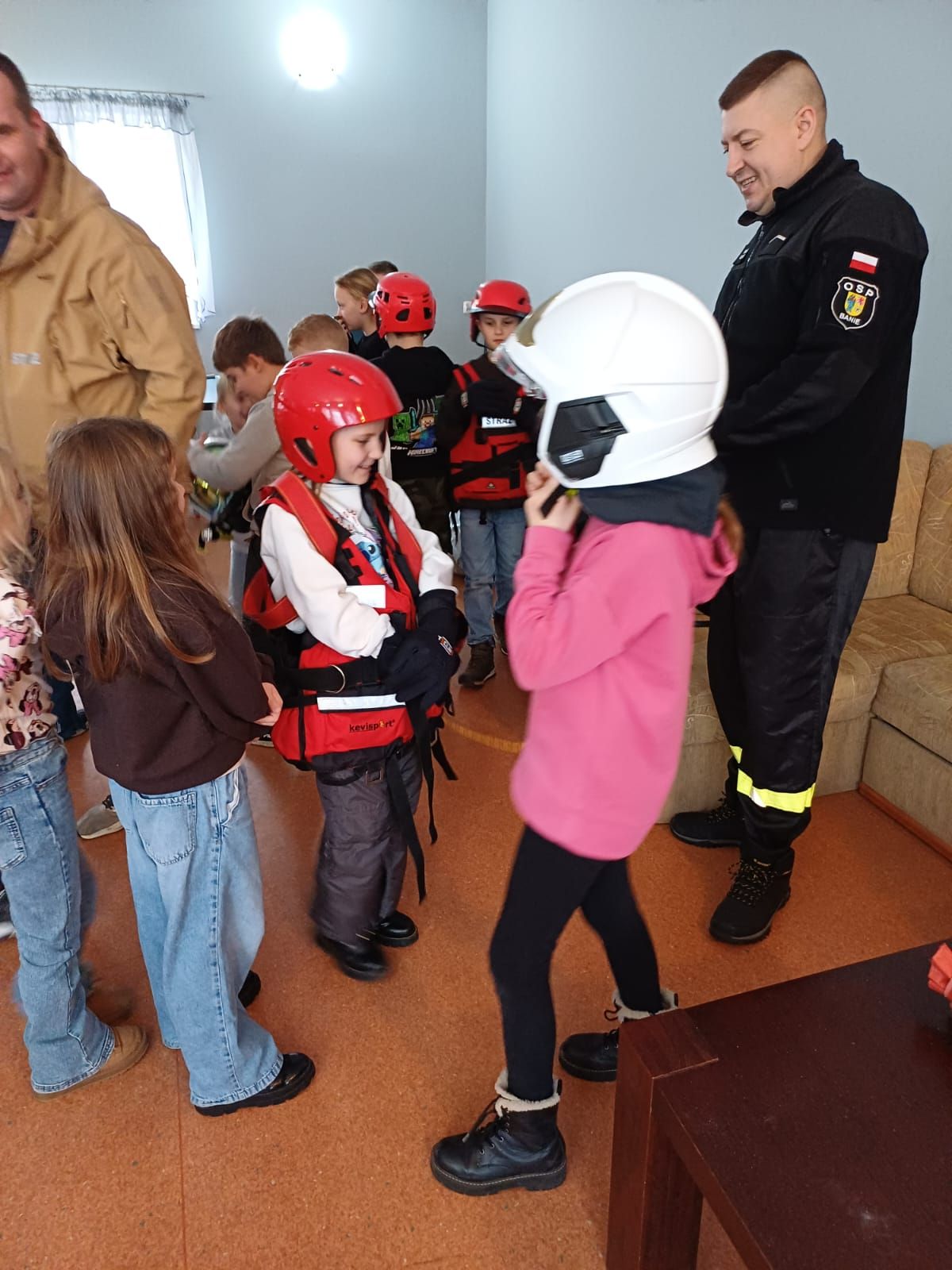 Podczas spotkania dzieci poznały zasady bezpiecznej zabawy na śniegu i lodzie, utrwaliły numery alarmowe oraz dowiedziały się, jak zachować się w sytuacjach zagrożenia. Strażacy zaprezentowali również sprzęt ratowniczy i opowiedzieli o swojej odpowiedzialnej pracy.