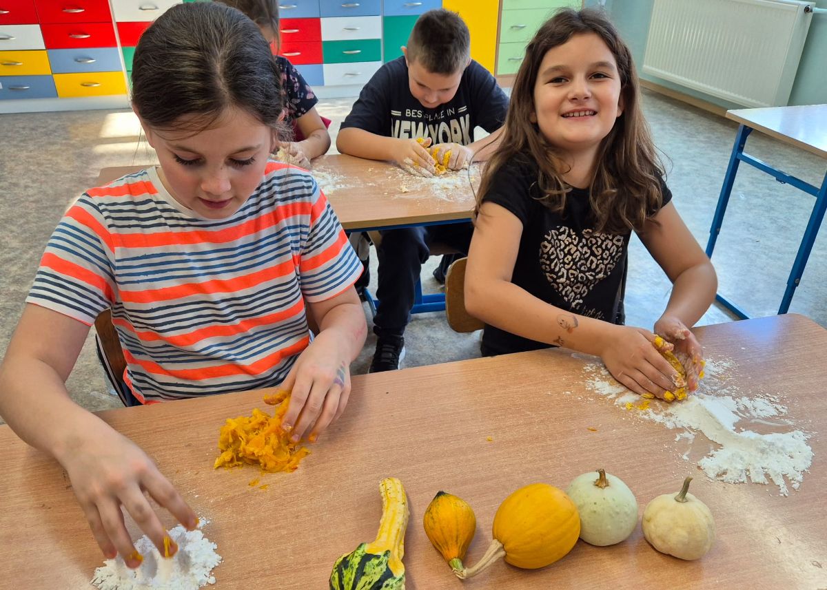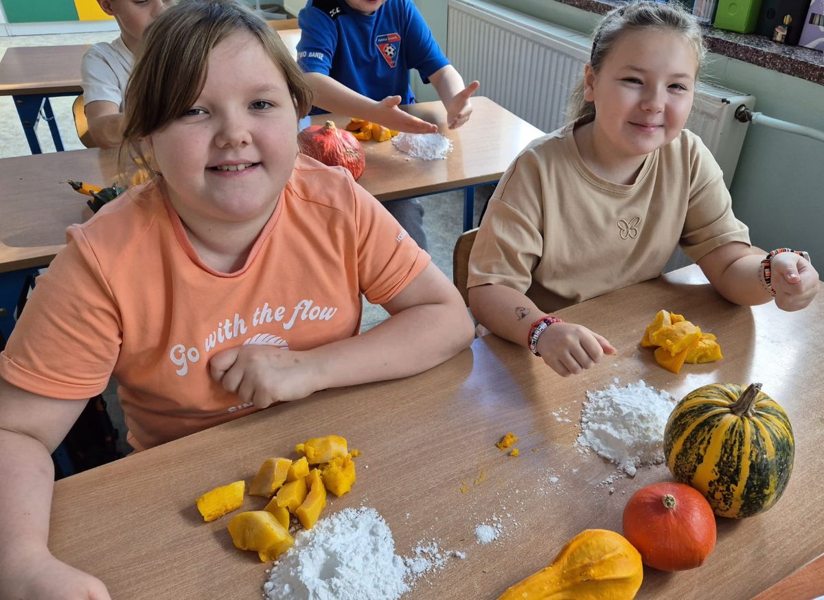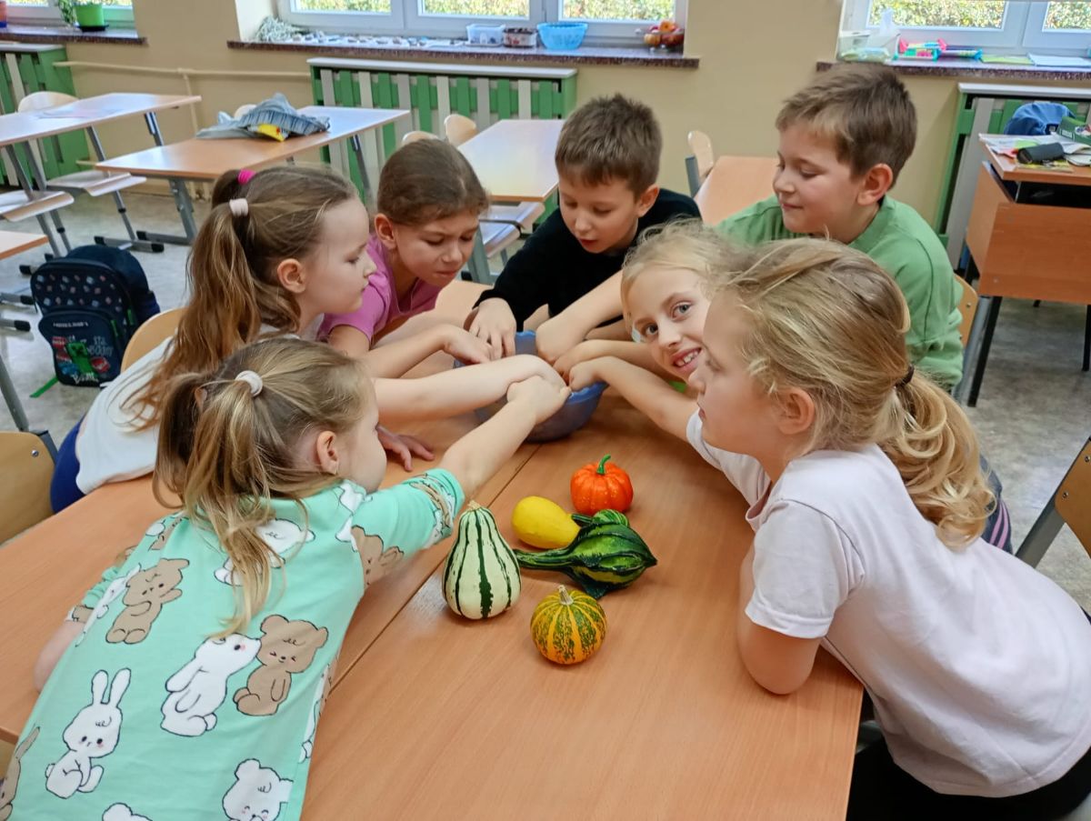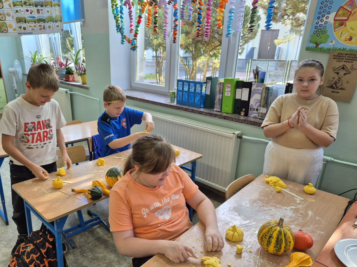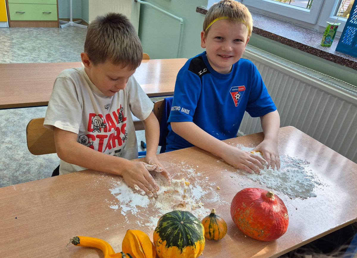 W klasie 3a i 1b jesień zawitała na dobre! Dzieci przygotowały pachnącą masę sensoryczną z dyni, którą mogły ugniatać, mieszać i formować według własnych pomysłów.