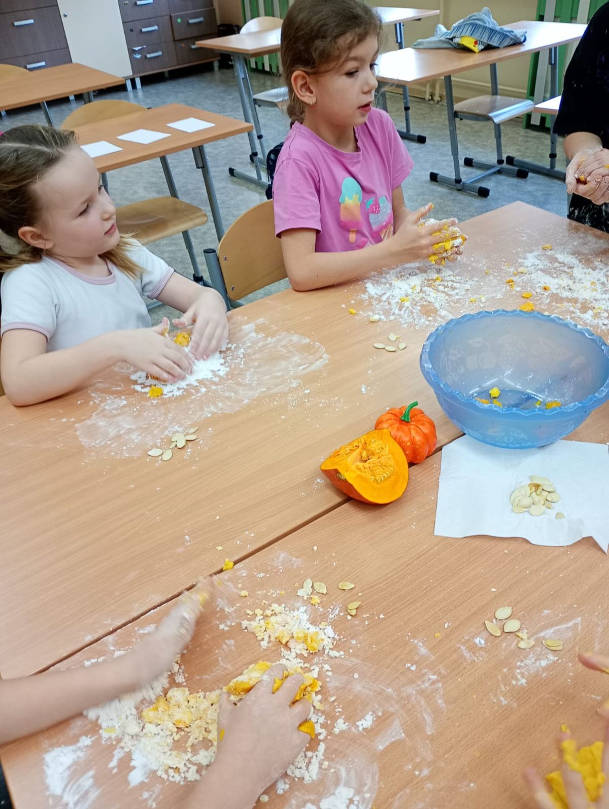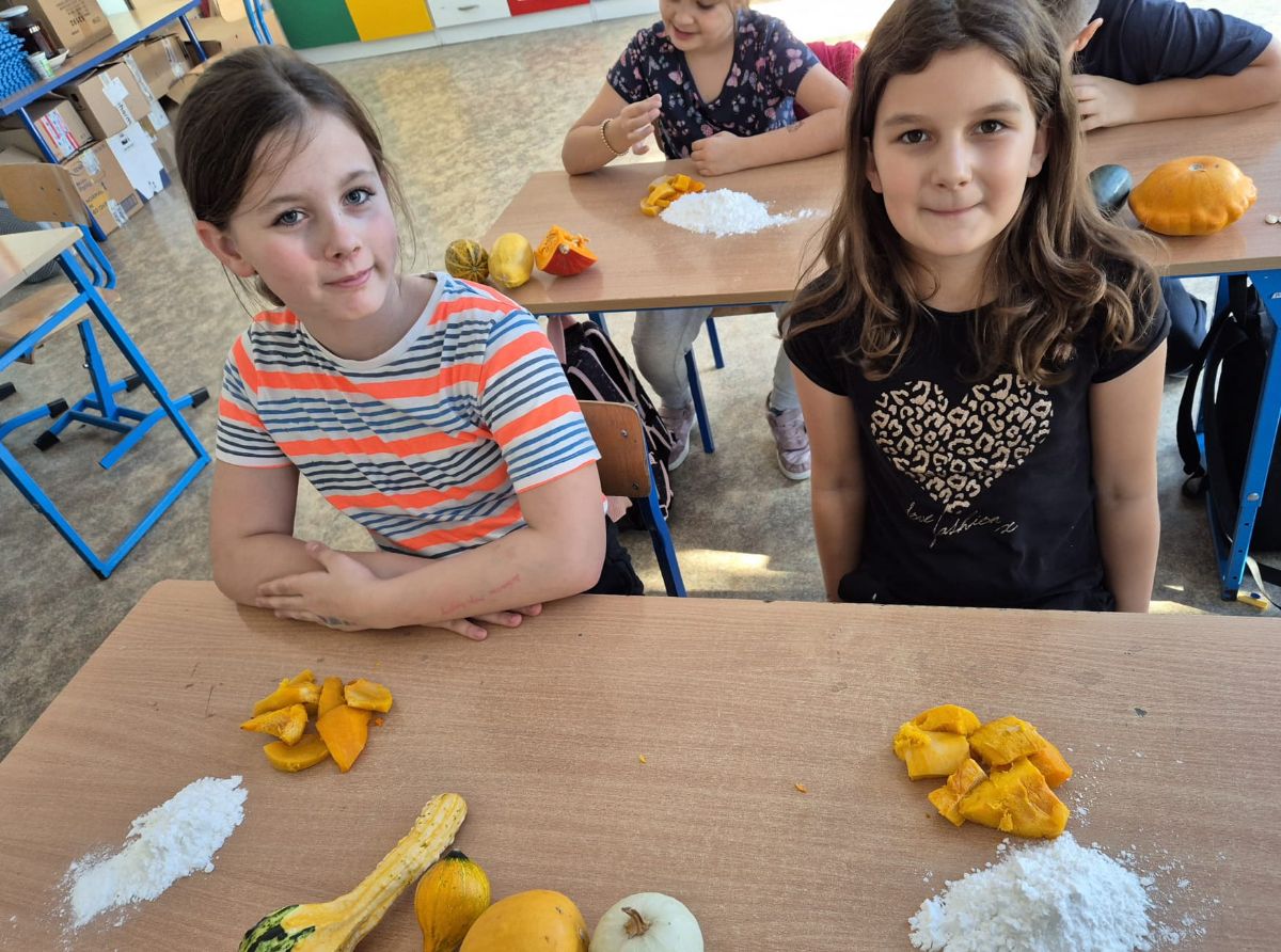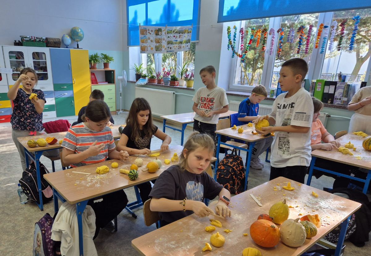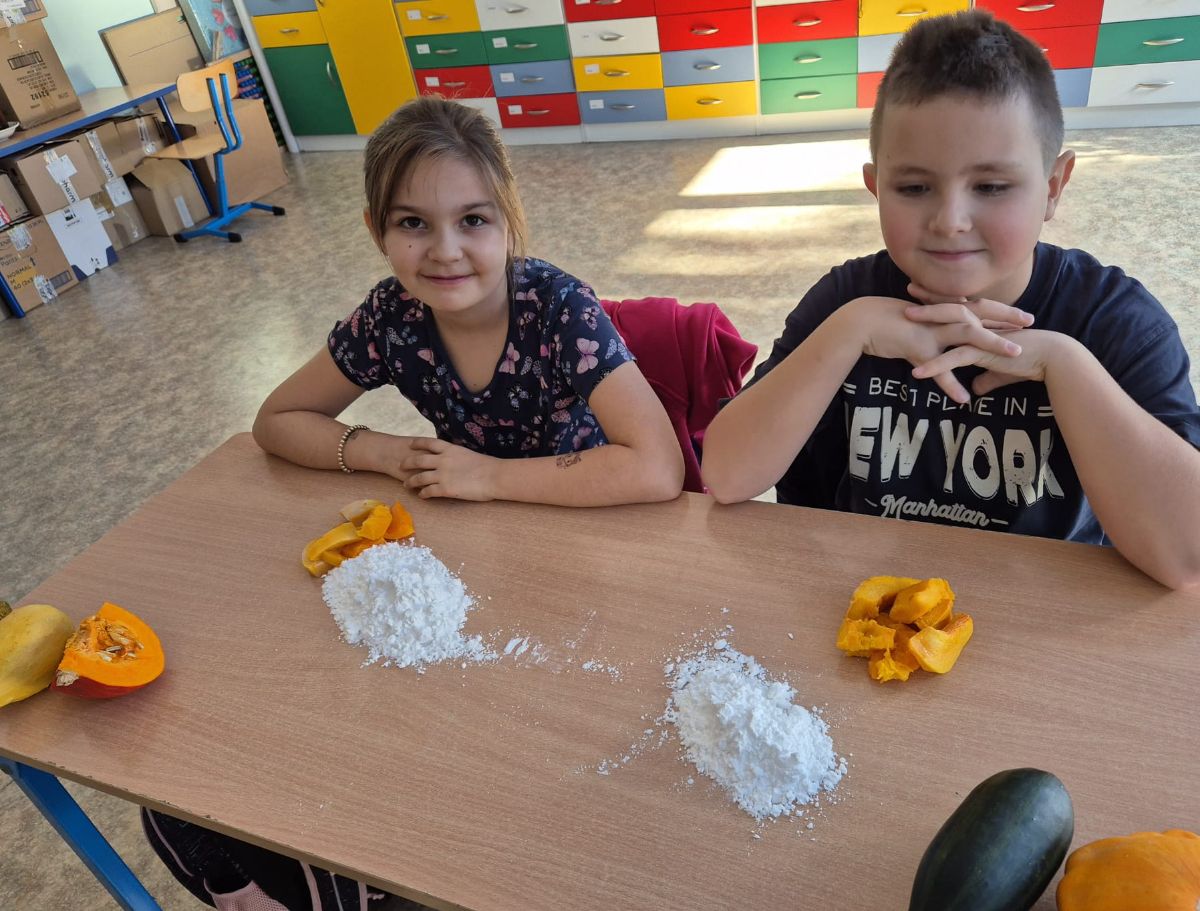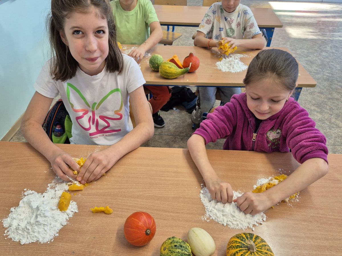 W klasie 3a i 1b jesień zawitała na dobre! Dzieci przygotowały pachnącą masę sensoryczną z dyni, którą mogły ugniatać, mieszać i formować według własnych pomysłów.