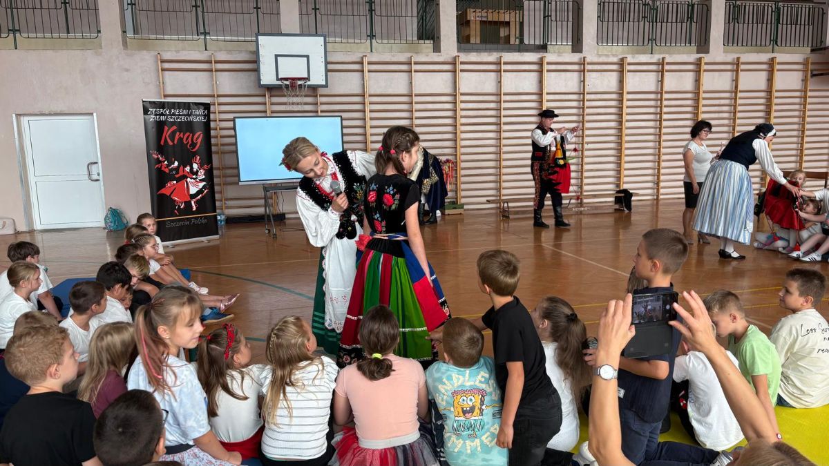 Dnia 19 września gościliśmy w naszej szkole członków Zespołu Pieśni i Tańca Ziemi Szczecińskiej "Krąg".