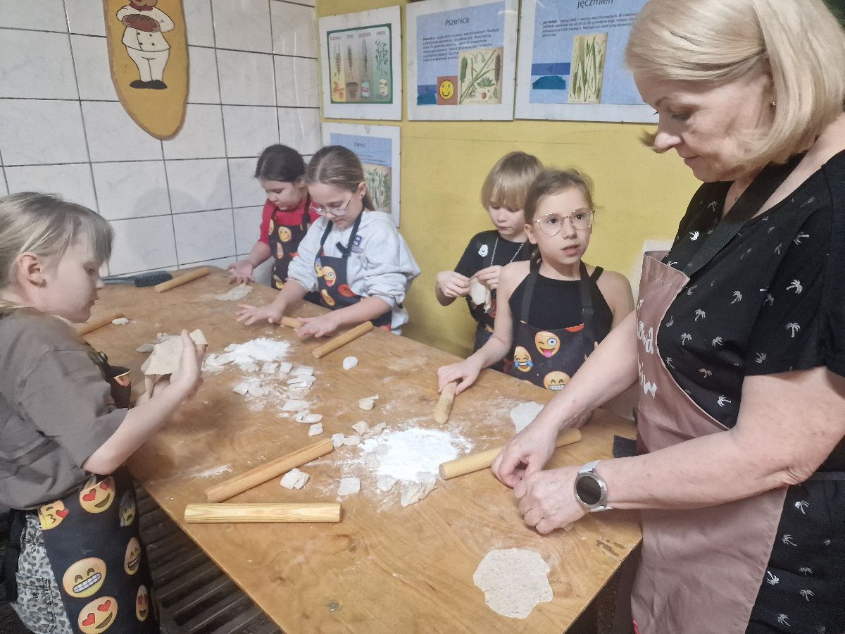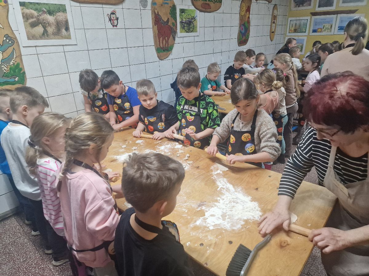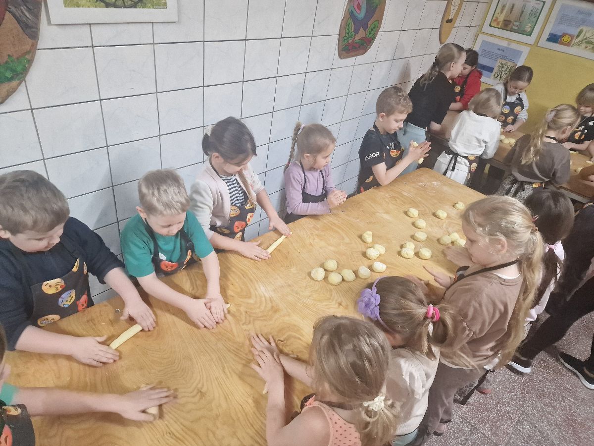 Podczas zajęć dzieci poznały tajniki pracy piekarza oraz dowiedziały się, jak powstaje pieczywo – od mąki aż po gotowy, chrupiący wypiek. Każdy uczestnik mógł własnoręcznie przygotować różne smakołyki. Wśród wypieków znalazły się: