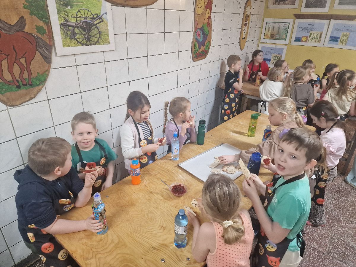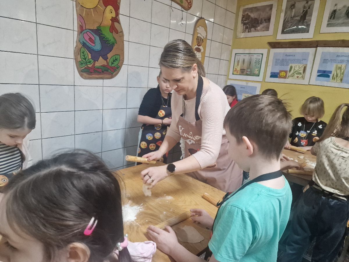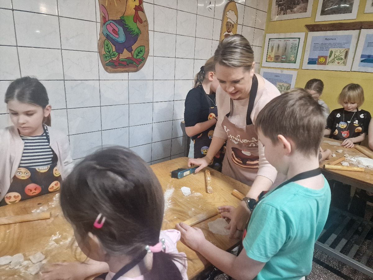 Podczas zajęć dzieci poznały tajniki pracy piekarza oraz dowiedziały się, jak powstaje pieczywo – od mąki aż po gotowy, chrupiący wypiek. Każdy uczestnik mógł własnoręcznie przygotować różne smakołyki. Wśród wypieków znalazły się: