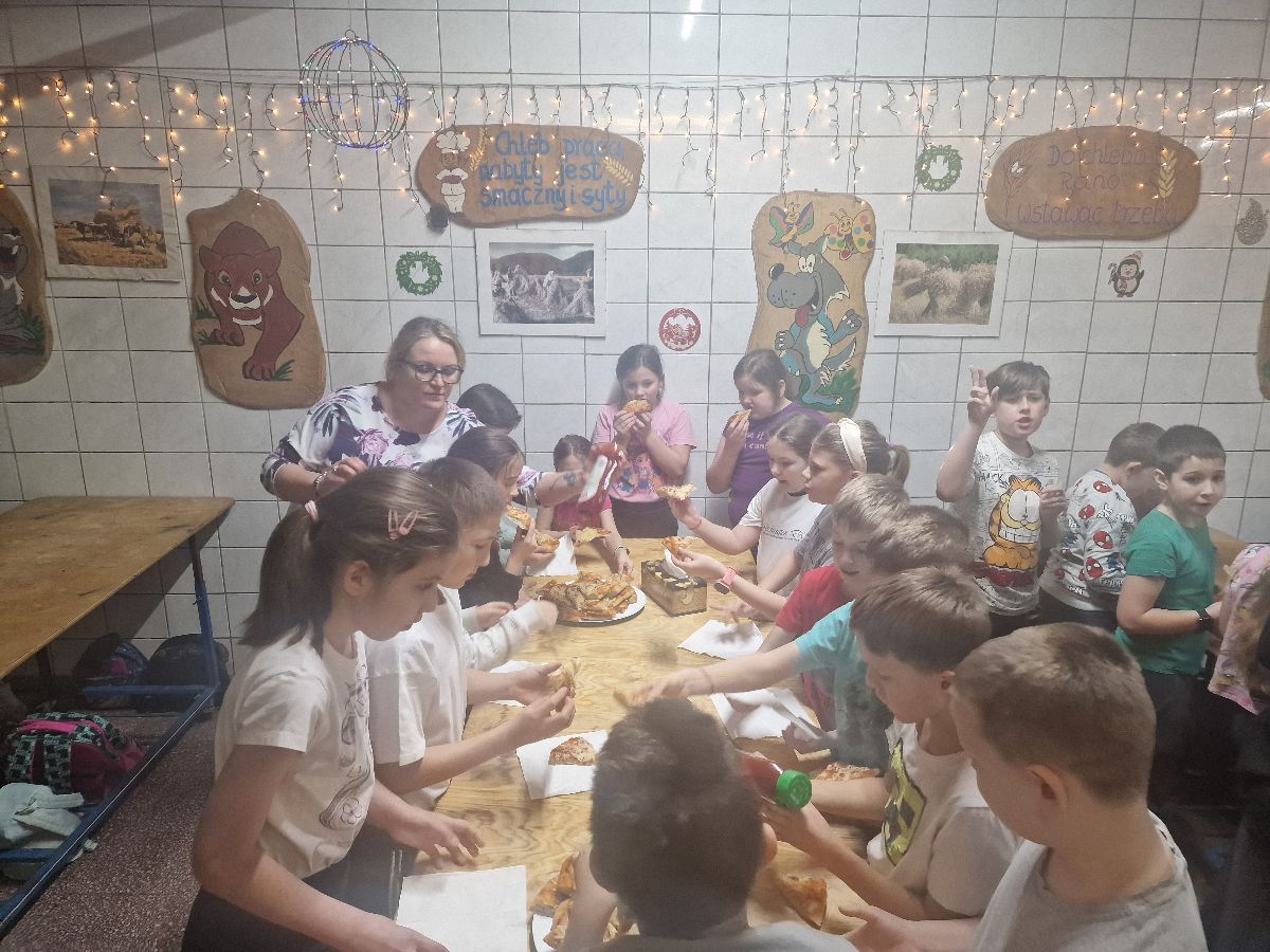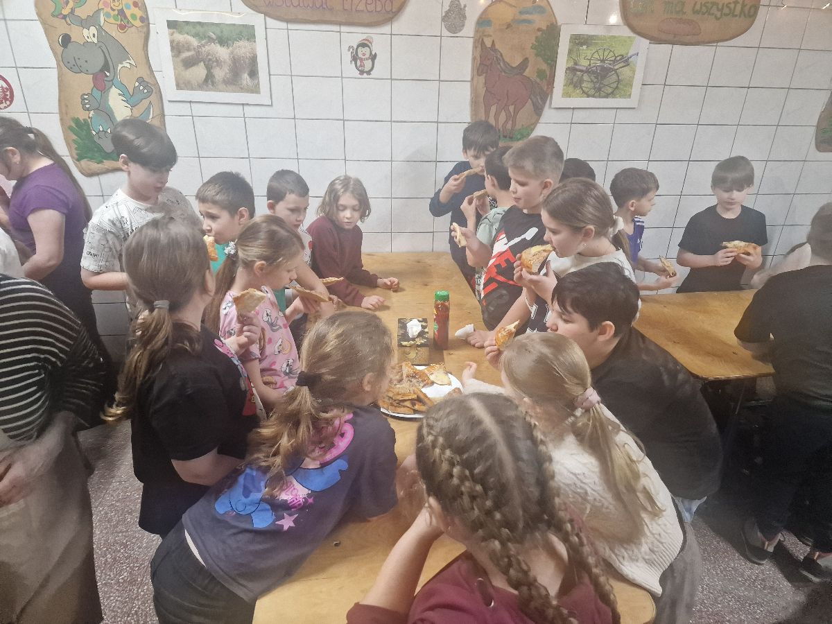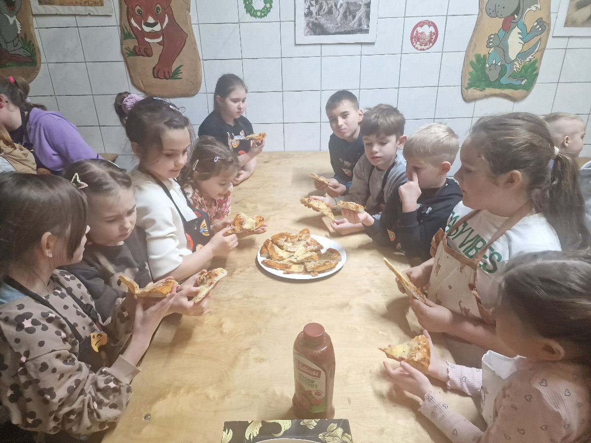 Na zakończenie warsztatów czekała na wszystkich miła niespodzianka – ciepła, pyszna pizza przygotowana przez szefową piekarni, która smakowała wyjątkowo po tak pracowitej wizycie.