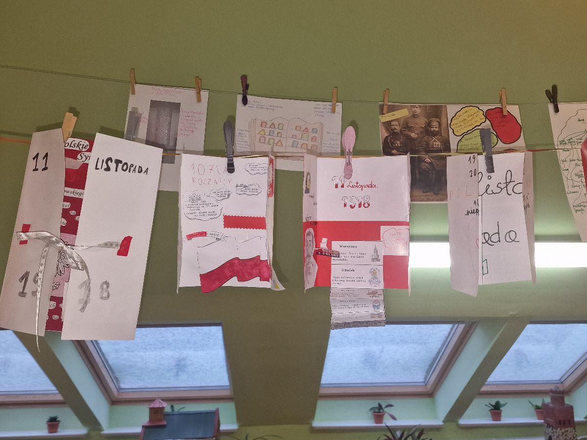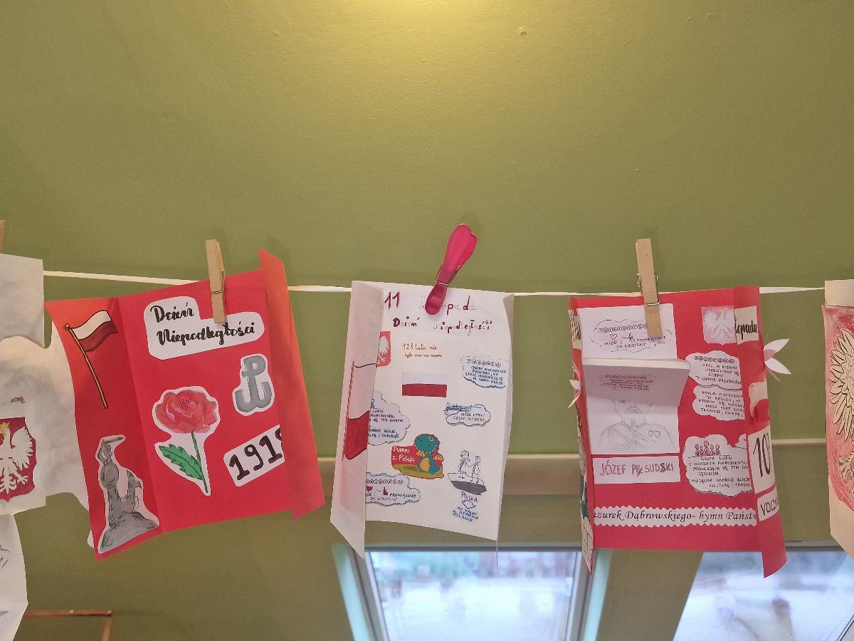 Z okazji Narodowego Święta Niepodległości na lekcjach historii i WOS-u uczniowie przygotowywali okolicznościowe lapbooki, poświęcone najważniejszym wydarzeniom i postaciom związanym z odzyskaniem przez Polskę niepodległości.