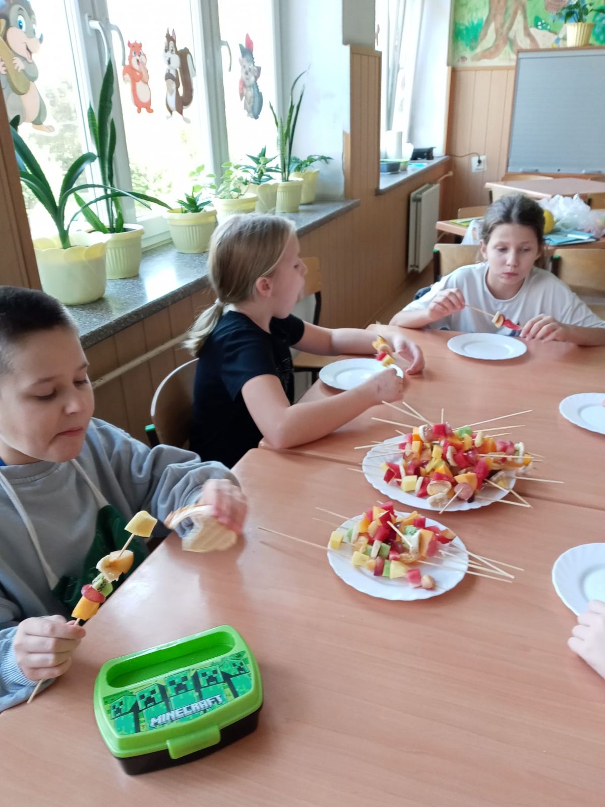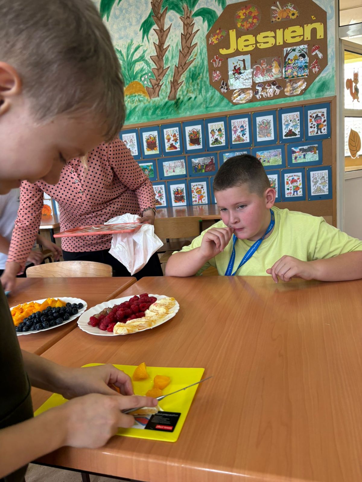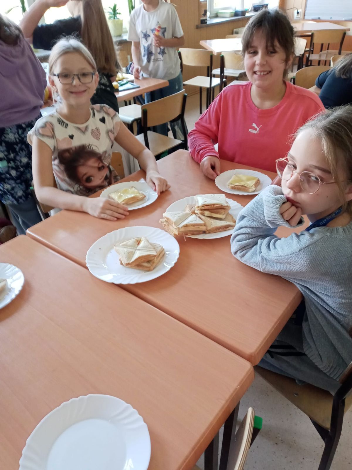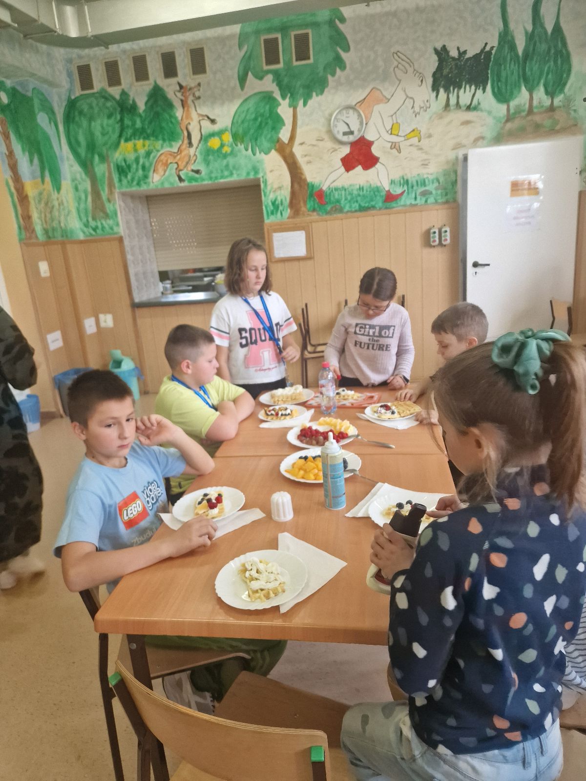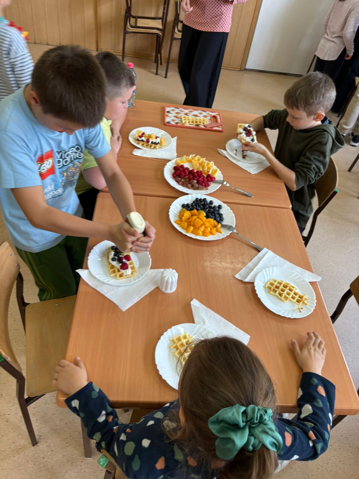 Nasza szkoła bierze udział w „Programie dla szkół” organizowanym przez KOWR. W ramach tego programu uczniowie klas IV i V na świetlicy szkolnej w grupach przygotowywali zdrowe posiłki: sałatki, gofry z owocami, koreczki z owoców – warsztaty kulinarne. Wszyscy brali czynny udział i pomagali sobie wzajemnie. Posiłki wykonywali według zasad bezpieczeństwa. Przestrzegali zasad higieny, przygotowując pyszne jedzonko. Praca przebiegała w miłej i sympatycznej atmosferze. Nie brakowało też śmiechu i humoru. Po skończonej pracy uczniowie częstowali nauczycieli i siebie nawzajem, życząc SMACZNEGO.