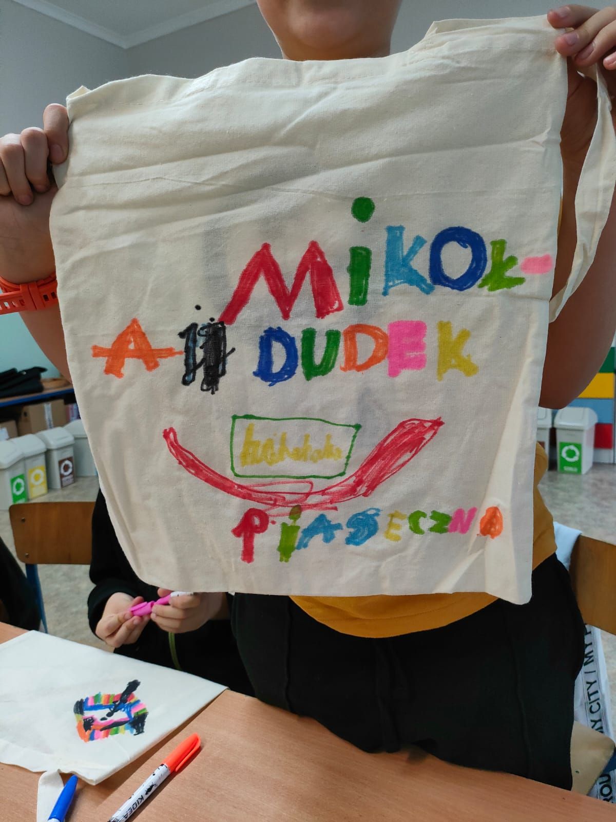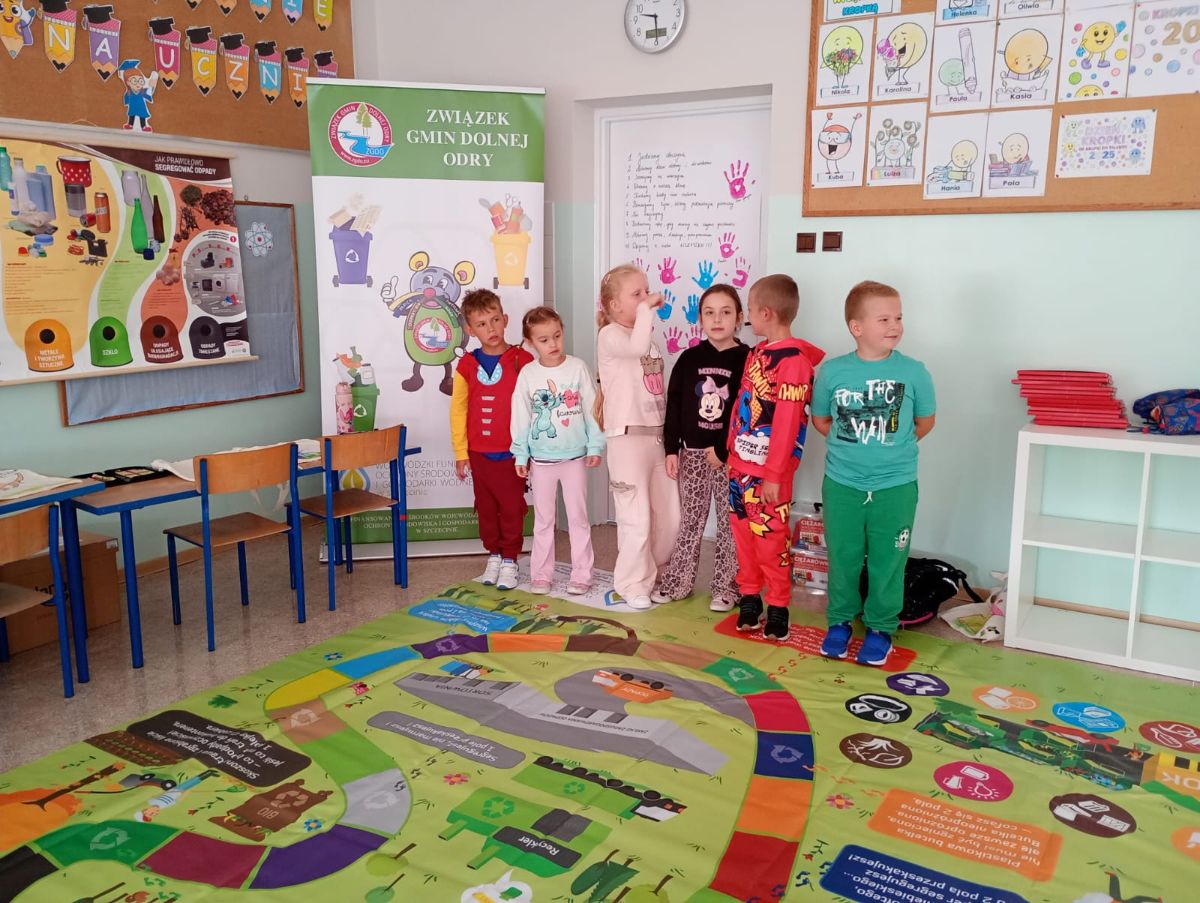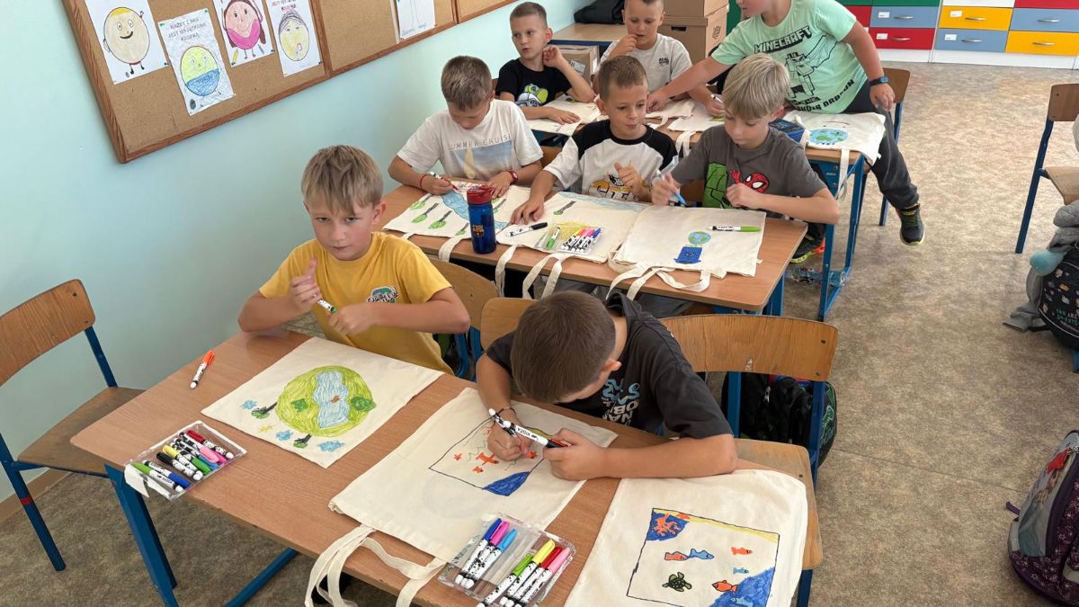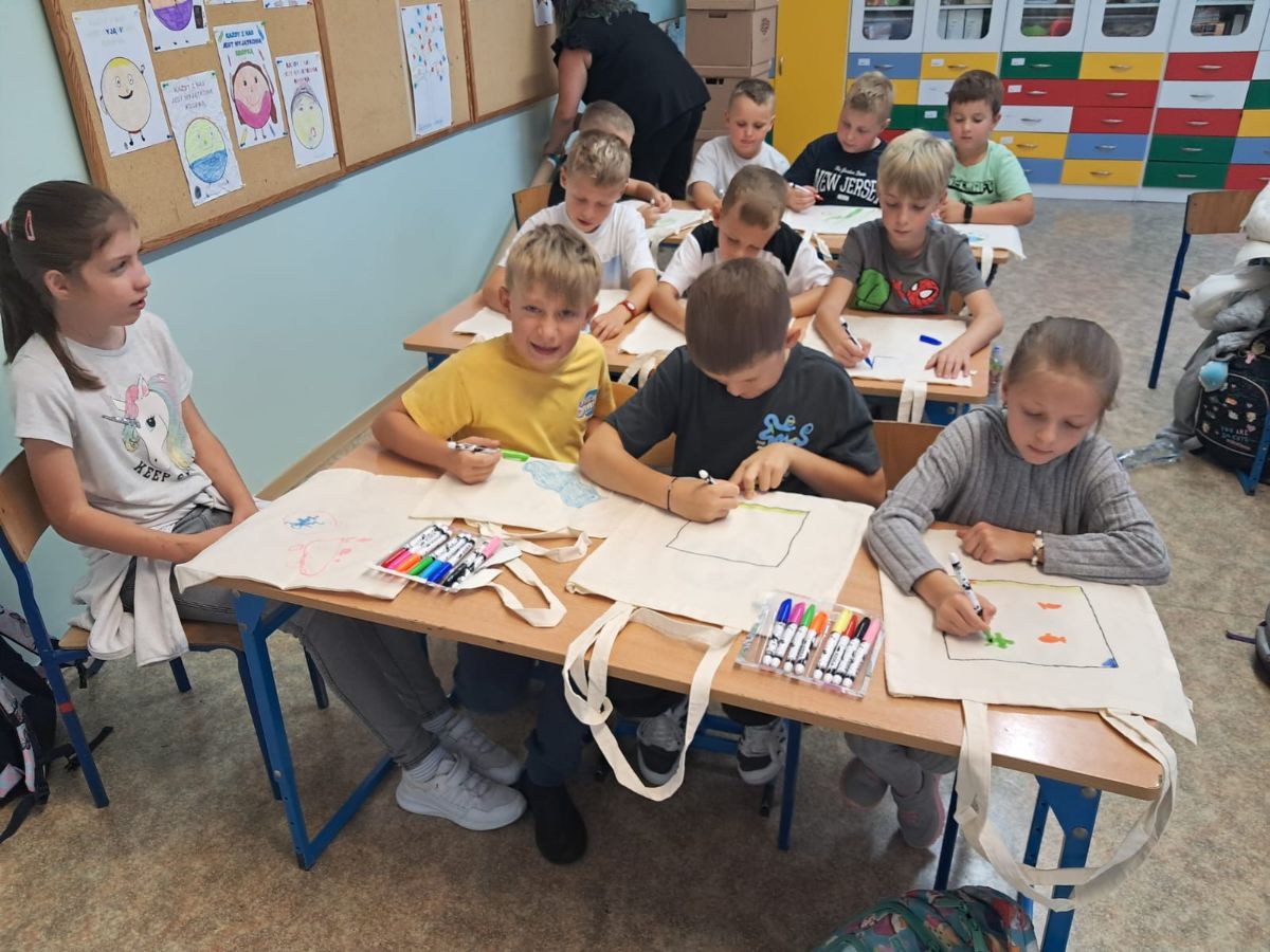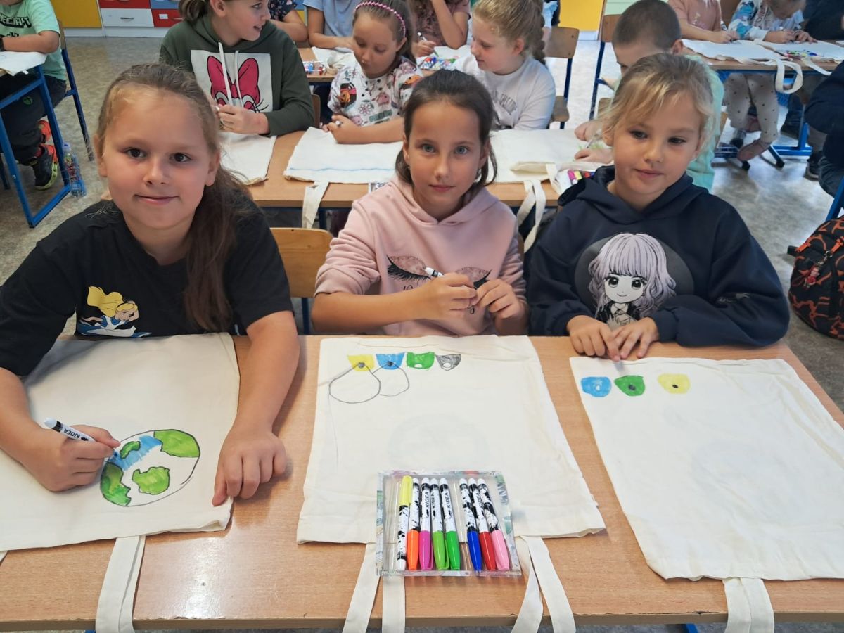 Dzieci miały okazję dowiedzieć się, jak prawidłowo segregować odpady i dbać o naszą planetę. Uczniowie otrzymali ekologiczne torby, które mogli pokolorować i zabrać do domu.