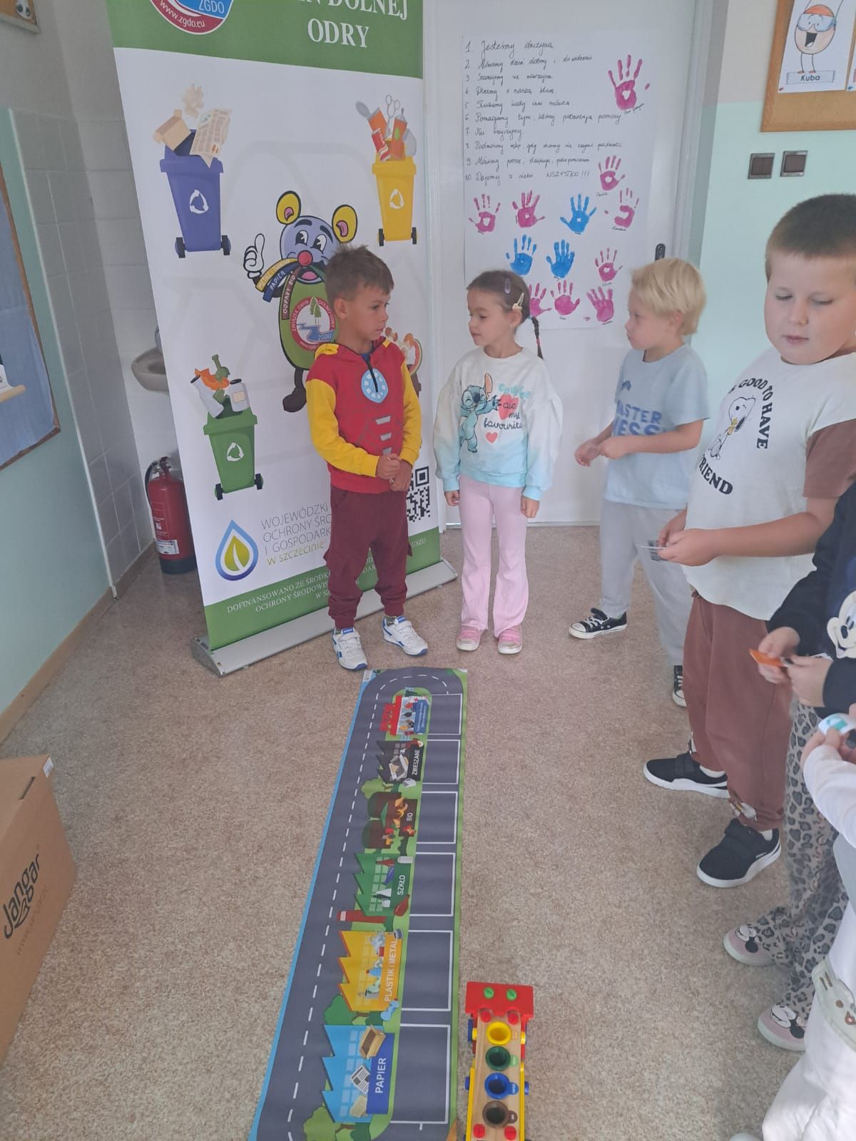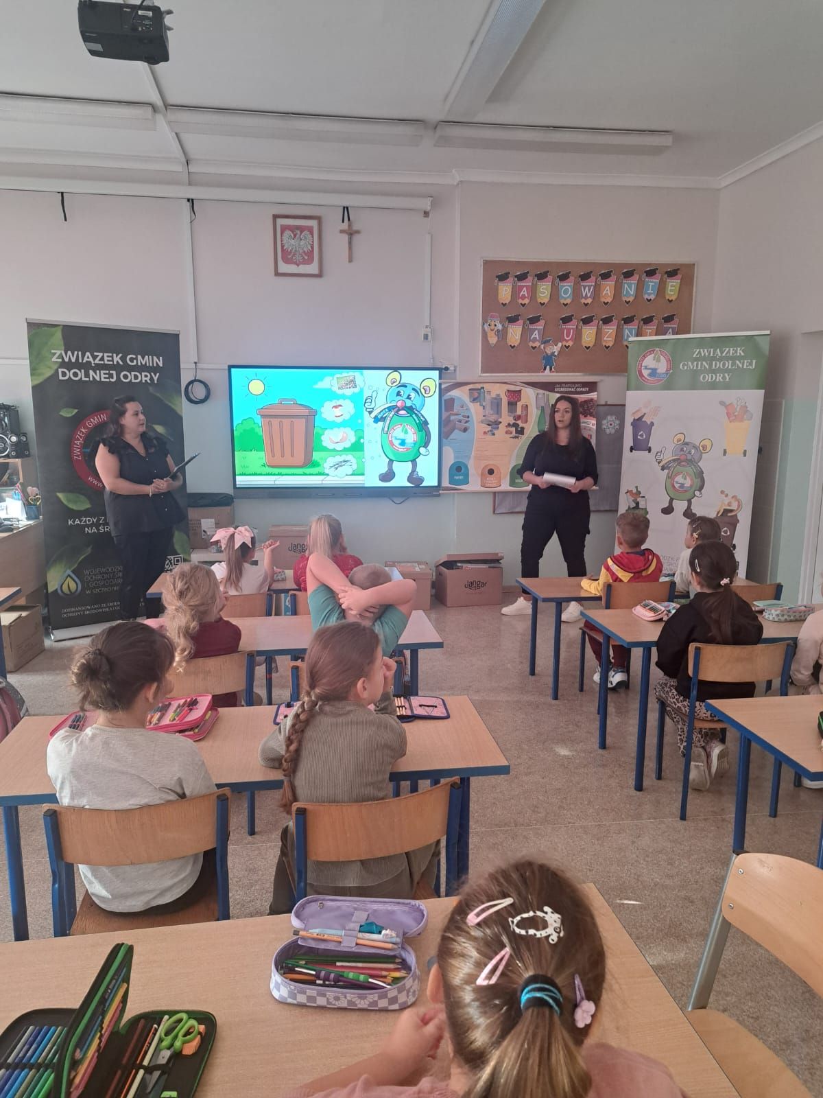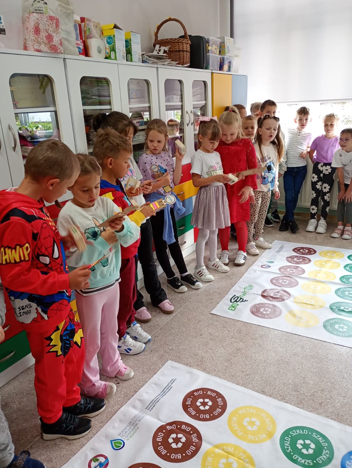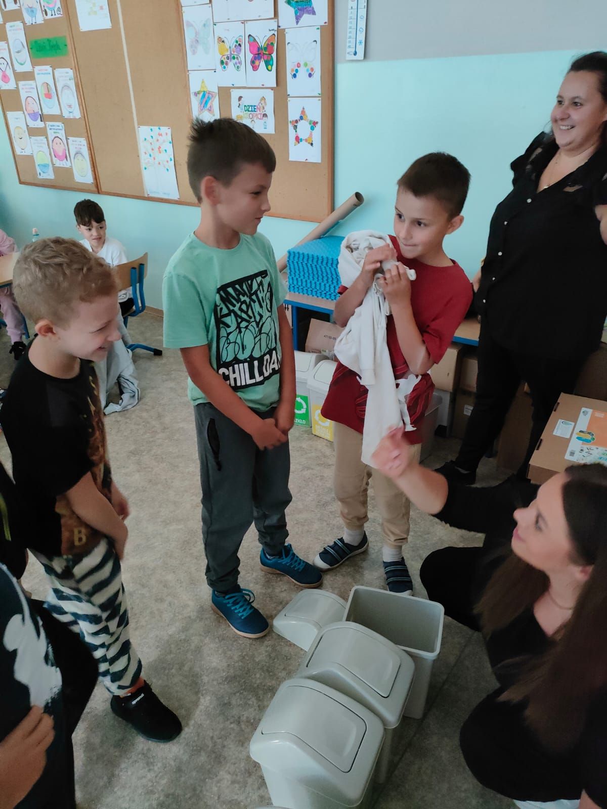 Dzieci miały okazję dowiedzieć się, jak prawidłowo segregować odpady i dbać o naszą planetę. Uczniowie otrzymali ekologiczne torby, które mogli pokolorować i zabrać do domu.