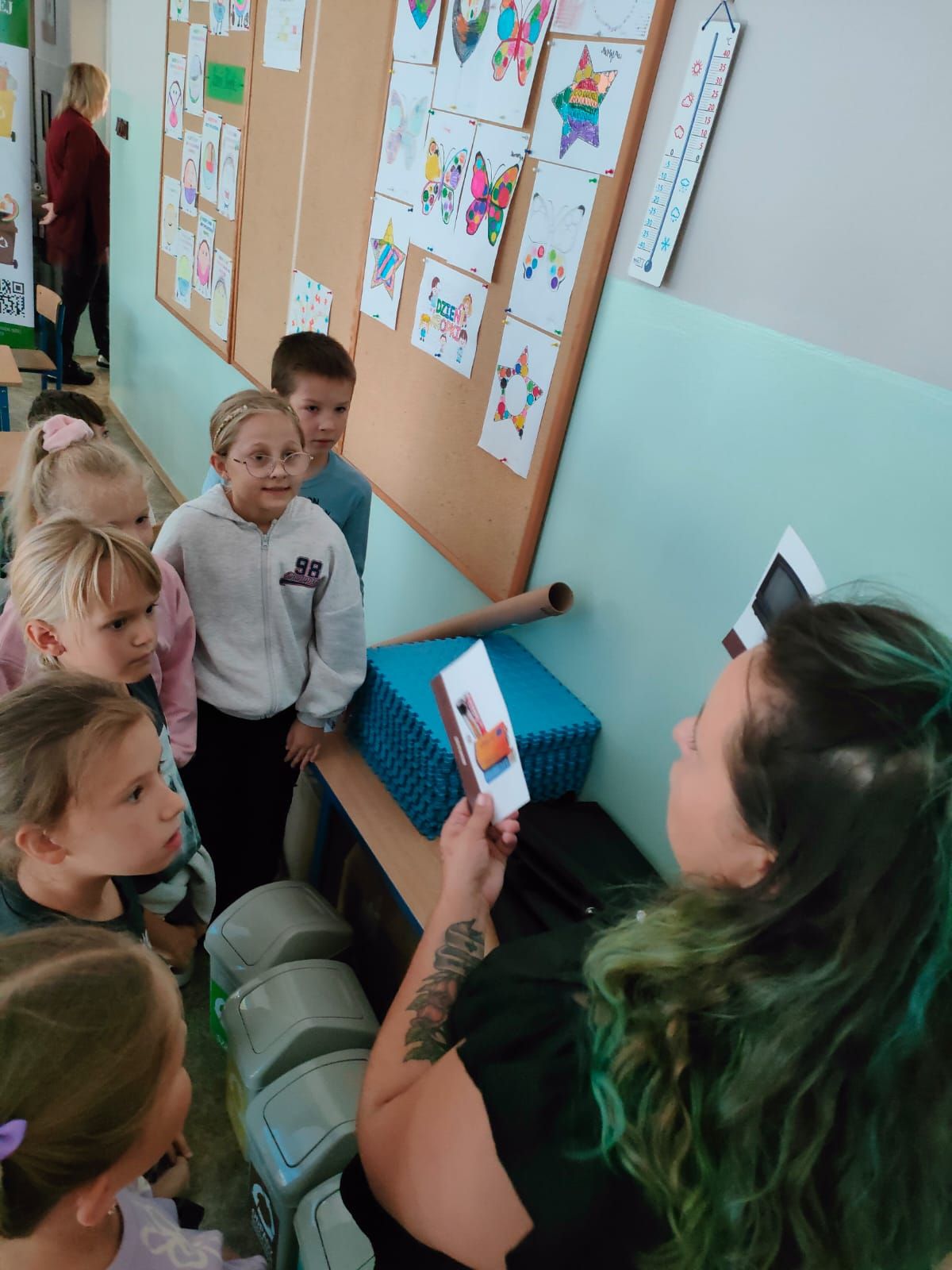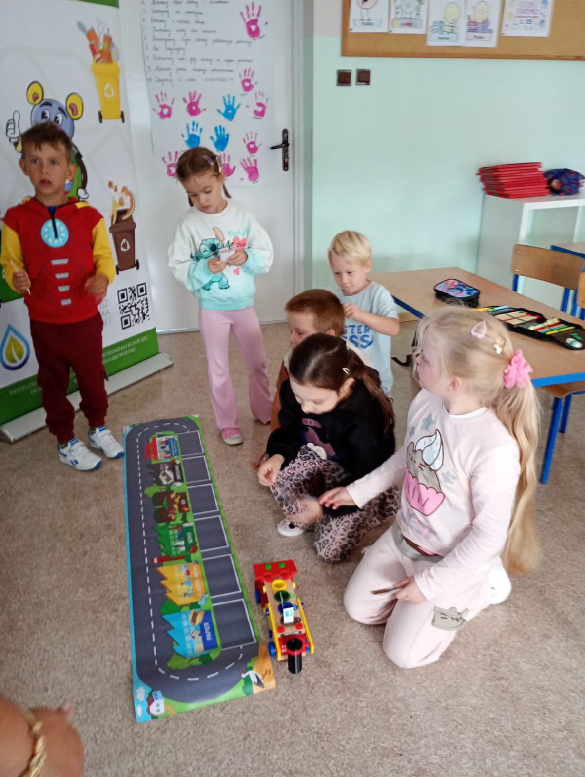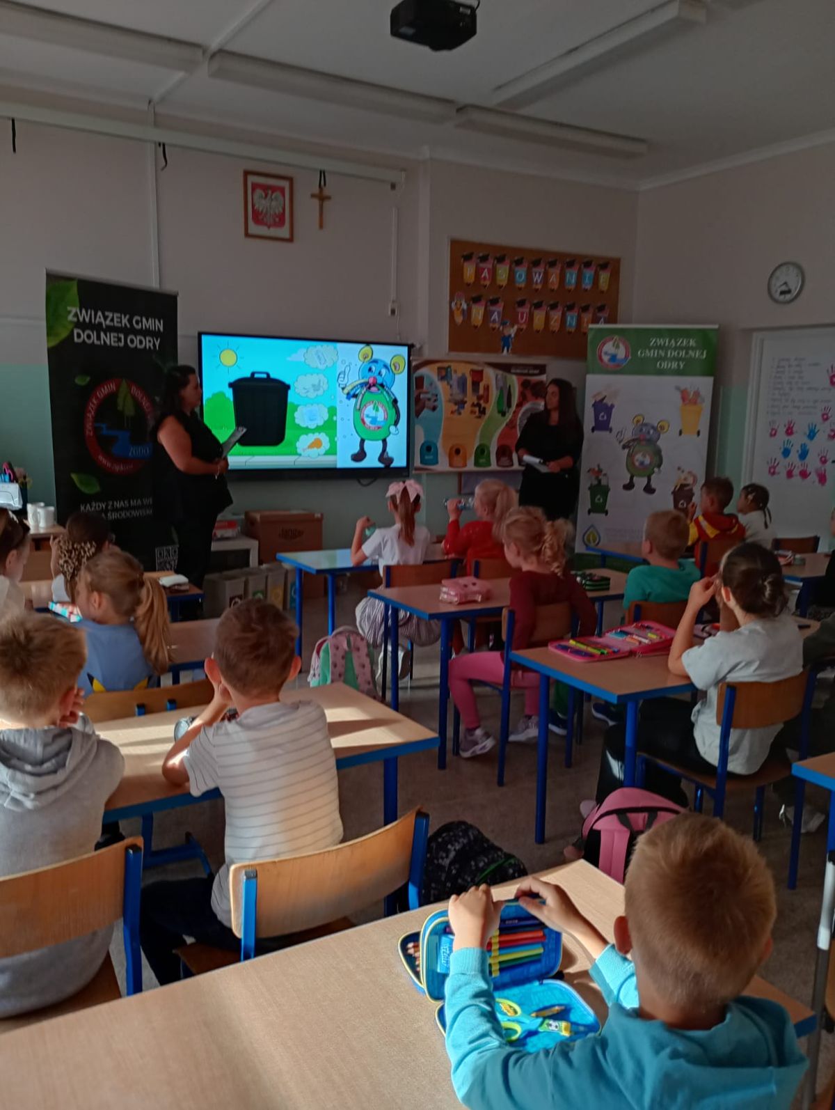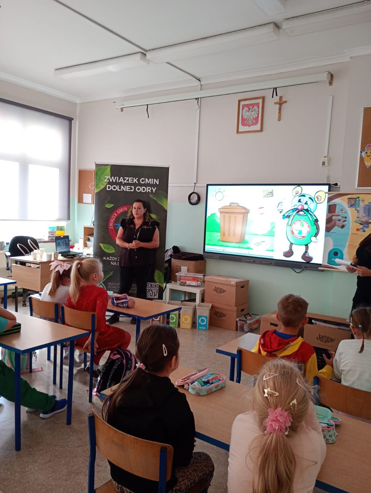 Dzieci miały okazję dowiedzieć się, jak prawidłowo segregować odpady i dbać o naszą planetę. Uczniowie otrzymali ekologiczne torby, które mogli pokolorować i zabrać do domu.