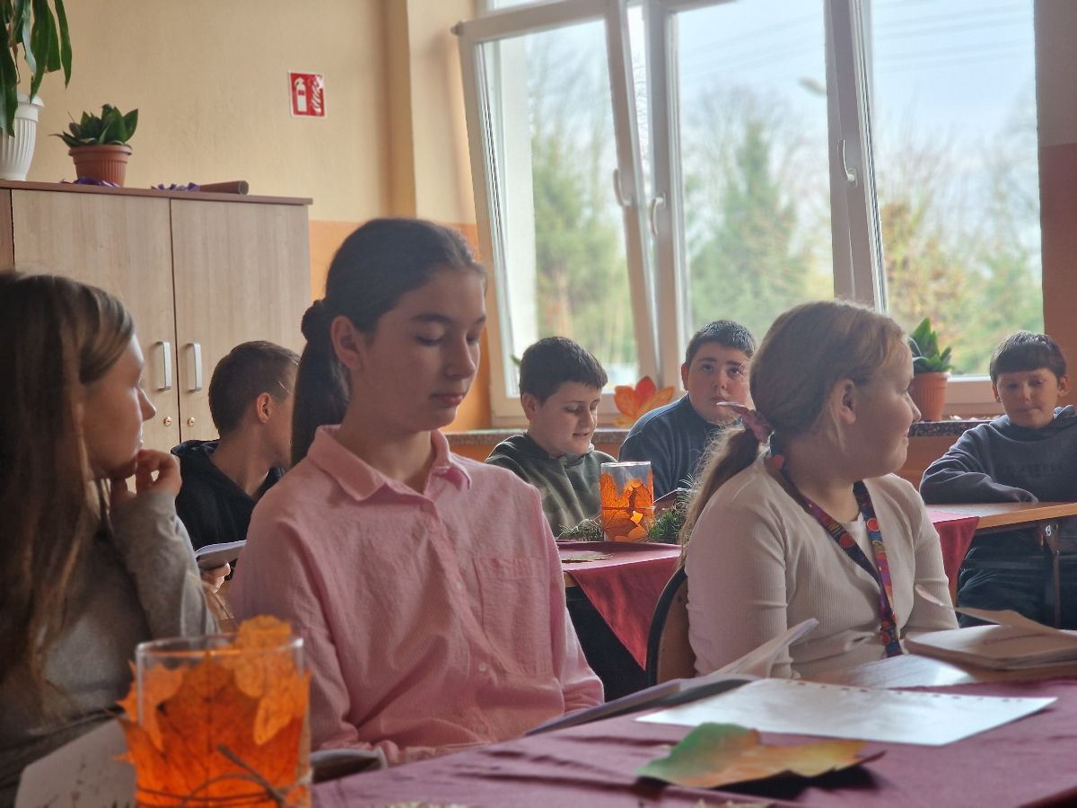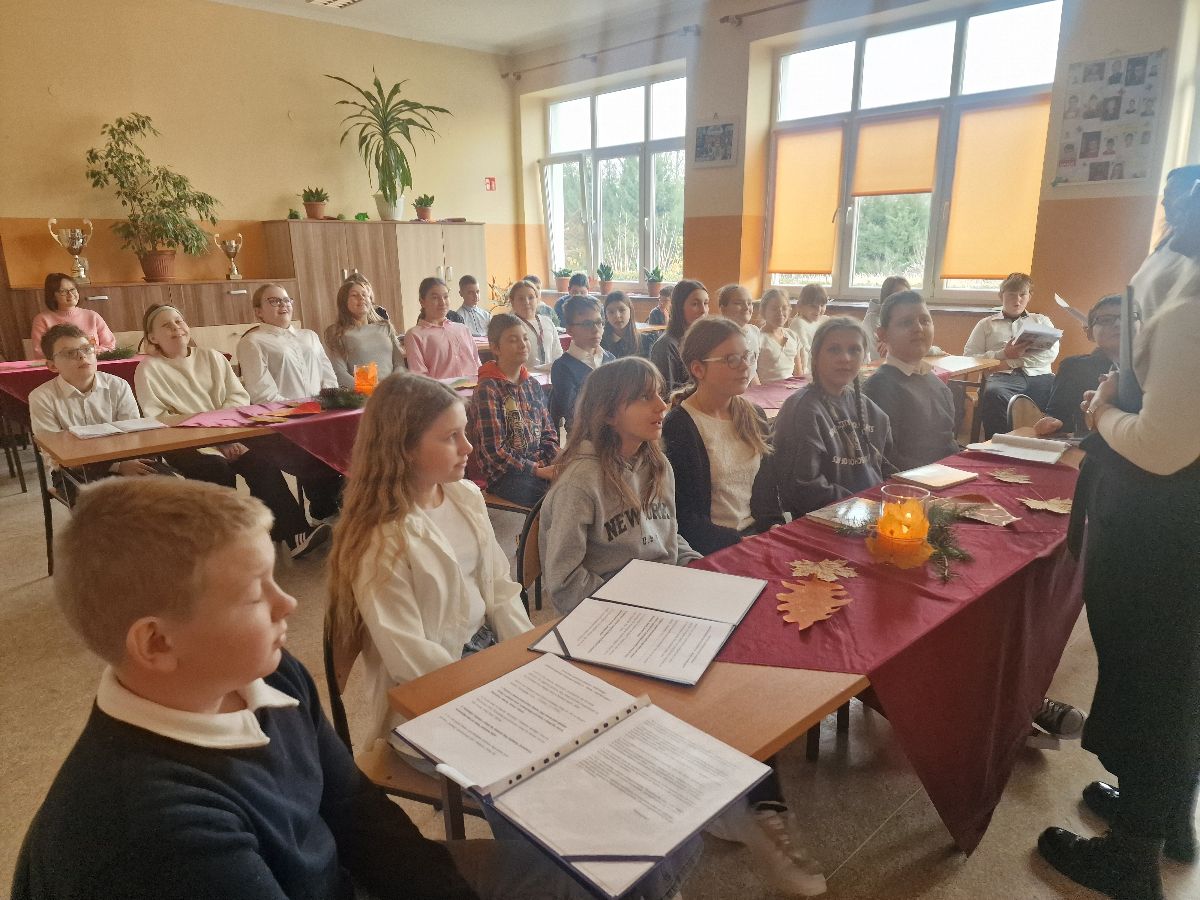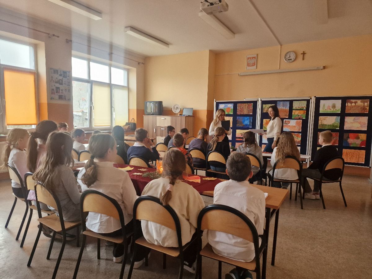 W dniu 24 listopada w naszej szkole odbył się nastrojowy wieczorek literacko-malarski, którego motywem przewodnim była jesień – pełna melancholii i barw. Uczniowie klas 5b i 6b zaprezentowali wybrane utwory poetyckie, które stworzyły atmosferę skupienia i refleksji. Recytacje pozwoliły publiczności i zaproszonym gościom w pełni wsłuchać się w rytm jesiennego słowa.