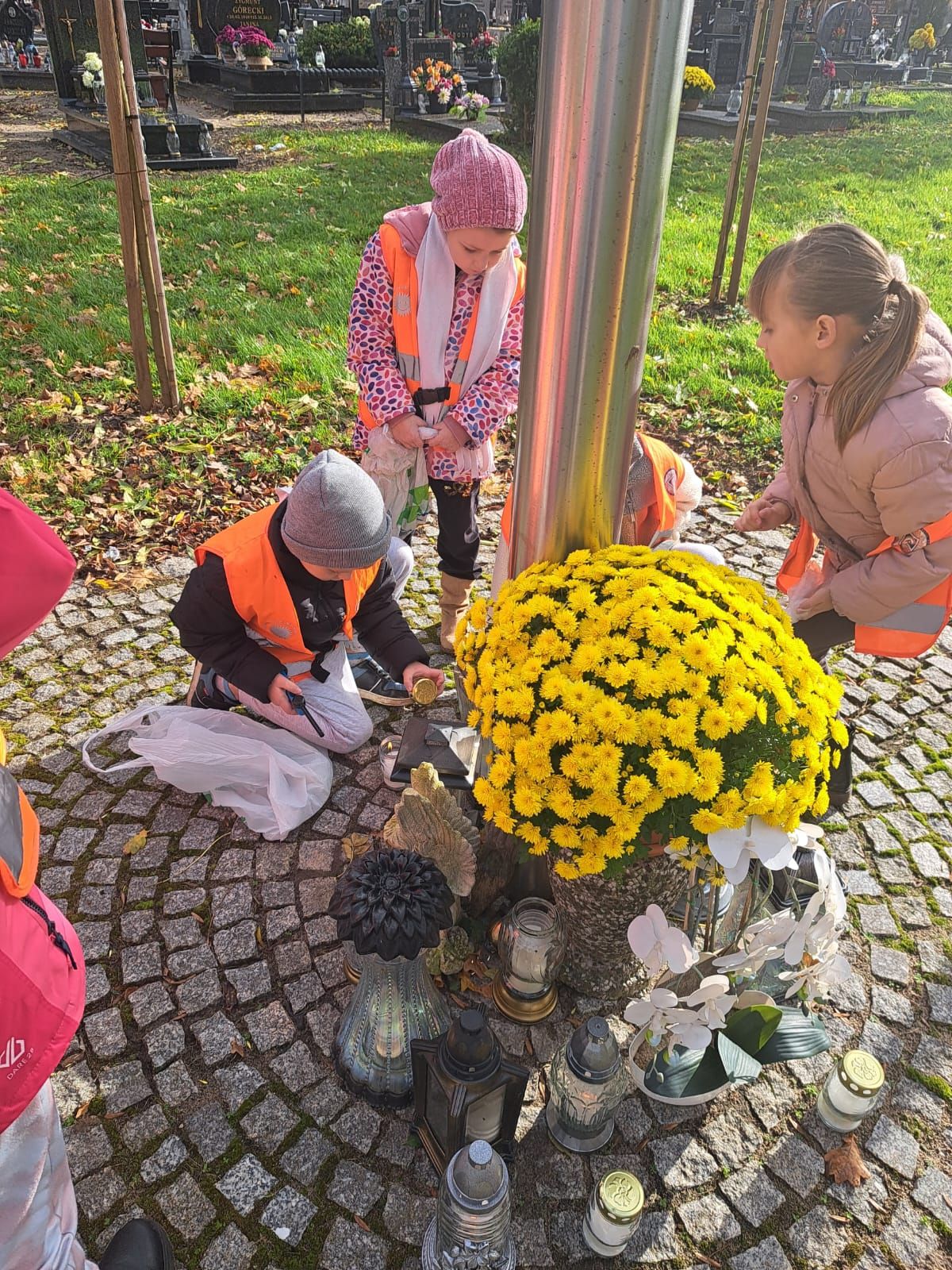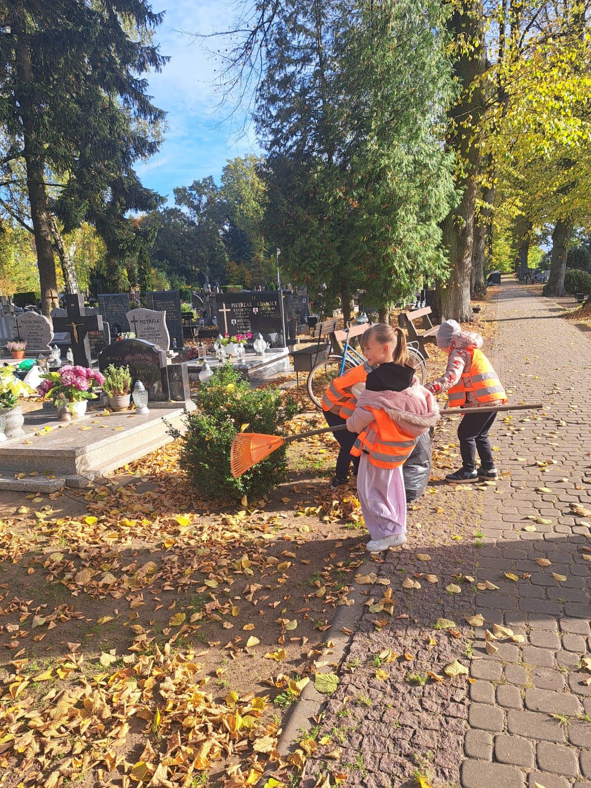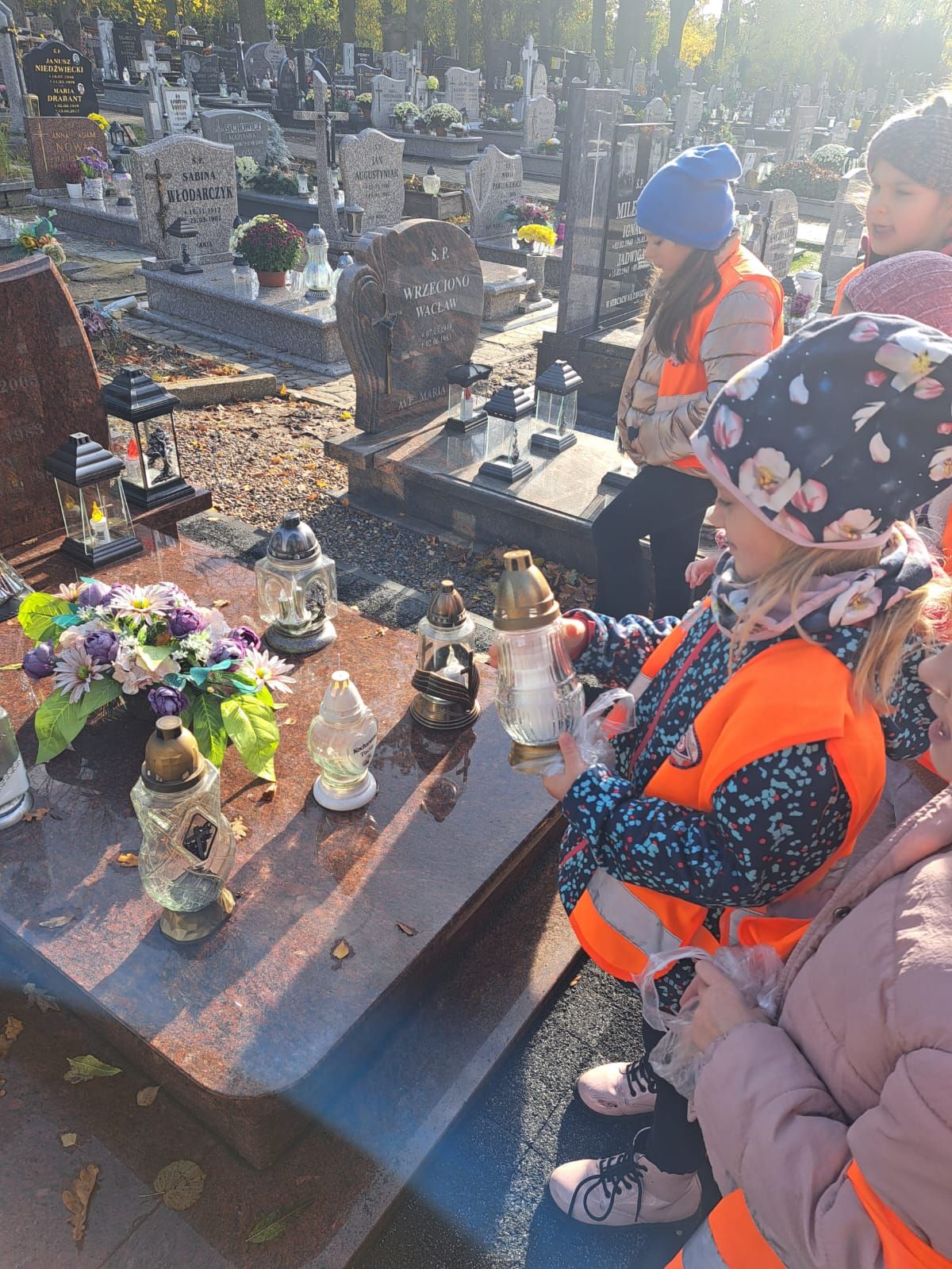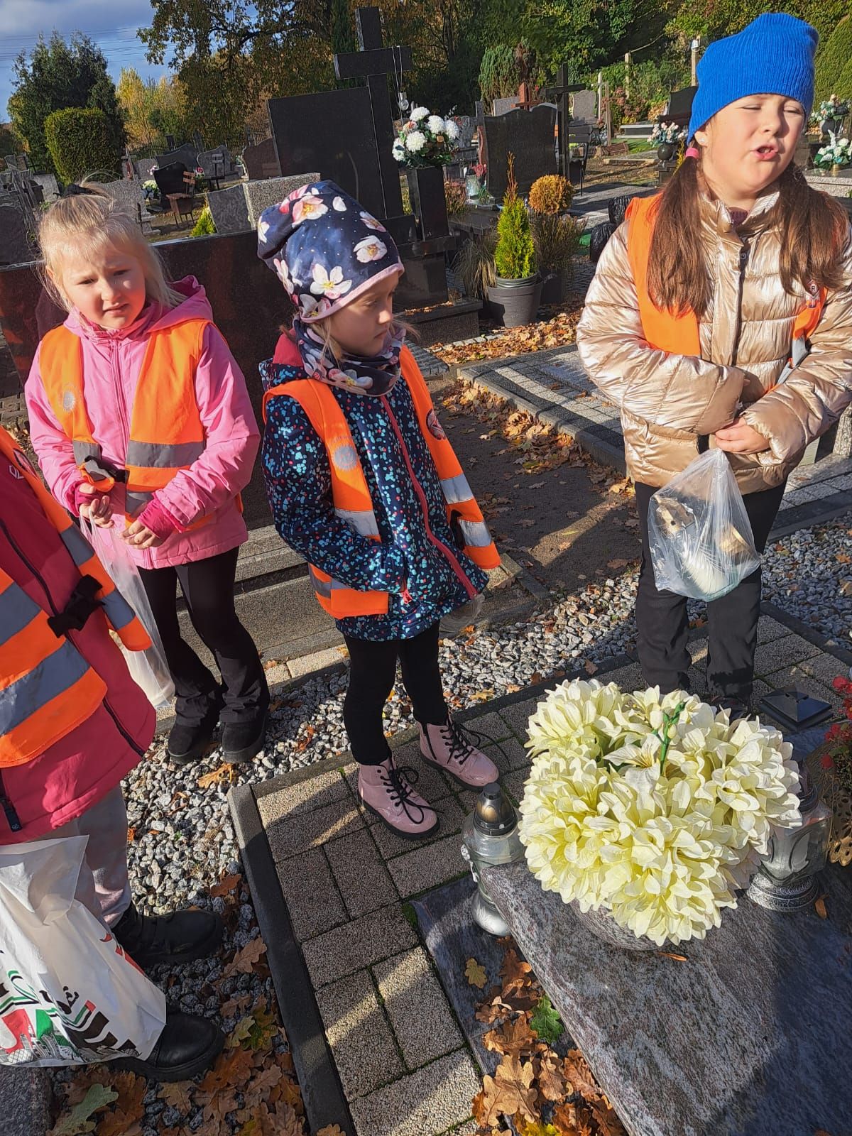 Z okazji zbliżających się Świąt Wszystkich Świętych najmłodsi uczniowie naszej szkoły wybrali się na cmentarz w Baniach. Posprzątali wokół grobów, a kolejnego dnia zapalili znicze na grobach najbliższych oraz tych, na których nie paliło się światło. Była to lekcja tradycji, a także czas na chwilę refleksji.