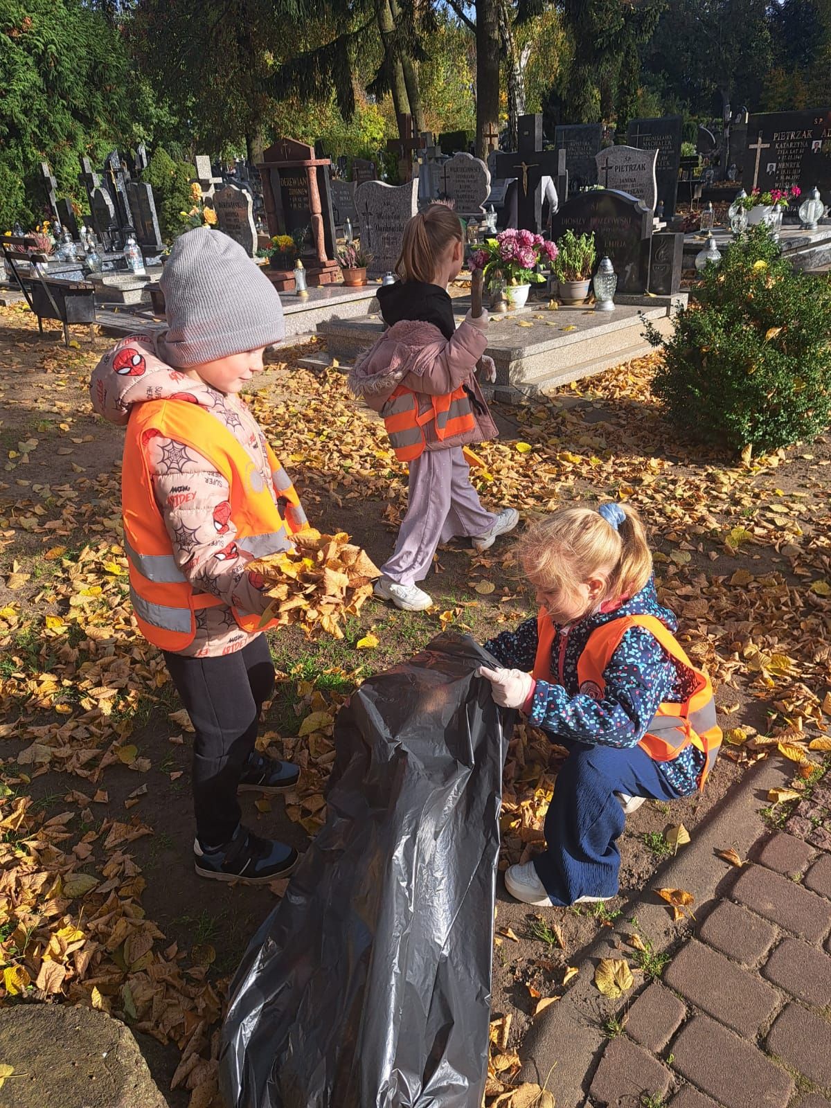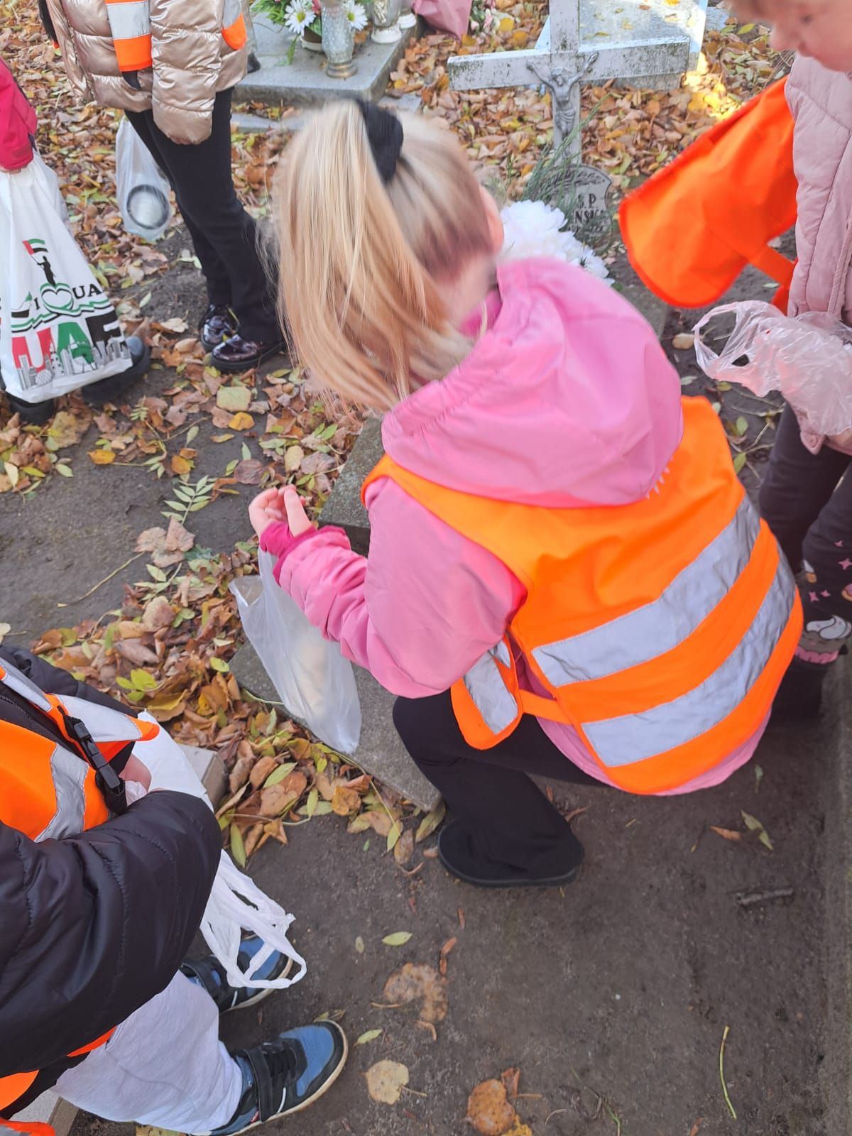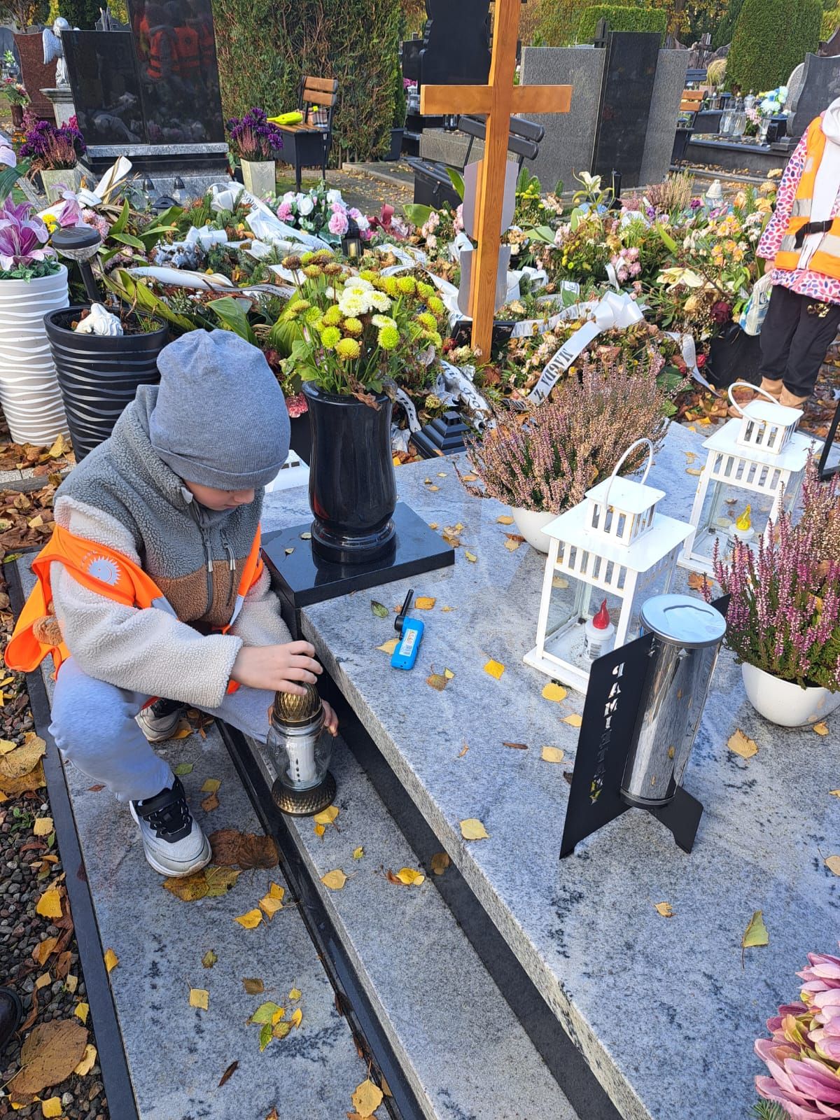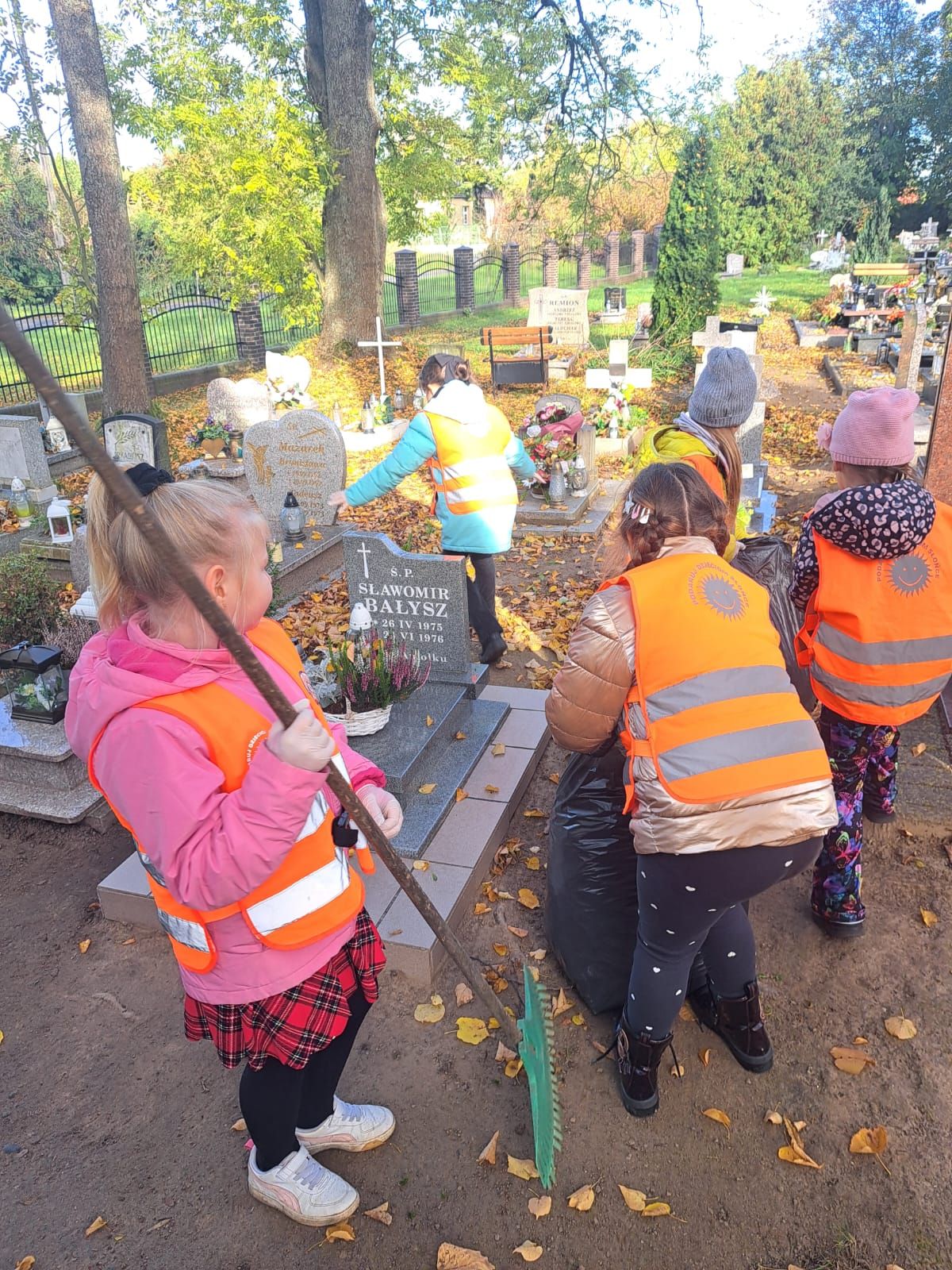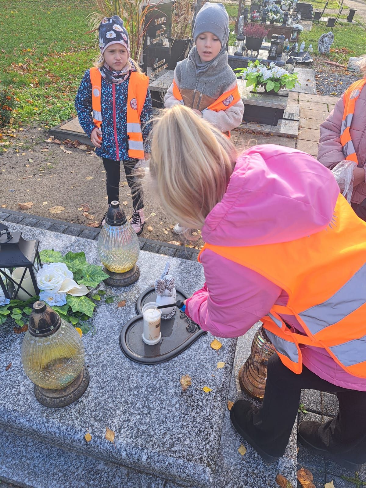 Z okazji zbliżających się Świąt Wszystkich Świętych najmłodsi uczniowie naszej szkoły wybrali się na cmentarz w Baniach. Posprzątali wokół grobów, a kolejnego dnia zapalili znicze na grobach najbliższych oraz tych, na których nie paliło się światło. Była to lekcja tradycji, a także czas na chwilę refleksji.