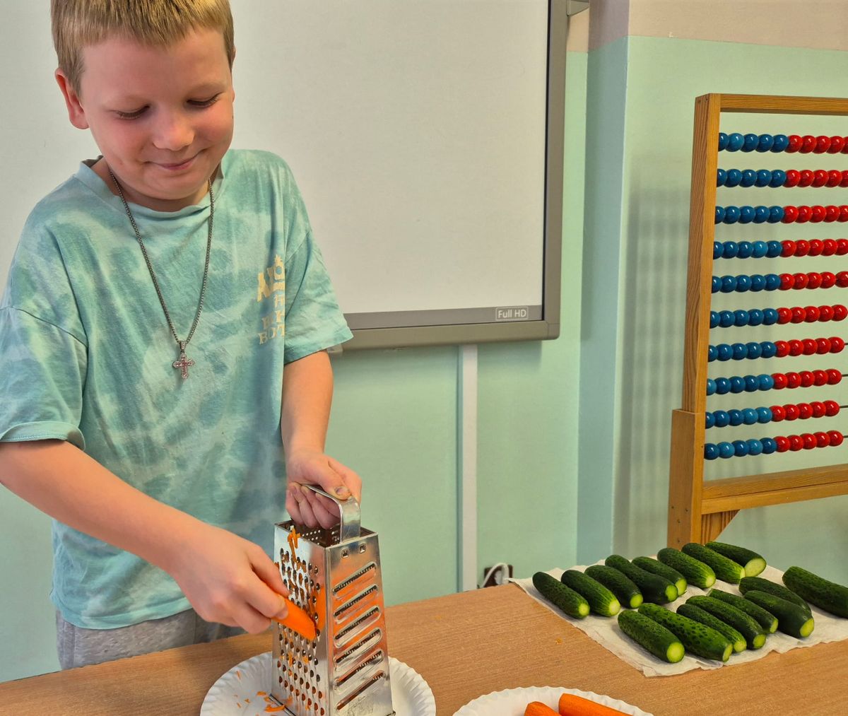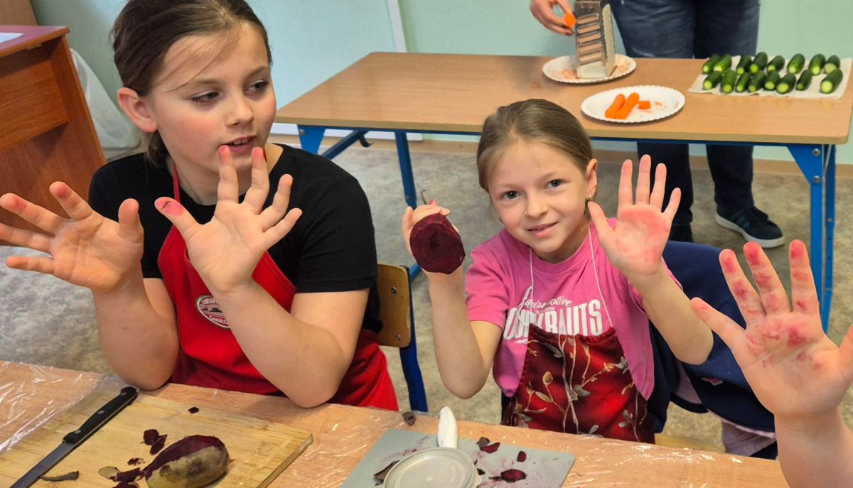 Dzieci bardzo sprawnie poradziły sobie z siekaniem, ugniataniem, zalewaniem i dodawaniem przypraw.