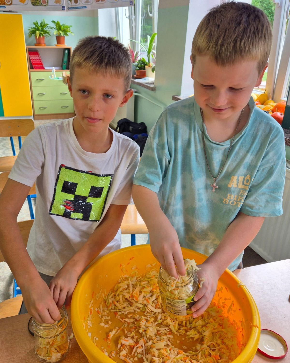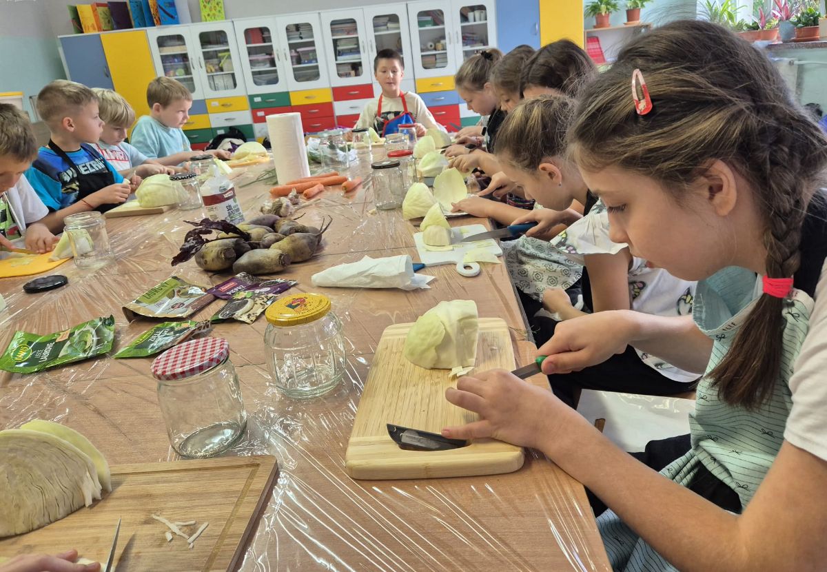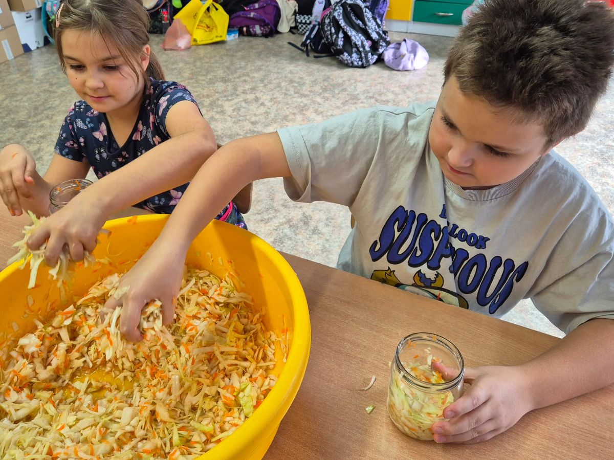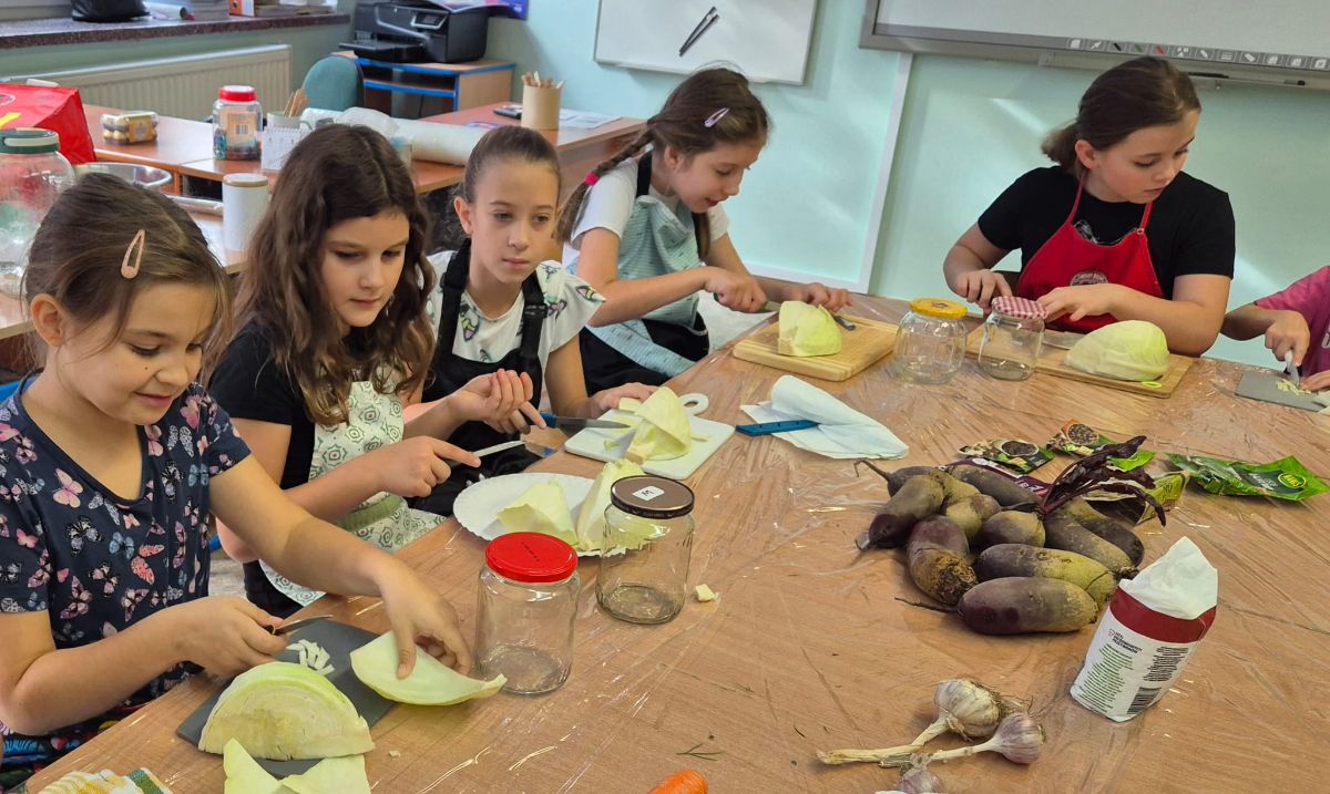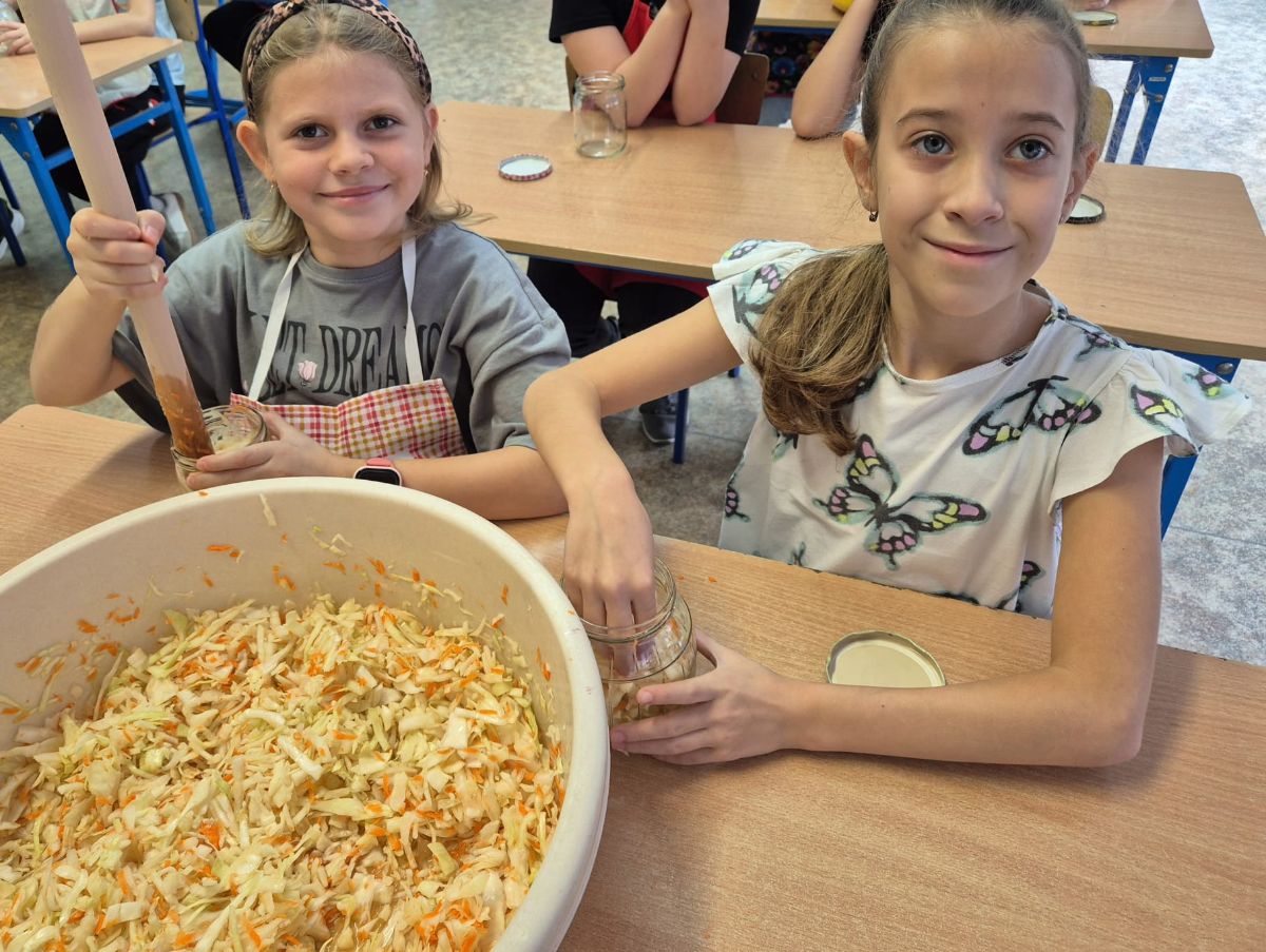 Uczniowie z klasy 3a postanowili sprawdzić, jak smakuje jesień zamknięta w słoiku. W ramach zajęć z edukacji przyrodniczej i technicznej własnoręcznie przygotowali kiszoną kapustę, ogórki oraz zakwas z buraka.